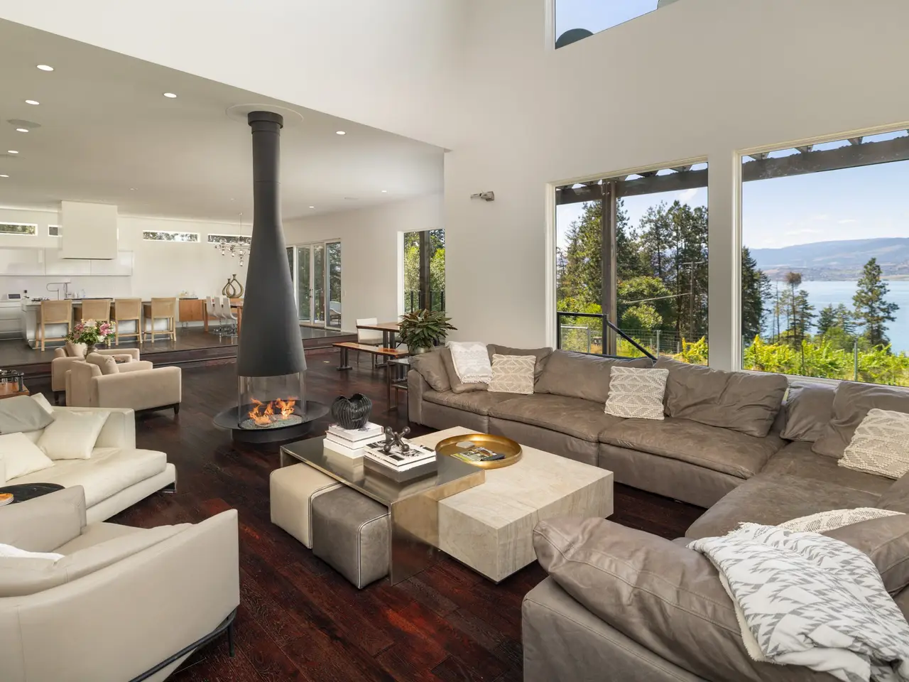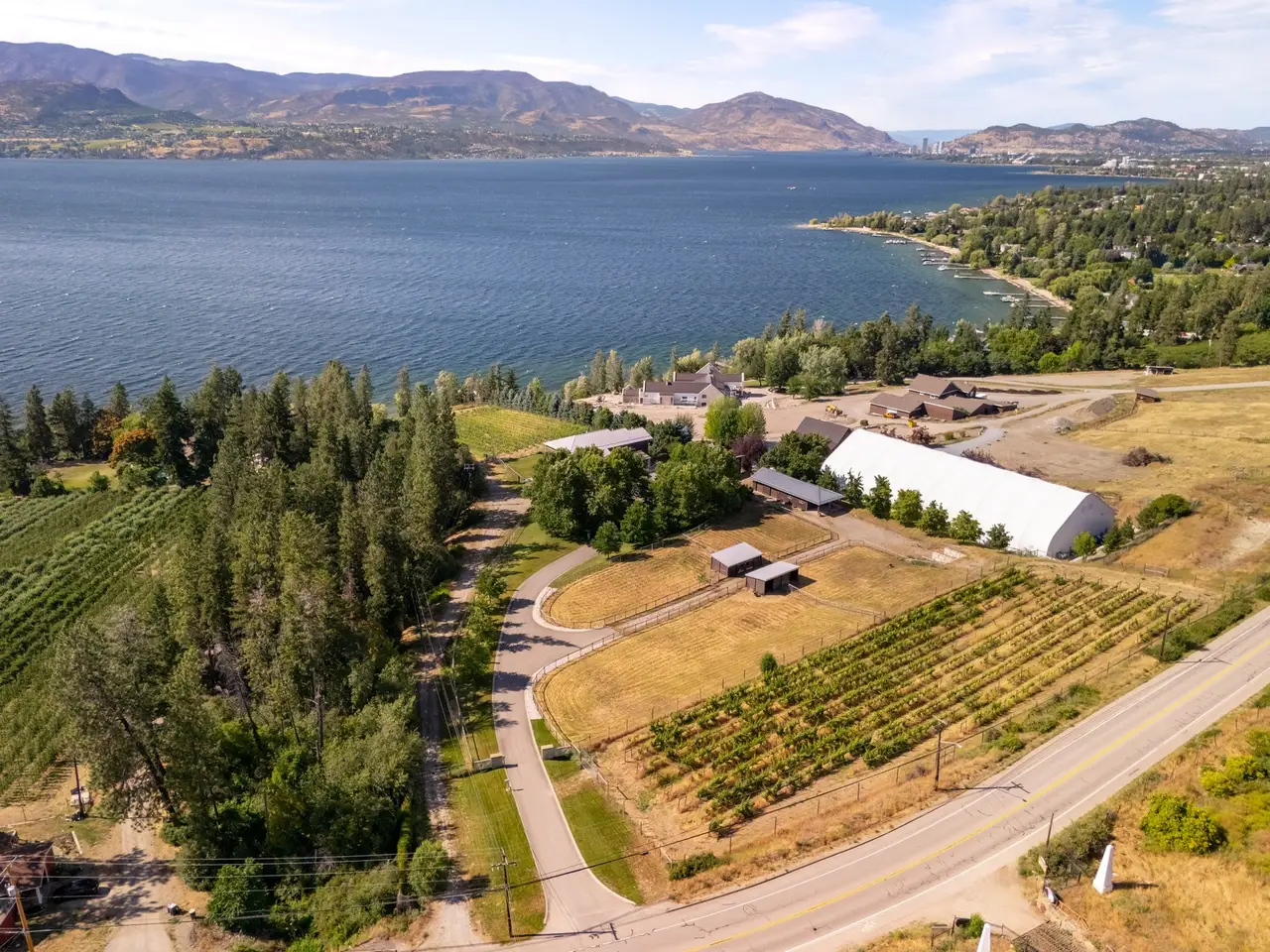Listed by Unison Jane Hoffman Realty | Unbelievable lakeshore acreage opportunity! This 7.5 acre estate offering 153 feet of water frontage is a horse enthusiast’s dream, or can be easily converted to additional vines for an unrivaled “legacy” property. A winding, treed driveway leads to the main residence offering 7,313 sq. ft. of living space over three levels, with a 2-car attached garage plus a 4-car detached garage with office space above. Quality construction and timeless finishes are evident throughout the 4-bedroom 5-bath family home where you’ll experience breathtaking lake views from nearly every room. Generous living area with fireplace feature an abundance of windows for natural light. Contemporary kitchen with oversized center island for entertaining. French doors lead to the primary bedroom “get-away” with spa-inspired ensuite. Each additional upstairs bedroom features its own ensuite and separate living area below. Impressive detached building with brand new horse stalls, hay storage, tack room, and workshop plus two more outdoor horse shelters surrounded by fenced pastures with hot/cold water for filling troughs. At the water’s edge, enjoy the serenity of Okanagan Lake with private beach, dock, and boat lift- easily accessed by foot or private laneway. Gated entry and fenced perimeter for security and privacy. This is the ultimate family compound, conveniently located in the Mission- within minutes to quality shops, fine dining, schools, and the international airport.