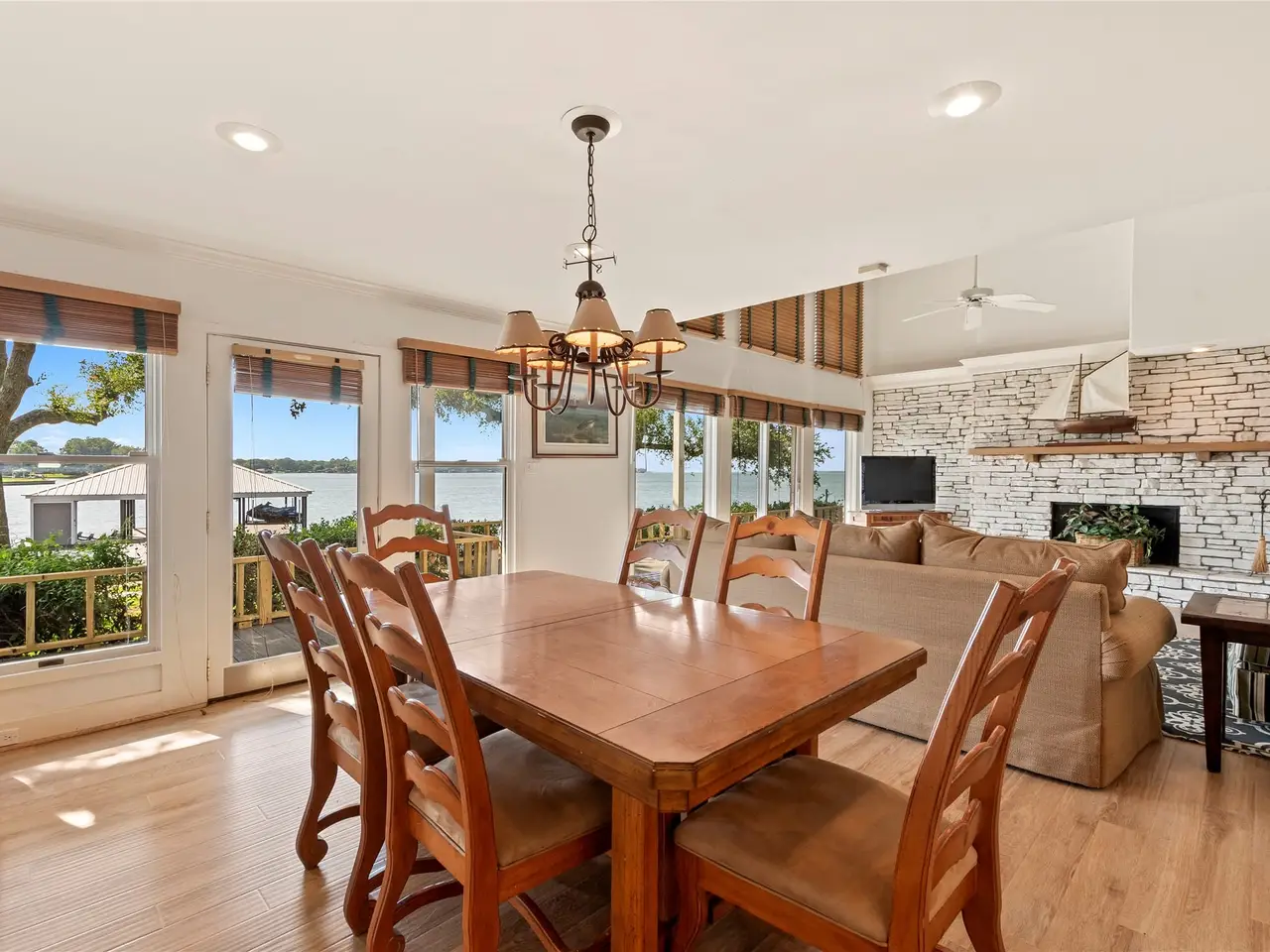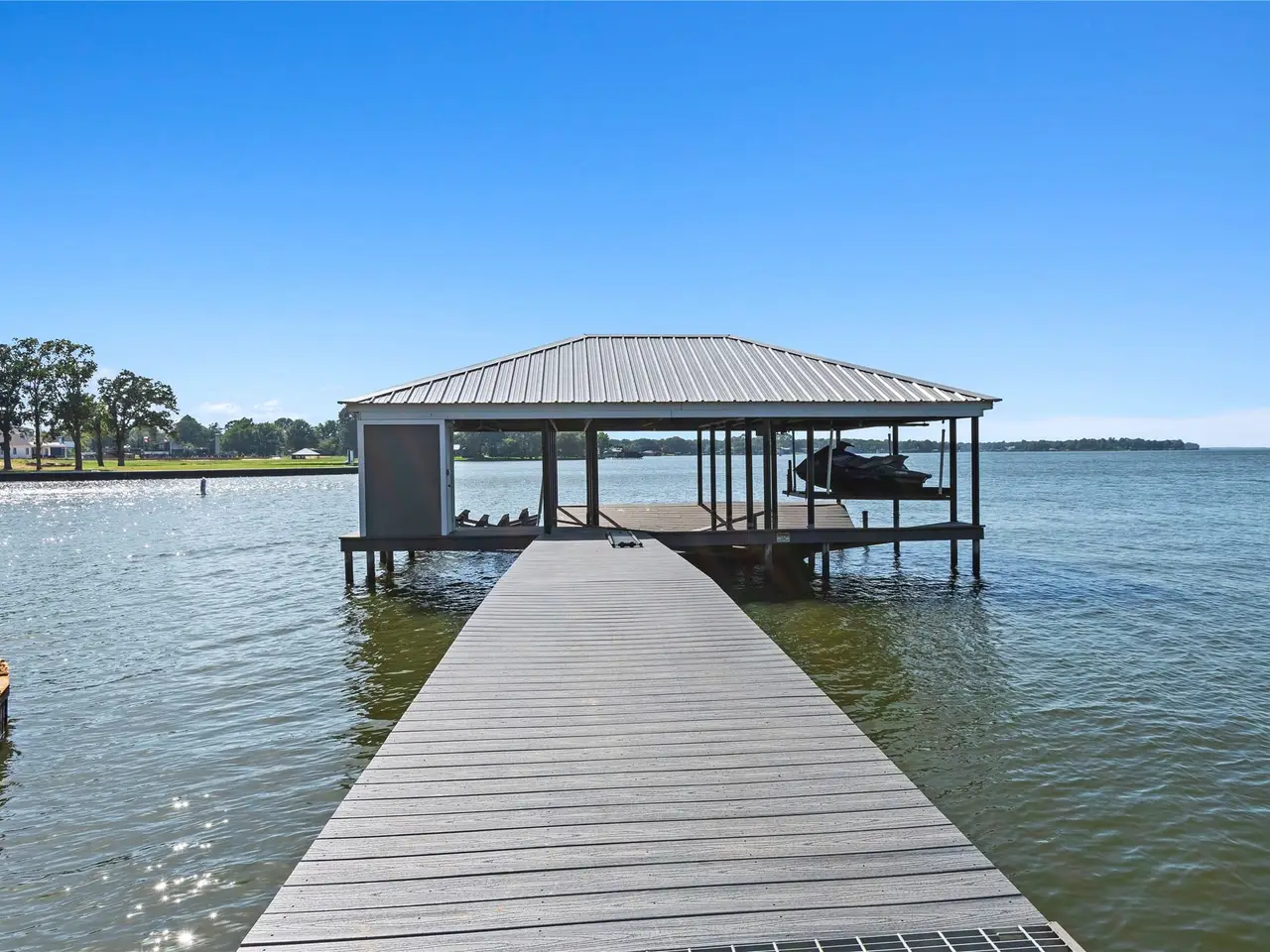 Incredible opportunity to own approximately 0.427 acres across two combined open water lots with over 223 feet of open water frontage in Tool TX on Cedar Creek Lakean area seeing exciting growth with new restaurants and development. The 4-bedroom, 2.5-bath home offers over 2,100 square feet, with an open-concept kitchen, dining, and living area featuring tall ceilings, a wood-burning fireplace, and a wall of windows that frame beautiful lake views. The primary suite is located downstairs with water views and a spacious ensuite bath. Upstairs, two bedrooms share a Jack and Jill bath with separate vanity and wet areas, and one of the bedrooms offers balcony access and lake views. A bonus upstairs living area includes a built-in bookshelf that opens to reveal a hidden room over the garageideal for an additional bedroom, playroom, office, or extra storage. Living the lake life style means enjoying the outdoors and the fabulous 720 sq ft covered pavilion with outdoor kitchen will soon become your favorite place to entertain and just relax and enjoy the expansive water views. The large yard next to the pavilion is perfect for yard games and gives elbow room between neighbors. Nice neighborhood restricted to site built homes and located close to The Groves-- a new development with luxury multi-million dollar homes. Located in a quiet cul-de-sac with a two-car garage and wide driveway for ample parking, this property offers incredible potential to remodel, expand, or build new in one of Cedar Creek Lakes most sought-after locations.