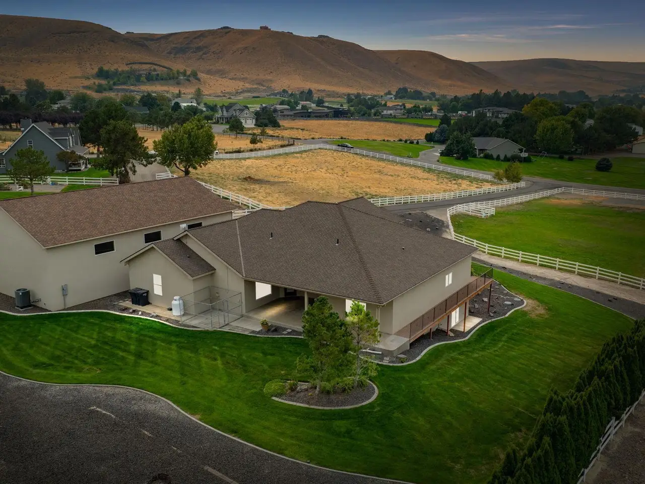 Experience the perfect blend of comfort, style, & functionality in this spacious 5-bed, 5-bath home, with a Daylight / Walkout Basement nestled on a picturesque, fully fenced 2-acre property overlooking Badger Canyon with NO HOA that allows for all your Animals. Hardwood floors just resurfaced flow throughout the main living areas, creating a warm & welcoming atmosphere with newer interior paint. The great room features a cozy gas fireplace, while the formal living area & large lower-level rec/family room (plumbed for wet bar) provide ample space for relaxation & entertaining. The gourmet kitchen is a chef’s dream, boasting a generous breakfast bar, granite countertops, stainless steel appliances, a gas cooktop, double ovens, abundant wood cabinetry, a pantry, & formal dining area perfect for hosting gatherings. Five spacious bedrooms & three full bathrooms, plus two half baths, offer plenty of room for family and guests. One of the bedrooms has its own ensuite, & two of the bedrooms share a Jack and Jill style bathroom. The luxurious master suite includes patio access, a large walk-in closet, private bath with a dual-sink vanity, jetted tub, & walk-in tiled shower. Outdoor living is a delight with a spacious deck showcasing the panoramic views & a private covered patio area ideal for enjoying the beautiful summer weather. Car enthusiasts & hobbyists will appreciate the attached 3-car garage & the impressive 40x60 fully finished, insulated shop, that is heated & cooled, with 2 12’x14’ doors with openers, providing ample space for projects, storage, & all your toys. This home is loaded with upgrades for comfort & efficiency, including: Broadband WiFi – ADT security System - GEOTHERMAL heating system for optimal utility efficiency - VERSATEC Water Furnace - HONEYWELL F300 Electronic Air Cleaner & APRILAIRE Series 800 steam humidifier ENERGYSMART electric water heater (reducing off-cycle energy costs by up to 30%) - KINETICO Premier Series XP water softener - VIQUA D4 ultraviolet POE water treatment system for superior water quality protecting from harmful microorganisms, plus reverse osmosis tap and mineral magnet - HYDROWISE automatic garden & lawn sprinkler system. Located in a quiet neighborhood with a peaceful country feel, this exceptional property offers easy access to Tri-Cities amenities, schools, and convenient highway access. Discover the perfect retreat that combines luxury, efficiency, and breathtaking scenery.