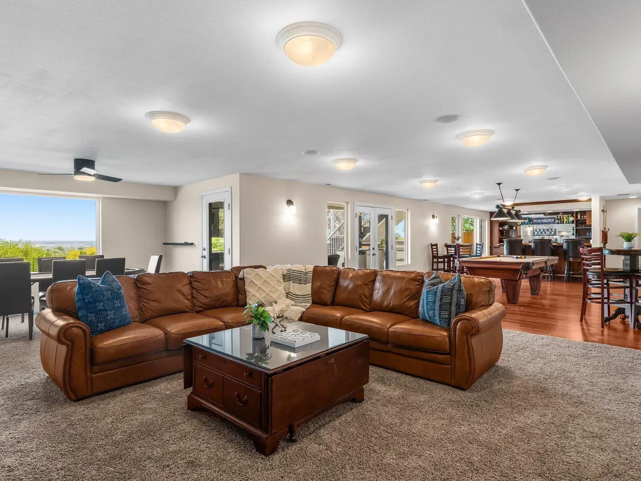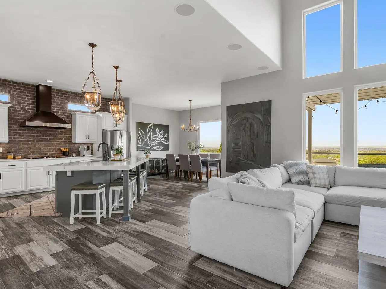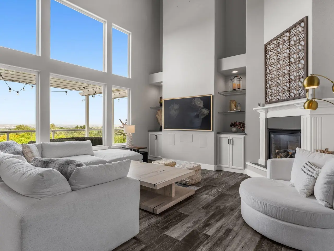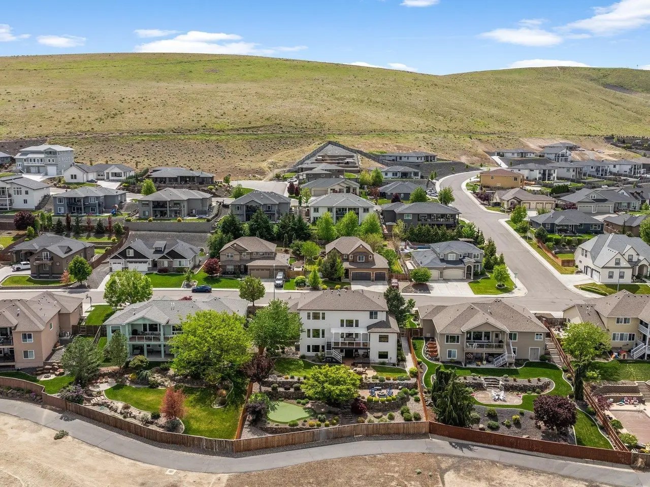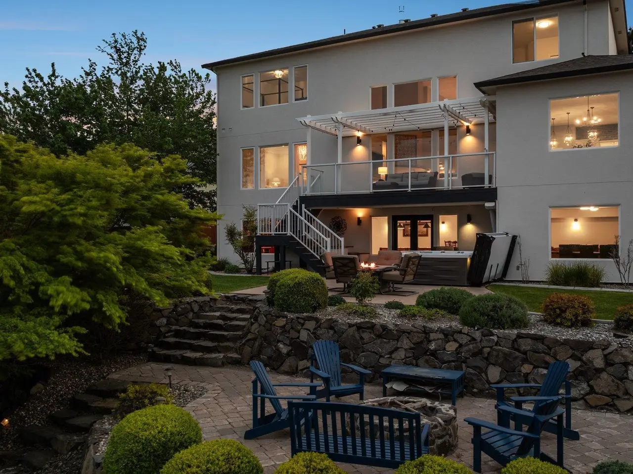 MLS# 283810 Welcome to your dream home in the highly sought-after inspiration Estates, offering over 5,000 sq ft of luxurious living space on a beautifully landscaped 1/3-acre lot. This stunning property boasts panoramic views and breathtaking sunsets you can enjoy from multiple vantage points, including the expansive upper deck and walk-out basement patio. Step inside to soaring ceilings and an inviting entryway that opens to a spacious home office featuring custom built-in shelving. The main level's open-concept design seamlessly connects the expansive family room and updates kitchen and dining area. The kitchen features modern finishes, ample storage, and easy access to the deck for outdoor dining and relaxation. Retreat to the luxurious main-level primary suite, complete with spa-like bathroom, soaking tub, dual vanities, and a large walk-in closet. Upstairs, you'll find a junior suite with private bath, two additional generously sized bedrooms, a full bath and a large bonus room- Ideal as a media room, playroom, or even a fifth bedroom. Downstairs is an entertainer's paradise. The spacious rec room is perfect for pool, cards, and casual gatherings. Wine enthusiasts will love the custom climate-controlled wine cellar-Ideal for storing and showcasing a prized collection. A large storage area offers extra storage and a convenient place for that home gym. Step outside to your backyard oasis featuring a covered patio, hot tub, outdoor kitchen, fire pit area, and a personal putting green. This home offers luxury comfort, and room to live, work, and play-all in one of the area's most desirable neighborhoods.
