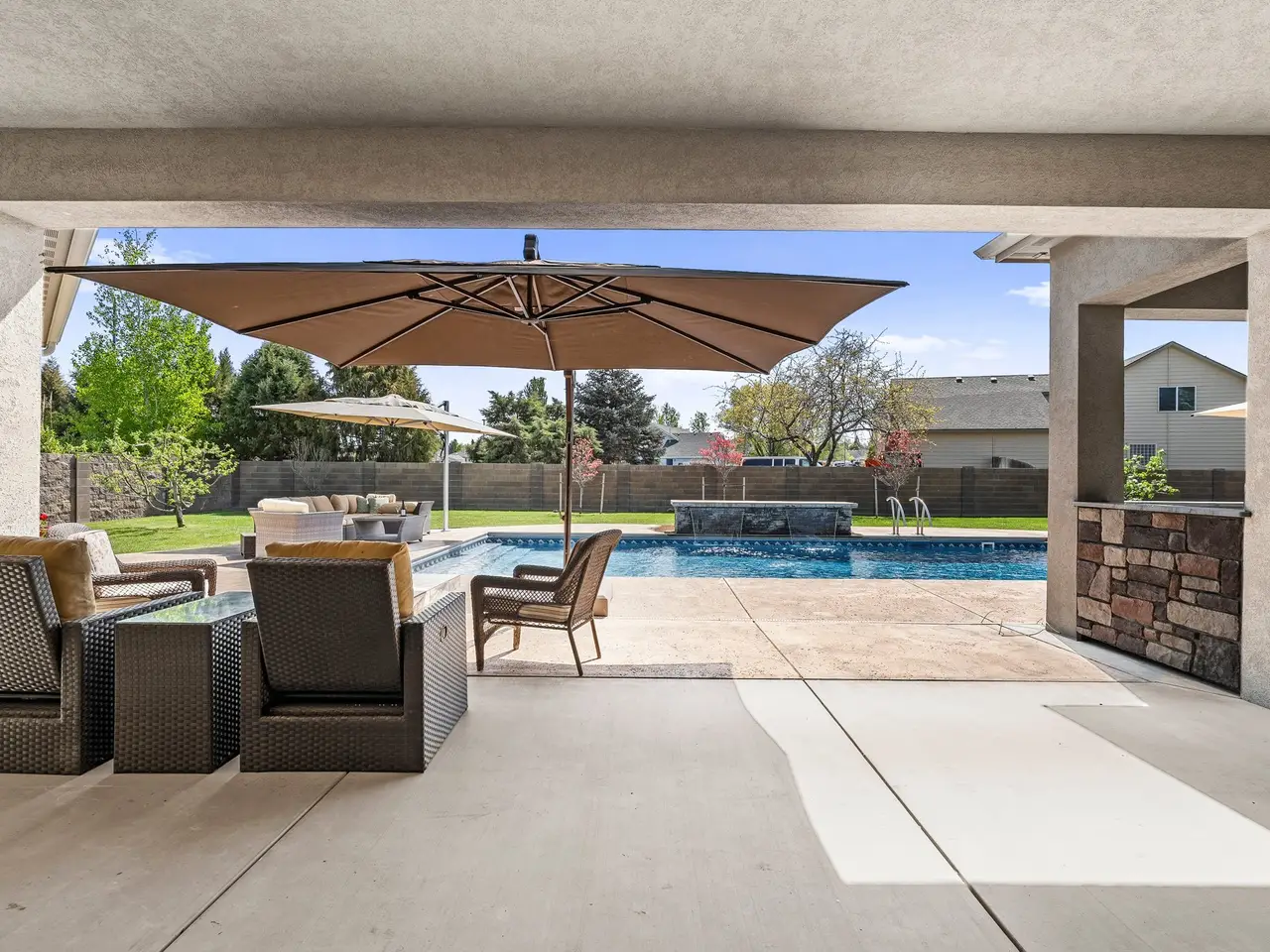 Welcome to 5001 W 20th Ave, Kennewick. This extraordinary custom home is an architectural masterpiece built by the renowned Don Pratt and featured in the 2014 Parade of Homes. Set against a backdrop of lush, professionally landscaped grounds, this home is the epitome of refined elegance and seamless indoor-outdoor living. Approaching, you’ll be wowed by the homes presence! Framed by mature trees, vibrant gardens, and a tranquil setting that feels like a private resort. Enter through the grand double wood doors into an interior that is nothing short of breathtaking: wide hallways, rich engineered hardwood floors, and radiant in-floor heating that offers luxury beneath your feet. The great room stuns with a full NanaWall that collapses completely, blurring the line between inside and out. Entertain with ease as the home opens to your own private paradise. A gas fireplace, built-in cabinetry, and oversized windows in the dining area are perfectly positioned, and sized, to match a second NanaWall, should you want to extend. The heart of the home is the chefs kitchen! It boasts an oversized quartz island, custom cabinetry, hidden outlets, and Thermador appliances. A 92-bottle wine cooler completes the space. Off the kitchen, a hidden pantry includes a second dishwasher, a deep sink, and room for secondary appliances. The primary suite is a sanctuary. Glass doors with built-in privacy shades open to a spa-like retreat featuring a freestanding slipper tub, an expansive curb less double shower with dual showerheads, double vanities, and a walk-in closet. Quietly tucked away is a hookup for a Miele ventless washer/dryer combo. Two secondary suites each offer large walk-in closets and luxurious ensuites. The office is complete with a full-height library wall and sliding ladder. Outside, discover an entertainers dream! The heated pool includes a waterfall, automatic cover, and brand new vinyl liner. The outdoor kitchen is fully equipped, including a pizza oven. The grounds also feature raised garden beds, a potting station w/ sink, and a variety of fruit trees and berries. Behind the scenes, this home is packed with modern technology. Powered by a 7.6kW solar system, it features Navien on-demand hot water, Warm board radiant floors, attic A/C, a soft water system, Phyn water monitoring (app-controlled), and Sense energy monitoring. The 4-car garage includes 400-amp service and dual 220V EV outlets. This home isnt just a place to live - its a lifestyle.