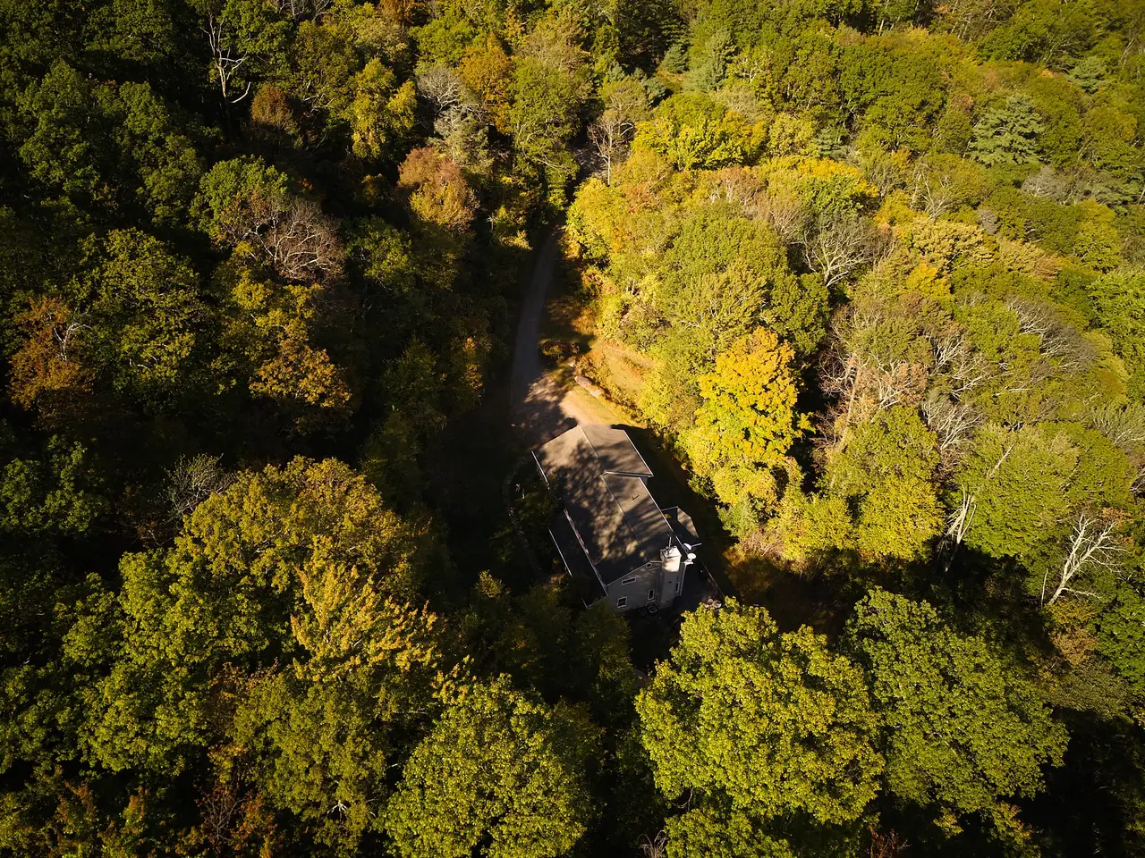 Serene Estate Surrounded by Forest and Rock Outcroppings