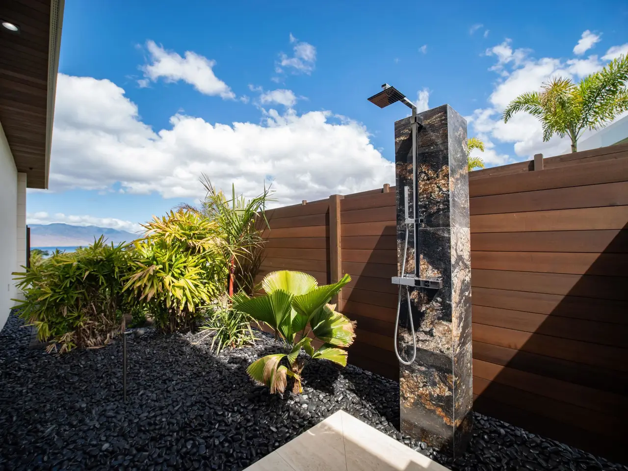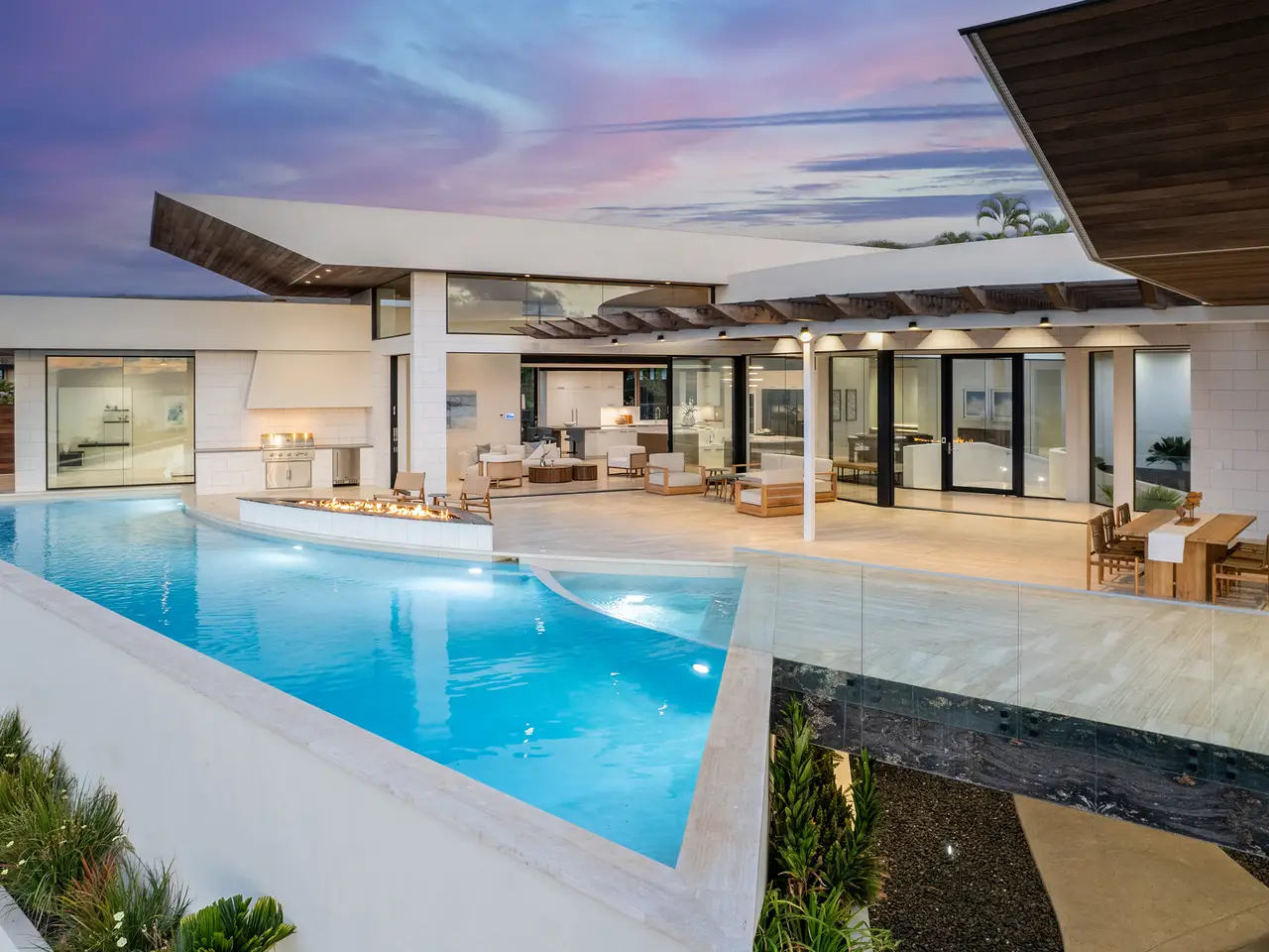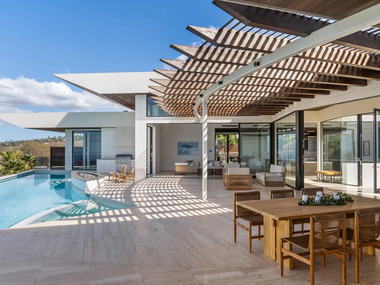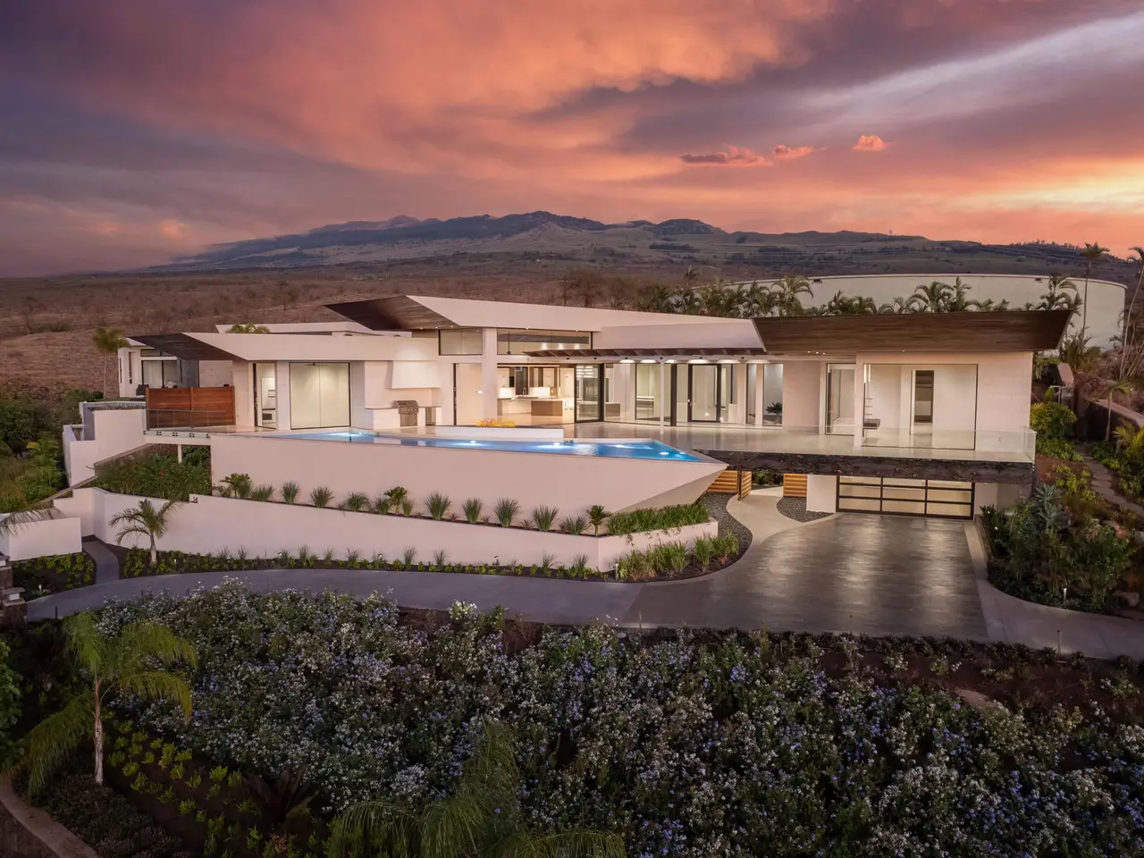Atop the exclusive and private enclave of homes at The Ridge at Wailea, sits a masterpiece of modern architecture and design. A select few will experience the spectacular ocean views and the artistic flare of this residence as a livable sculpture. As you enter a large, covered entry, the striking black magma stone surrounds a tropical courtyard with a modern gate revealing an impressive steel and stone spiral staircase that welcomes you to another level of luxury and into another dimension of living. From the moment you enter this 5,000+ sq. ft. property, you will be struck by the floor-to-ceiling wall of windows and doors, filling the home with natural light and breathtaking views from south of Molokini to the majestic West Maui Mountains. Designed by Guy Dreier Designs and built by Trend Builders, the modern flair of this 4 bedroom, 4.5 bath estate is enhanced by sculptural shapes, dramatic lines, and organic spaces. Seamless integration of the expansive indoor and outdoor spaces serves to further enhance the open-air, island lifestyle. The remarkable layout features multi car parking and garage, media, living, dining areas, guest bedrooms with private lanais, and 2 master wings. The south wing has an exquisite master and spa-like bath, indoor/outdoor showers, a walk-in closet, and coastal views from a private lanai, an office/guest suite, laundry room, and elevator for privacy from the main living area. The north wing has a gracious master suite with expansive ocean views, indoor/outdoor shower, walk-in closet, poolside lanai, and the open-air kitchen for premier entertaining. With a large island, pantry, sunken bar with intimate seating areas, Miele wine unit, and other high-end appliances, the lavish chef’s kitchen offers guests an elegant entertaining experience. At the heart of this ultra-contemporary oasis is an outdoor lanai featuring a stunning Avant Gard pool with spa, gas fire pit for cozy evenings, a built-in barbecue, and the ultimate outdoor dining and entertaining area. Featuring sleek finishes, soaring high ceilings, Quartzite slab stone counters, Poliform systems throughout, this home has been designed with the highest attention to detail creating an air of sophistication. This is the perfect balance of single level living and contemporary comfort setting this home apart from rest. Listing Broker has a recorded interest in the property and is licensed in the State of Hawaii.