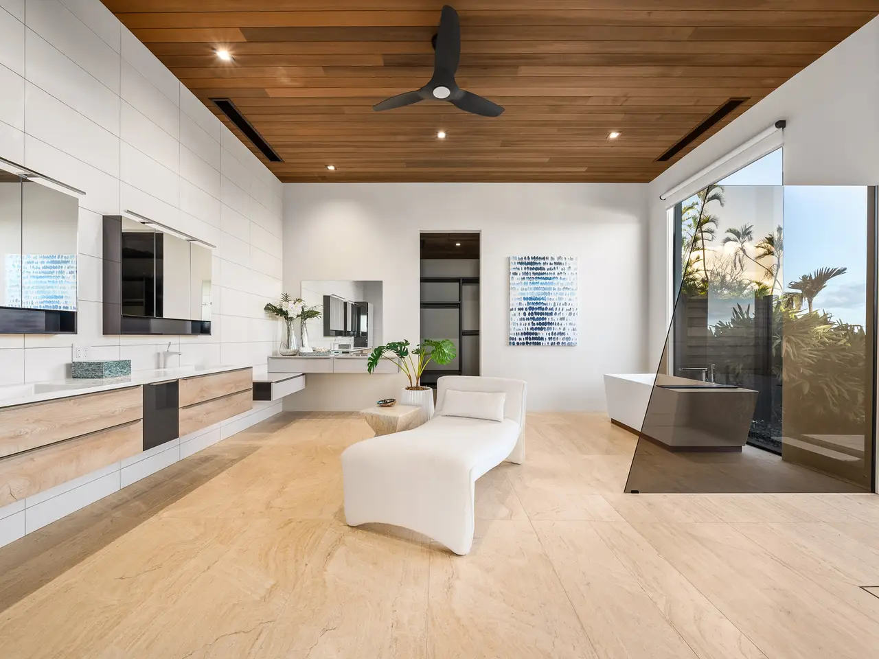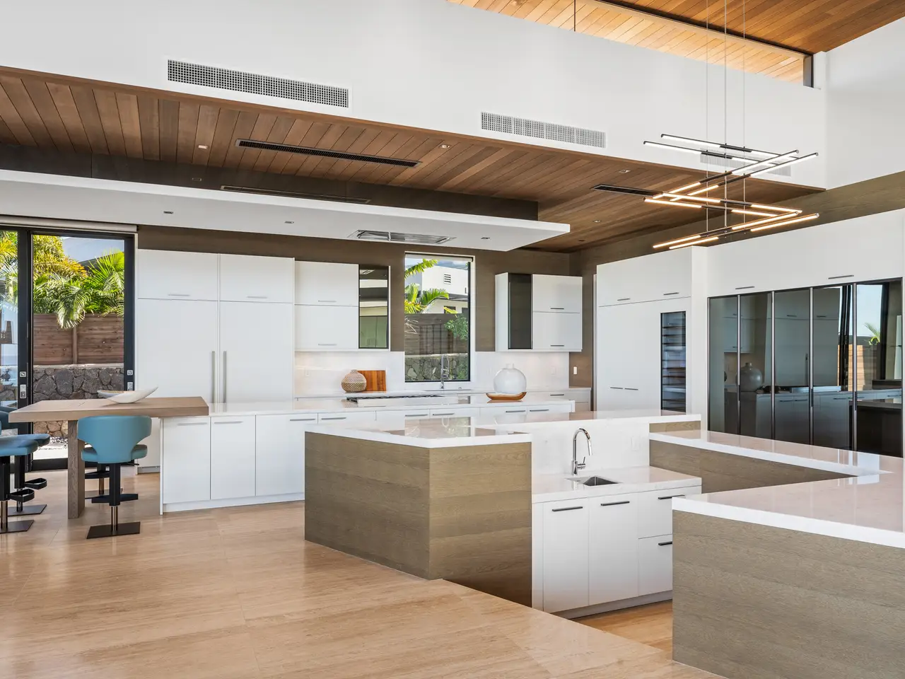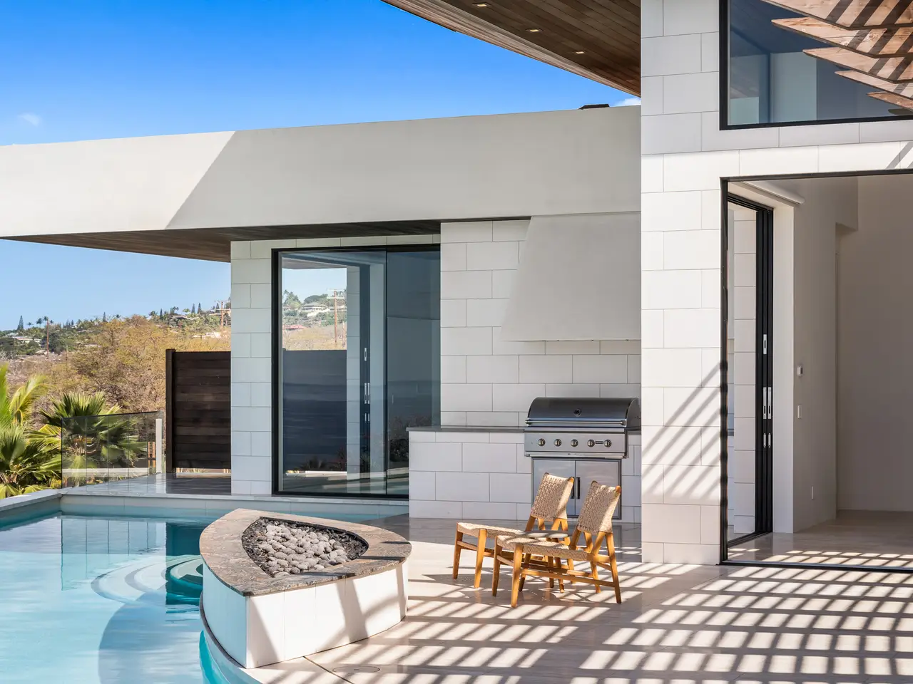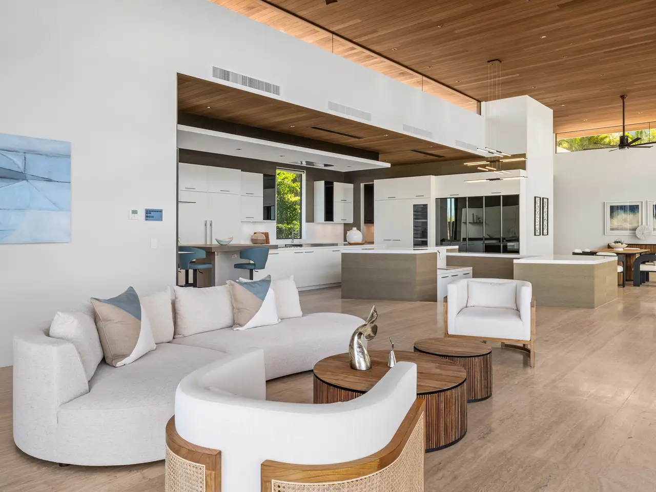 Atop the exclusive and private enclave of homes at The Ridge at Wailea, sits a masterpiece of modern architecture and design. A select few will experience the spectacular ocean views and the artistic flare of this residence as a livable sculpture. As you enter a large, covered entry, the striking black magma stone surrounds a tropical courtyard with a modern gate revealing an impressive steel and stone spiral staircase that welcomes you to another level of luxury and into another dimension of living. From the moment you enter this 5,000+ sq. ft. property, you will be struck by the floor-to-ceiling wall of windows and doors, filling the home with natural light and breathtaking views from south of Molokini to the majestic West Maui Mountains. Designed by Guy Dreier Designs and built by Trend Builders, the modern flair of this 4 bedroom, 4.5 bath estate is enhanced by sculptural shapes, dramatic lines, and organic spaces. Seamless integration of the expansive indoor and outdoor spaces serves to further enhance the open-air, island lifestyle. The remarkable layout features multi car parking and garage, media, living, dining areas, guest bedrooms with private lanais, and 2 master wings. The south wing has an exquisite master and spa-like bath, indoor/outdoor showers, a walk-in closet, and coastal views from a private lanai, an office/guest suite, laundry room, and elevator for privacy from the main living area. The north wing has a gracious master suite with expansive ocean views, indoor/outdoor shower, walk-in closet, poolside lanai, and the open-air kitchen for premier entertaining. With a large island, pantry, sunken bar with intimate seating areas, Miele wine unit, and other high-end appliances, the lavish chef’s kitchen offers guests an elegant entertaining experience. At the heart of this ultra-contemporary oasis is an outdoor lanai featuring a stunning Avant Gard pool with spa, gas fire pit for cozy evenings, a built-in barbecue, and the ultimate outdoor dining and entertaining area. Featuring sleek finishes, soaring high ceilings, Quartzite slab stone counters, Poliform systems throughout, this home has been designed with the highest attention to detail creating an air of sophistication. This is the perfect balance of single level living and contemporary comfort setting this home apart from rest. Listing Broker has a recorded interest in the property and is licensed in the State of Hawaii.