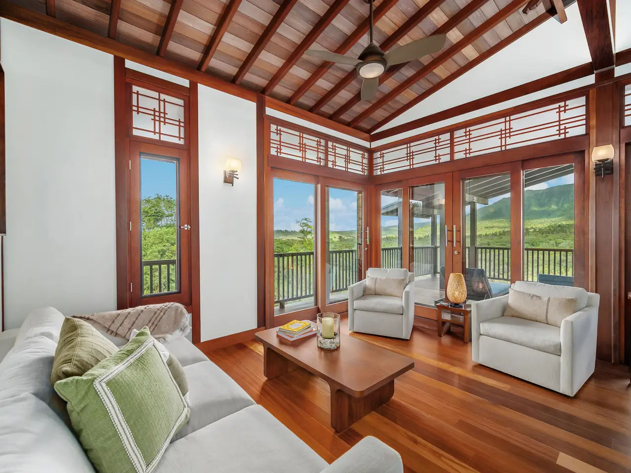 Surrounded by mature landscaping & fruit trees, this lush estate is minutes from world-class beaches, surf breaks, golf, shopping, Kilauea town, Hanalei Bay and more. It is a true North Shore retreat designed for privacy, comfort, and a deep connection with nature.