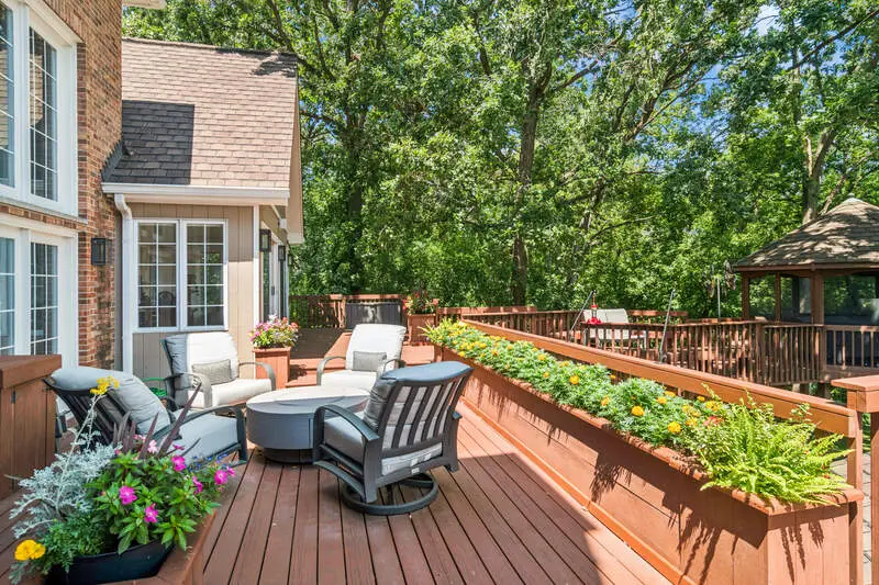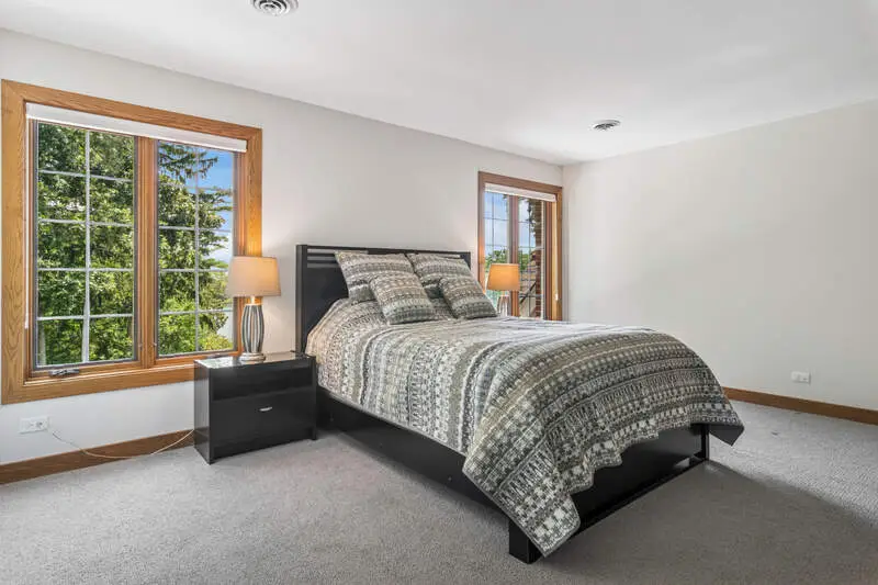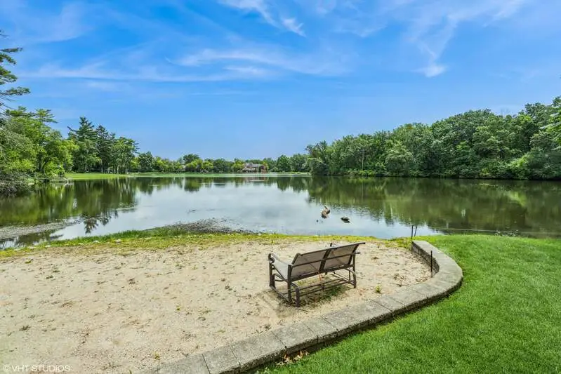 An extraordinary retreat on Bishop's Lake in Kildeer, this 5.5-acre estate blends rugged nature with sophisticated luxury. Just minutes from downtown yet worlds away in serenity, it offers sweeping lake views, mature trees, and a private resort lifestyle. Inside, the home stuns with a grand stairwell accented by a 20-foot stone waterfall, custom millwork throughout, and four fireplaces that create warmth and character in every season. The dramatic great room features soaring ceilings and walls of glass that frame ever-changing lake vistas and flood the space with natural light. At its center is a true highlight-an extraordinary $300K walnut kitchen, showcased on HGTV's "I Want That." Recently enhanced with new quartz counters and top-tier stainless appliances, it blends striking design with everyday functionality. Resort-style amenities extend beyond the walls: a treehouse-style gazebo, private beach with lake access for swimming and kayaking, and a year-round indoor pool/ hot tub with a waterfall that feels like a world-class spa. Wildlife is part of the daily rhythm here-swans gliding across the water, deer along the treeline, egrets soaring overhead, and excellent fishing right from your shoreline. Whether entertaining by the lake, enjoying quiet mornings on the beach, or relaxing fireside after a swim, this estate delivers a rare balance of natural beauty and sophisticated design in one of Kildeer's most coveted settings. Completing the picture is a massive three-car garage, featuring one oversized stall with a 10'10" door and nearly 30' deep- perfect for housing an RV, boat, or car rack.