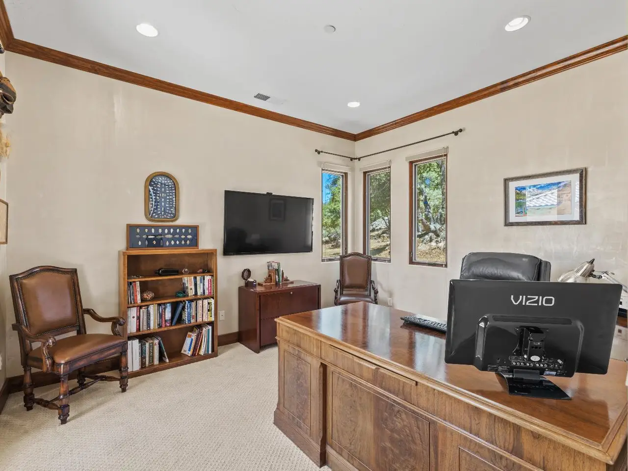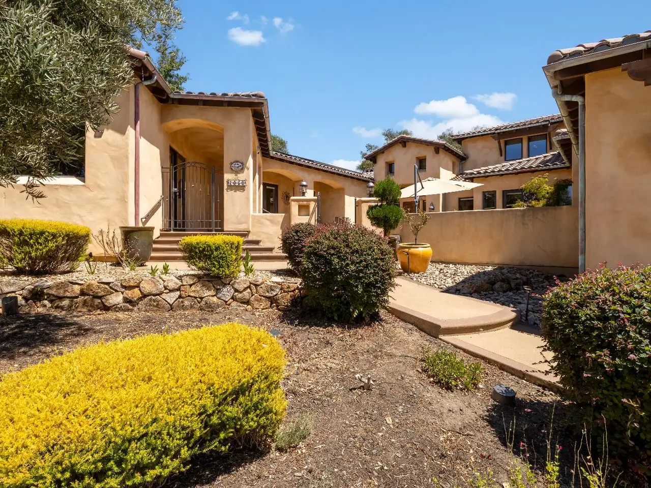 A Tuscan Masterpiece on the 18th Fairway at Winchester Country Club - Experience the elegance of 17th-century Italy blended with modern luxury in this stunning Tuscan-style estate high above the 18th fairway of Winchester Country Club. Spanning 5,236 square feet, this four bedroom, six bath home offers breathtaking views of the golf course and foothills. Enter into Old World charm with arched doorways, hand-molded plaster walls, and open-beam ceilings. Hardwood and tile floors flow throughout, accented by stonework and premium finishes. The gourmet kitchen boasts Viking and Bosch appliances, antique-glazed cabinetry, and chiseled granite countertops. The primary suite features a vaulted ceiling, stone fireplace, spa-like bath with heated marble floors, jetted tub, and dual copper sinks. Upstairs, enjoy a large Game/Home Theater room, wet bar, and expansive balcony with panoramic views. A charming casita offers versatility as a guesthouse or office. The outdoor space includes a front courtyard, covered patio, outdoor kitchen, spa, and fountain, all overlooking the golf course views from this 1.10 acre lot. Additional features include owned solar, a Generac Standby Generator, a wine cellar, and a four-car garage. This estate offers unparalleled luxury in a premier golf course setting.