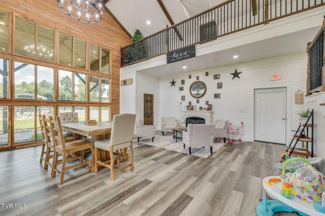 This one-of-a-kind Airbnb offers a 6600 sq ft custom-built barndominium with 2 car garage sitting on nearly 3 acres in the scenic Tennessee countryside. Plus, a 60x40 detached 3-bay garage/shop. This 5-bedroom, 3-bath layout showcases 32-foot cathedral ceilings and expansive windows that fill the space with natural lighting. A cozy fireplace adds warmth and charm to the main living area, creating an inviting atmosphere for gatherings throughout the year. The master suite is conveniently located on the main level featuring a spacious master bedroom, a full bath with double vanities, a beautifully tiled shower, and a large walk-in closet. Upstairs, you will find two additional bedrooms, a full bath, a large bonus room, and a movie room perfect for movie nights, game days, or relaxed hangouts with friends and family. Completely Furnished! Take a refreshing splash in the in-ground pool, the perfect spot for sunny afternoons and evening swims. Enjoy the screened-in porch with an outdoor kitchen featuring a fridge, sink, and Blackstone grill, where cookouts and brunches with family and friends are always a good time. The porch also includes two large TVs, perfect for football season and game nights. Whether you're planning a wedding party, birthday celebration, vacay getaway or weekend retreat, this property provides a striking setting and plenty of room to bring people and celebrations together. The outdoor space is well-suited for event setups tents, tables, dance floors, photo stations, and more. Also included is a 60x40 metal garage with three garage bays, currently leased out month to month by a local trucking company. Offering two offices and a full bathroom with shower, generating consistent monthly income from a long-term tenant.This is a commercial listing with an active rental and lease income.