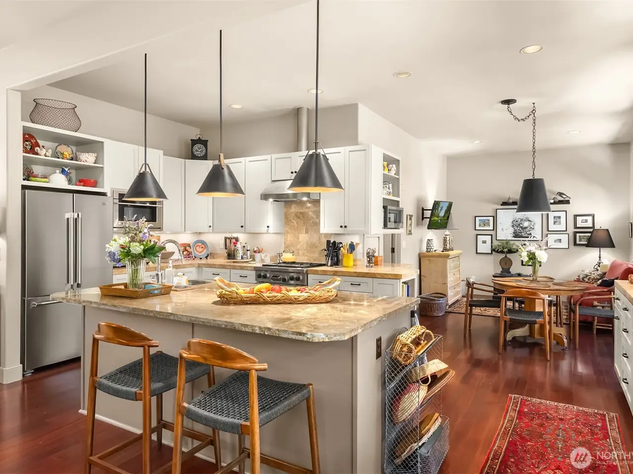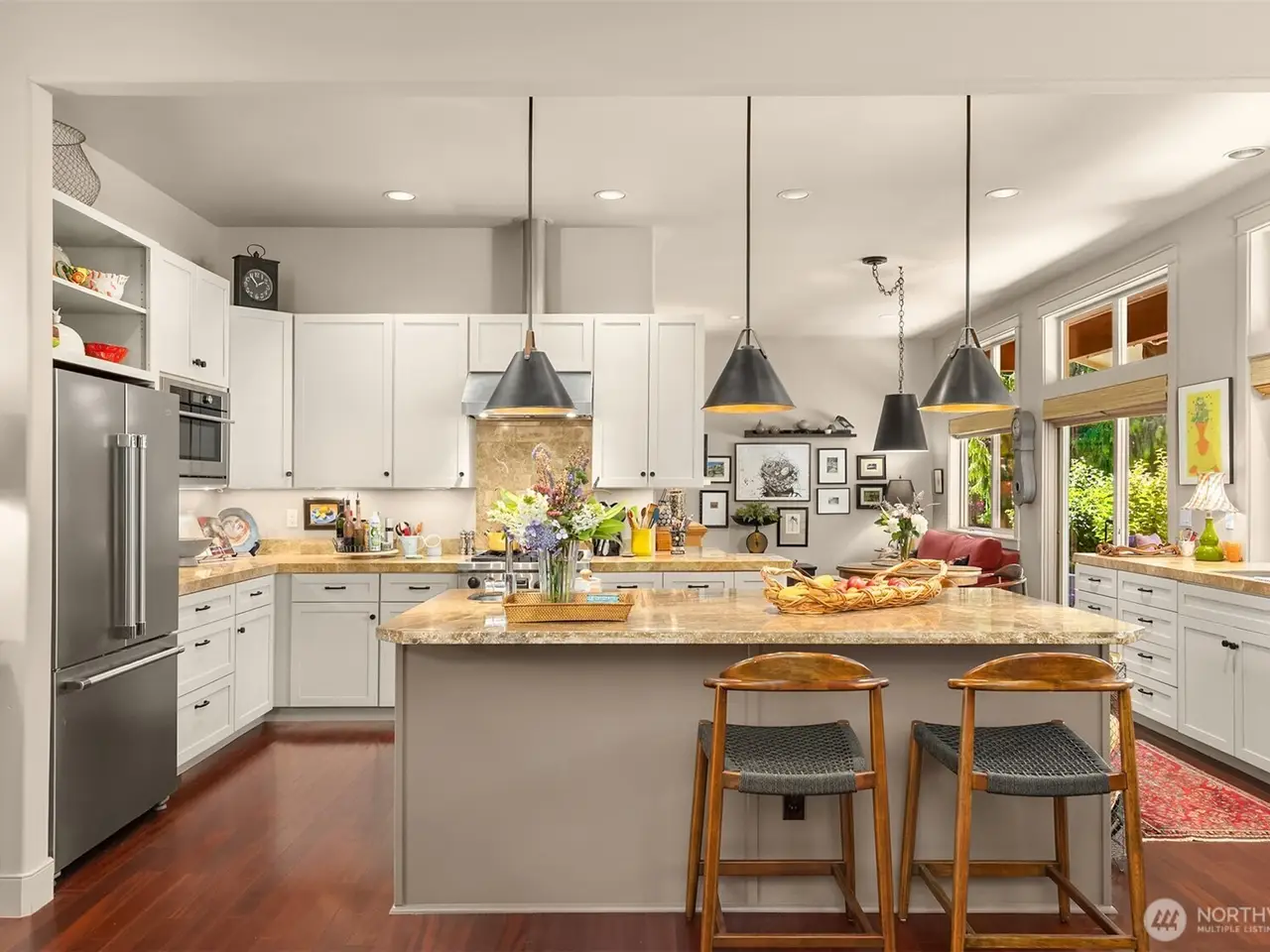 Exceptional 1 level home in Kingston's White Horse golf community. Custom 2 bdrm + office/den home blends luxury & comfort in a serene, park-like setting. Open layout w/ vaulted ceilings, hardwoods & striking fireplace features walls of windows showcase greenery & glowing western light. Chef's kitchen w/granite counters, stainless appliances, custom cabinetry + a generous walk-in pantry is a dream! Spacious primary offers spa-like bath w/soaking tub & walk-in closet. 2 other bdrms (1 currently used as the office) provides additional flexibility. Enjoy morning coffee or evening gatherings on the covered patio surrounded by gorgeous grounds. Minutes from the ferry, clubhouse & scenic trails, this is upscale Northwest living at its finest!