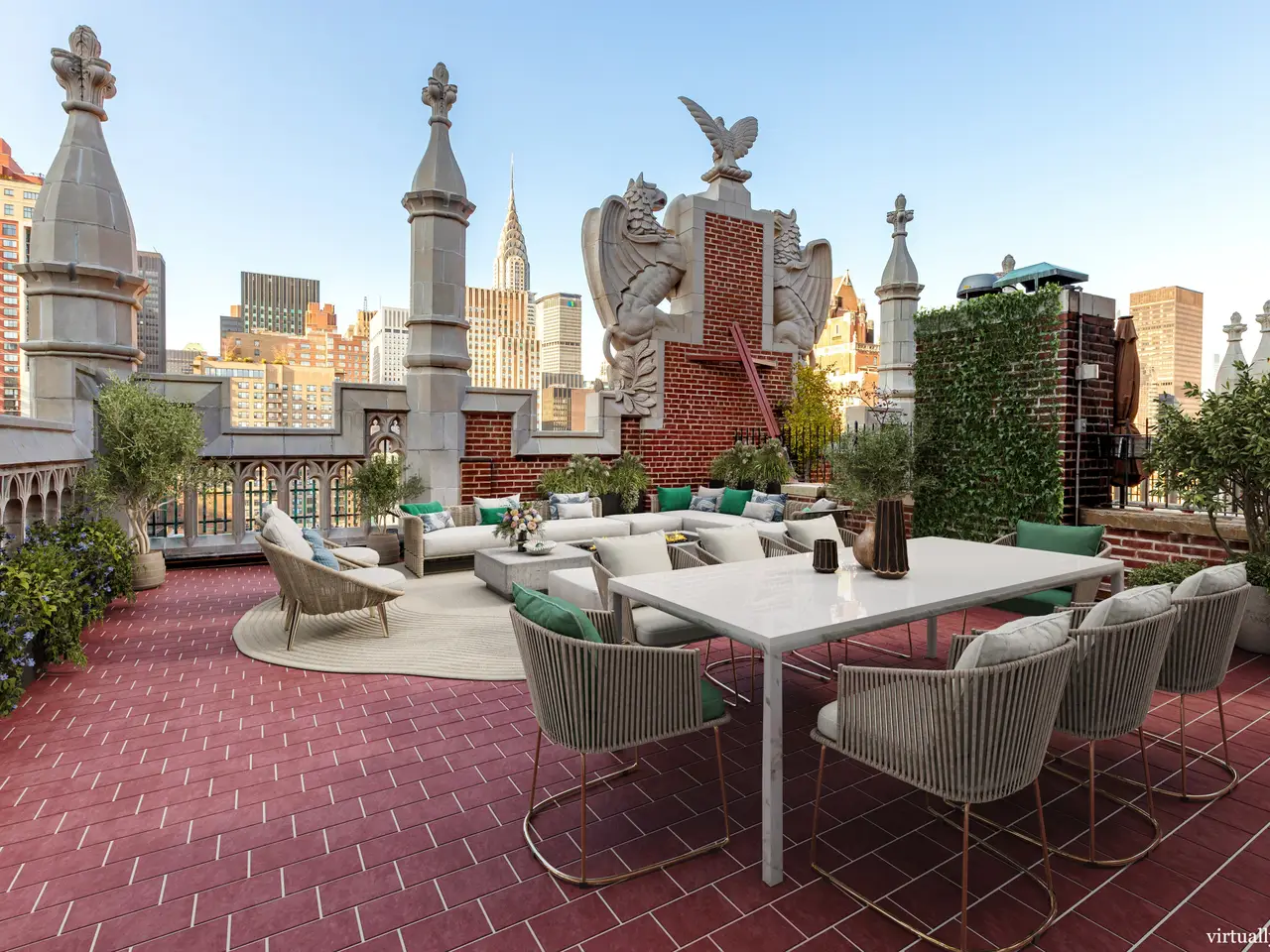 TERRACE LOVERS REJOICE! Rare & Exceptional Offering! Perched at the top of Tudor City's most distinguished prewar cooperative, this exquisite penthouse is an architectural masterpiece replete with nearly 18-foot beamed ceilings, spectacular casement windows, wood burning fireplace, central A/C, washer/dryer, 2,600 interior square feet, and 700 square feet of jaw-dropping private outdoor space with magnificent spires, gargoyles, and iconic city views! ALL UTILITIES-including electricity-are included in the maintenance! In this aerie the discerning buyer finds the opportunity to acquire not only a trophy home perfectly suited for lavish entertaining but also a significant piece of New York City history! Permitted: pets, up to 75% financing, co-purchasing, gifting, pied-a-terre ownership, corporate ownership, trust purchases, and subletting after 3 years of ownership. Erected in 1929, Windsor Tower is a white-glove cooperative in the heart of the city where residents enjoy full-time doorman, superb resident manager, cutting-edge fitness center, central laundry, bicycle and storage rooms, as well as a host of additional on-site conveniences including a post office, dry cleaners, convenience store, cafe, steak house, wine shop, and nail salon! There is a beautiful, tranquil green space right across the street, and upon exiting Tudor City to the east, one finds Robert Moses Playground complete with sports facilities and a dog run!