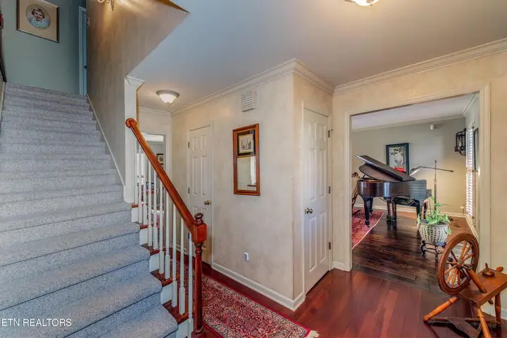 Introducing a Westmoreland Hills Classic 2 Story Brick Traditional home, featuring stunning architectural moldings & trims, creating rooms with elegance & style. This 2-story brick home with stucco trim & classic Southern columns makes a prominent statement on Wheatfield Place.. a private cul de sac with a seasonal landscape design offering a tree-lined border of privacy. Enter the wide foyer with a walnut capped railing & view the formal living room with wet bar &fireplace accented with brick hearth & surround & decorative wood mantel featured on a painted accent wall. French doors open to a lovely 2 - level deck for outdoor entertaining. Central to the home is a comfortable atmosphere in the kitchen & breakfast room opening through a custom framed arch to the expanded sunroom/family room with separate staircase to a private office /library. The spacious kitchen with classic walnut cabinets, tile back splash & granite look countertop opens to the family room & deck for outdoor grilling. Entertain in the large dining room with base trim & painted wainscot. The powder room features a white tile floor with vanity, antique mirror & sink. The white tile floor provides a practical surface& pantry offers extra storage space. A back staircase to the second level includes a large bonus room & a laundry convenient to the bedroom areas.There are 2 private guest bedrooms & a full bathroom with neutral tile & tub/shower. The second level Primary Bedroom offers privacy opening to a master bath with whirlpool tub & double vanity sinks & a separate walk-in glass shower & water closet The spacious primary closet & dressing area is carefully designed to be tucked away. A wide concrete driveway provides extra parking & a walkway to the side parking area. The 2-car garage offers extra room for storage. This home offers location, style & architectural elegance in the Westmoreland Hills area with, Rocky Hill community UT campus, hospital, & airport nearby.