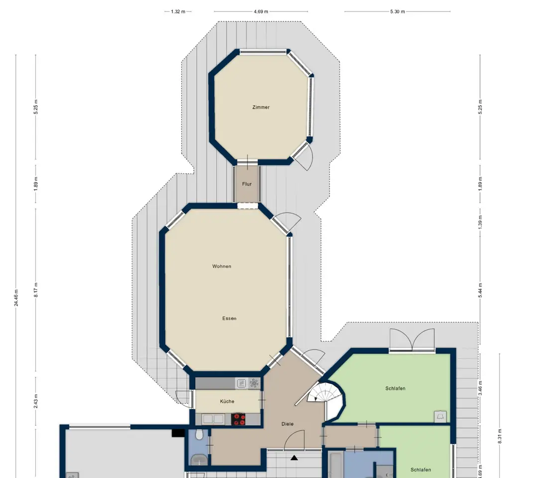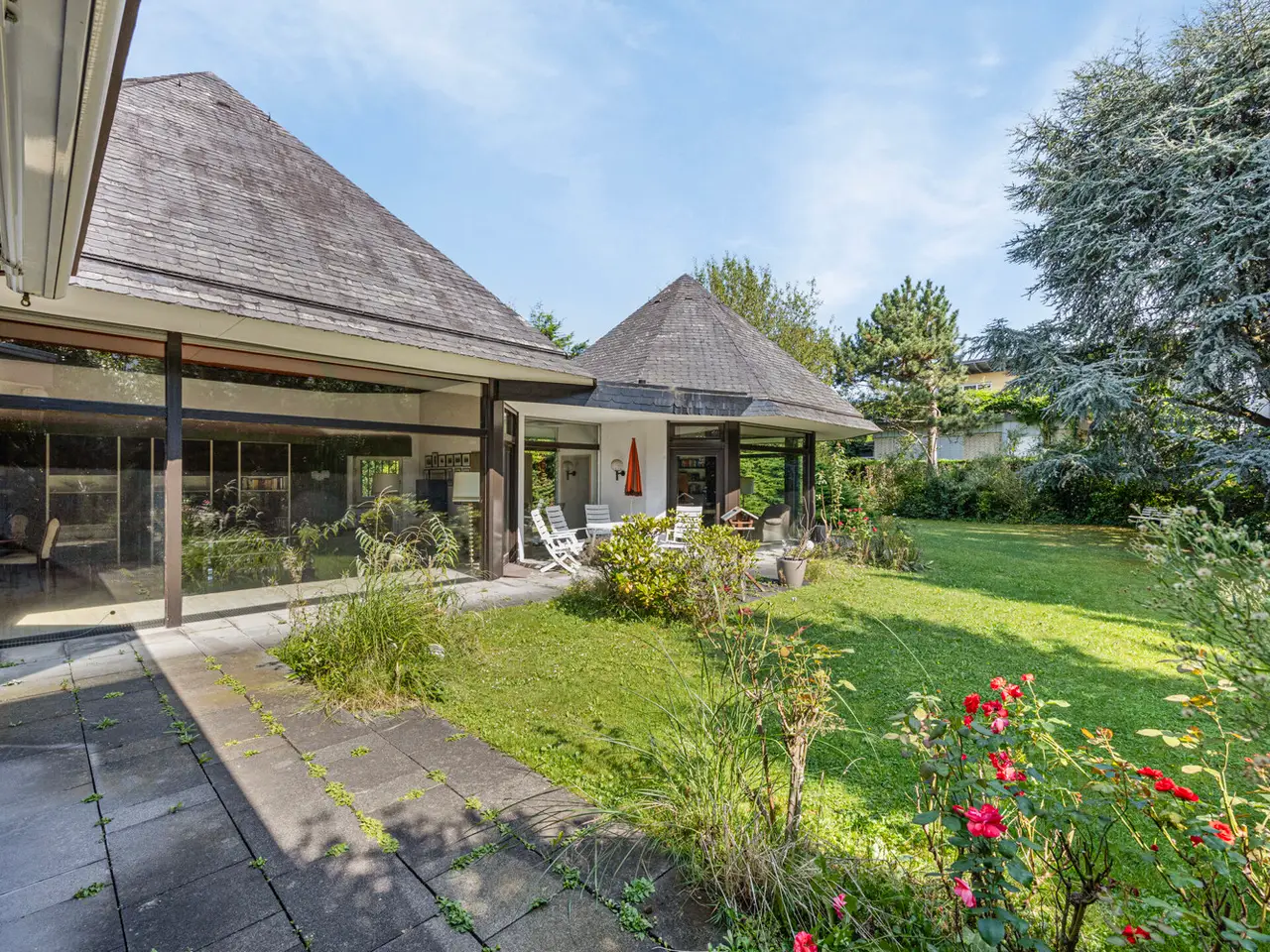 VON POLL IMMOBILIEN presents you with an outstanding property offer: a stylish bungalow on a first-class plot in the sought-after location of Cologne-Hahnwald. This property was built in 1977 in solid construction and extends over a spacious plot of approx. 1,264 square meters. The existing property offers considerable potential for implementing individual ideas and modernizing according to your own wishes. The architecture of the bungalow is characterized by a remarkable design and comprises a total of 218 square meters of living space, spread over two levels. Floor-to-ceiling windows ensure a light-flooded ambience and create a harmonious connection between the inside and outside areas. The glass passage connects the spacious living area with the study, which conveys a particularly relaxing atmosphere with its view of the greenery. The bright bedroom is quietly located on the garden side and also has floor-to-ceiling windows that create a calm and light-flooded environment. The ground floor also offers a cozy kitchen, an elegant bathroom with shower and bathtub and a practical guest toilet. An attractive spiral staircase leads to the basement, which is equipped with two spacious hobby rooms, a small cellar room, a swimming pool with shower and a boiler room. The house is heated by an oil central heating system from 2009. A particularly outstanding feature of this property is the spacious garden, which offers numerous, partly covered seating areas. The southeast-facing property impresses with its excellent location, surrounded by established and partly new villa developments. In addition, the existing development plan opens up attractive opportunities for creating additional living space by adding an extra floor or new construction. We would be happy to provide more detailed information in personal discussions. Have we aroused your interest? We are happy to provide you with detailed information and comprehensive consultations and look forward to arranging a viewing appointment with you. Position The bungalow is in an absolutely quiet location in the exclusive district of Hahnwald. The forest botanical garden with the Friedenswäldchen is just a few minutes' walk away via the Judenpfad. This is ideal for long walks or a jog. Since Hahnwald is one of the newest districts in Cologne, it does not have the typical town center. Here you have the opportunity to really relax and enjoy nature on your large property. The proximity to the left bank of the Rhine and Cologne's southern part of the city means you have numerous options for attractive leisure activities, from natural relaxation to golf and horse riding. In the nearby Marienburger Sportclub you can also play tennis or hockey. Shops for daily needs, restaurants and schools can be found quickly in the neighboring districts of Rodenkirchen and Rondorf. The international school St. George in Rondorf is particularly worth mentioning here. The entire district also has a private 24-hour security service, which ensures the safety of the residents. Thanks to the first-class motorway connection, you are only a few minutes' drive from the A555 and A3 junctions. The centre of Cologne can be reached in just fifteen minutes by car. equipment • Solid construction • Aluminum windows with insulating glazing • Some floor-to-ceiling windows • Natural stone floors and carpet • Daylight bathroom with tub and shower • Shower room in the basement • Swimming pool in the basement • Covered terrace and spacious garden • Central heating • Heating: oil • Double garage Other Information An energy requirement certificate is available. This is valid until September 26, 2034. Final energy requirement is 202.70 kWh/(m²*a). The main energy source for heating is oil. The year the property was built according to the energy certificate is 1977. The energy efficiency class is G. MONEY LAUNDERING: As a real estate agency, von Poll Immobilien GmbH is obliged according to Section 2 Paragraph 1 No. 14 and Section 11 Paragraphs 1 and 2 of the Money Laundering Act (GwG) to establish and verify the identity of the contractual partner when establishing a business relationship, or as soon as there is a serious interest in executing the property purchase contract. For this purpose, it is necessary that we record the relevant data from your ID card (if you are acting as a natural person) - for example by means of a copy. For a legal entity, we require a copy of the commercial register extract from which the beneficial owner can be identified. The Money Laundering Act stipulates that the broker must keep the copies or documents for five years. As our contractual partner, you also have a duty to cooperate in accordance with Section 11 Paragraph 6 of the GwG. LIABILITY: We would like to point out that the property information, documents, plans, etc. that we pass on come from the seller or landlord. We therefore accept no liability for the accuracy or completeness of the information. It is therefore the responsibility of our customers to check the property information and details contained therein for accuracy. All property offers are non-binding and subject to errors, prior sale and rental or other interim use. OUR SERVICE FOR YOU AS AN OWNER: If you are planning to sell or rent your property, it is important for you to know its market value. Have the current value of your property professionally assessed by one of our property specialists free of charge and without obligation. Our nationwide and international network enables us to bring sellers or landlords and interested parties together in the best possible way.