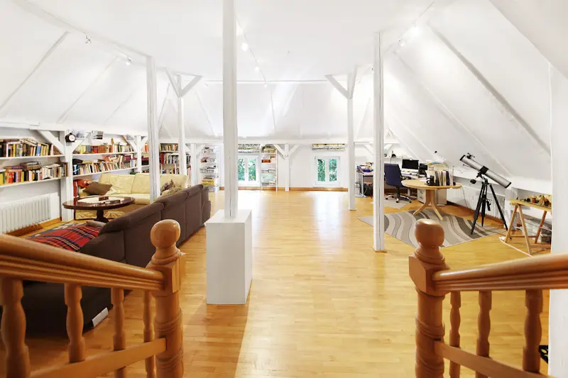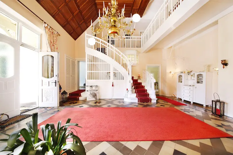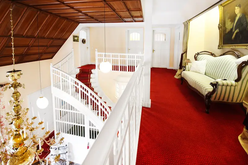 Magnificent staircase leading to upper floor gallery