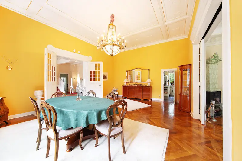 Spacious dining room with sliding doors