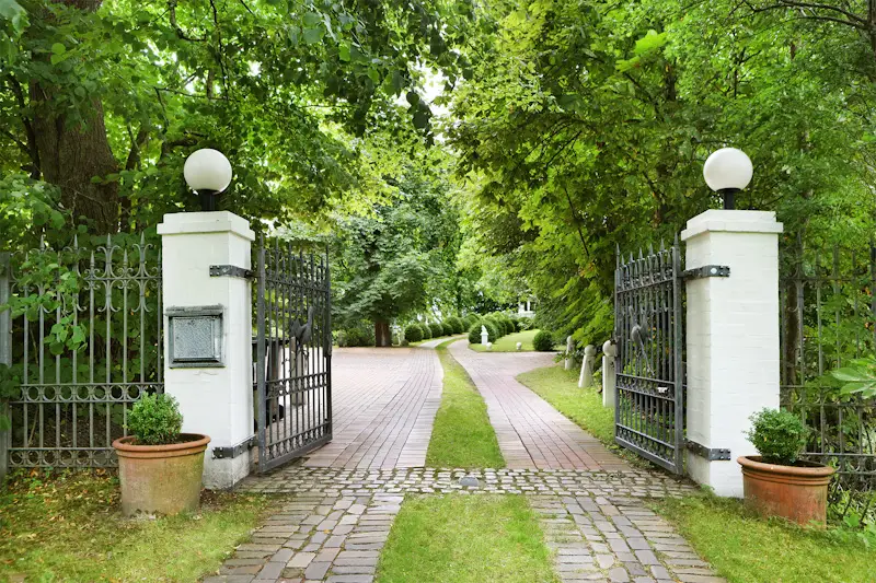 Avenue-like driveway with electric gates