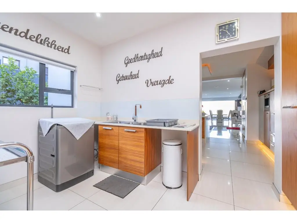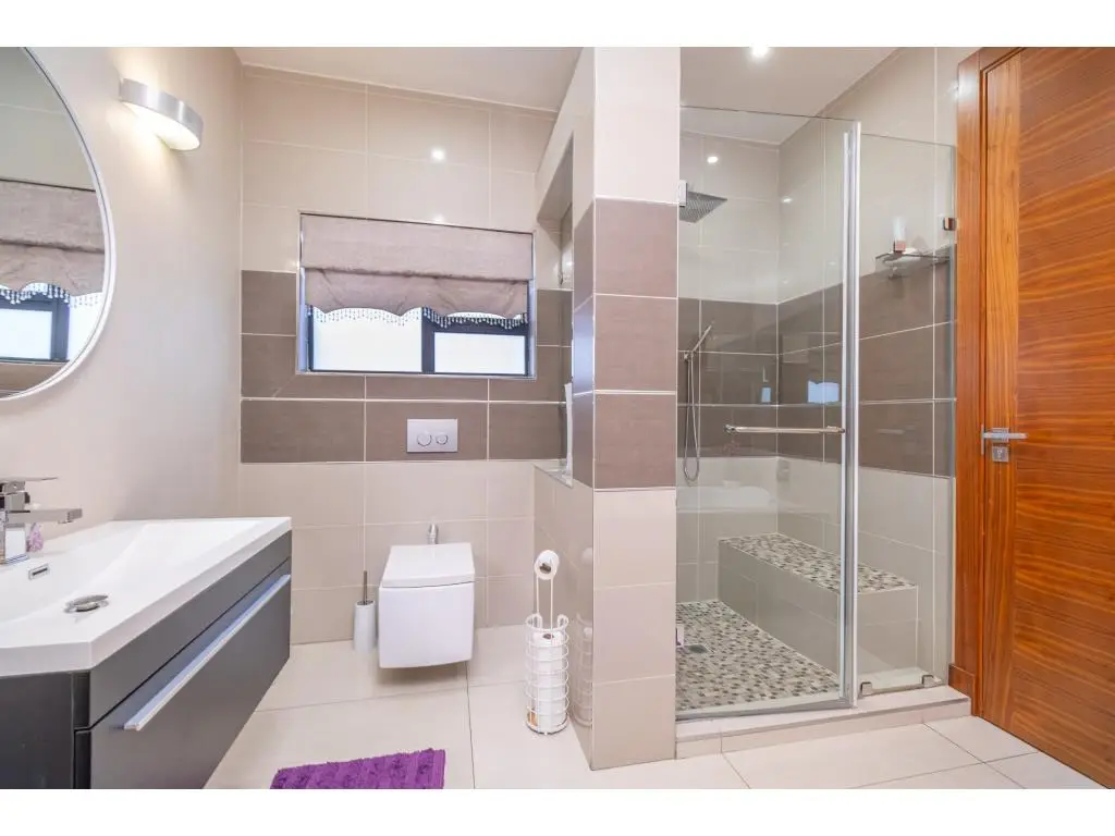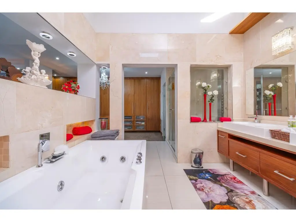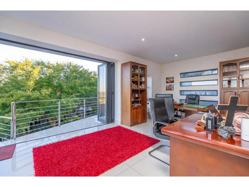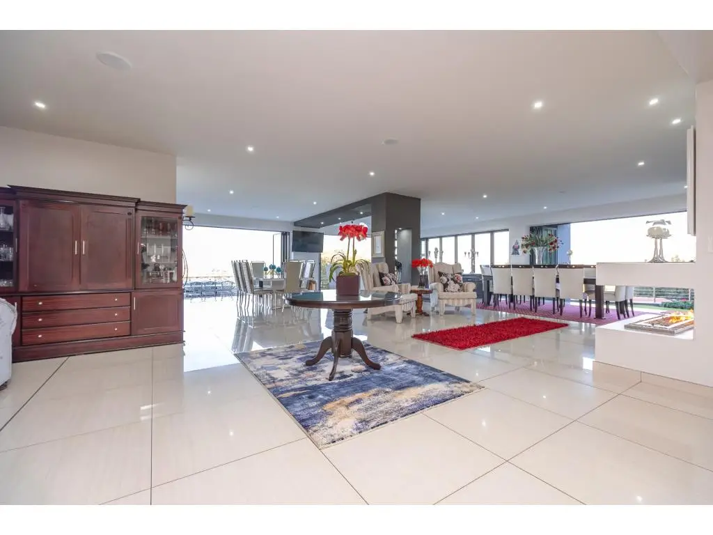 A Rare Offering of Prestige, Privacy, and Panoramic Views Every room in this remarkable residence unveils a new dimension of elevated living. Crafted with precision, adorned with bespoke finishes, and graced by panoramic views, this residence transcends the definition of home, it is a timeless legacy. Basement Level | Grandeur in Scale, Precision in Purpose Arrive in style to a vast, triple-volume basement garage, expertly designed to accommodate a caravan, boat, and multiple luxury vehicles. Integrated storerooms, direct internal access, and a powerful 50 KVA silent generator offer both practicality and uninterrupted comfort. Ground Floor | The Heart of Refined Living A double-volume foyer welcomes you into a space of contemporary elegance, where natural light and fluid design enhance every moment. Interlinked formal and casual living areas open through full-height aluminium stack doors to reveal breathtaking views and seamless indoor-outdoor harmony. A chefGÇÖs kitchen with SMEG appliances is complemented by a discreet scullery and a full laundry suite. Also on this level: A serene guest suite with air conditioning and a private balcony A self-contained flatlet with its own entrance, kitchen, lounge, bedroom, and bathroomGÇöperfect for guests or multi-generational living Direct access to a second double garage for added convenience and privacy First Floor | Tranquility Above It All Three elegant, air-conditioned en suite bedrooms each offer private balconies and serene vistas. The palatial primary suite features a kitchenette, custom illuminated wardrobes, and a spa-style bathroom designed for indulgence. Additional highlights include: A plush pajama lounge for relaxed living A spacious walk-in linen room for graceful organization An expansive rooftop terrace with built-in braai, ideal for sunset gatherings Smart, Sustainable Sophistication Designed for eco-conscious luxury, this home includes: Two 5 KVA inverters Eight 550W solar panels Two solar geysers A 50 KVA silent generator Featherbrooke Estate | Lifestyle in Harmony Set beside the Walter Sisulu Botanical Gardens, Featherbrooke spans 145 hectares of secure, landscaped serenity, including 21 hectares of award-winning communal gardens. Amenities include: Tennis, squash, and cricket courts Outdoor gym and wellness programs Eatery 83, the estateGÇÖs stylish restaurant Scenic trails, tranquil lakes, and direct access to the Botanical Gardens The Location | Where Convenience Meets Escape Close to top schools, premier shopping, world-class medical care, and elite leisure venues like Silverstar Casino and Ruimsig Golf Club. With easy access to the N14 and N1, Johannesburg, Sandton, and Pretoria are just minutes away. Schedule your private tour today and experience luxury elevated.