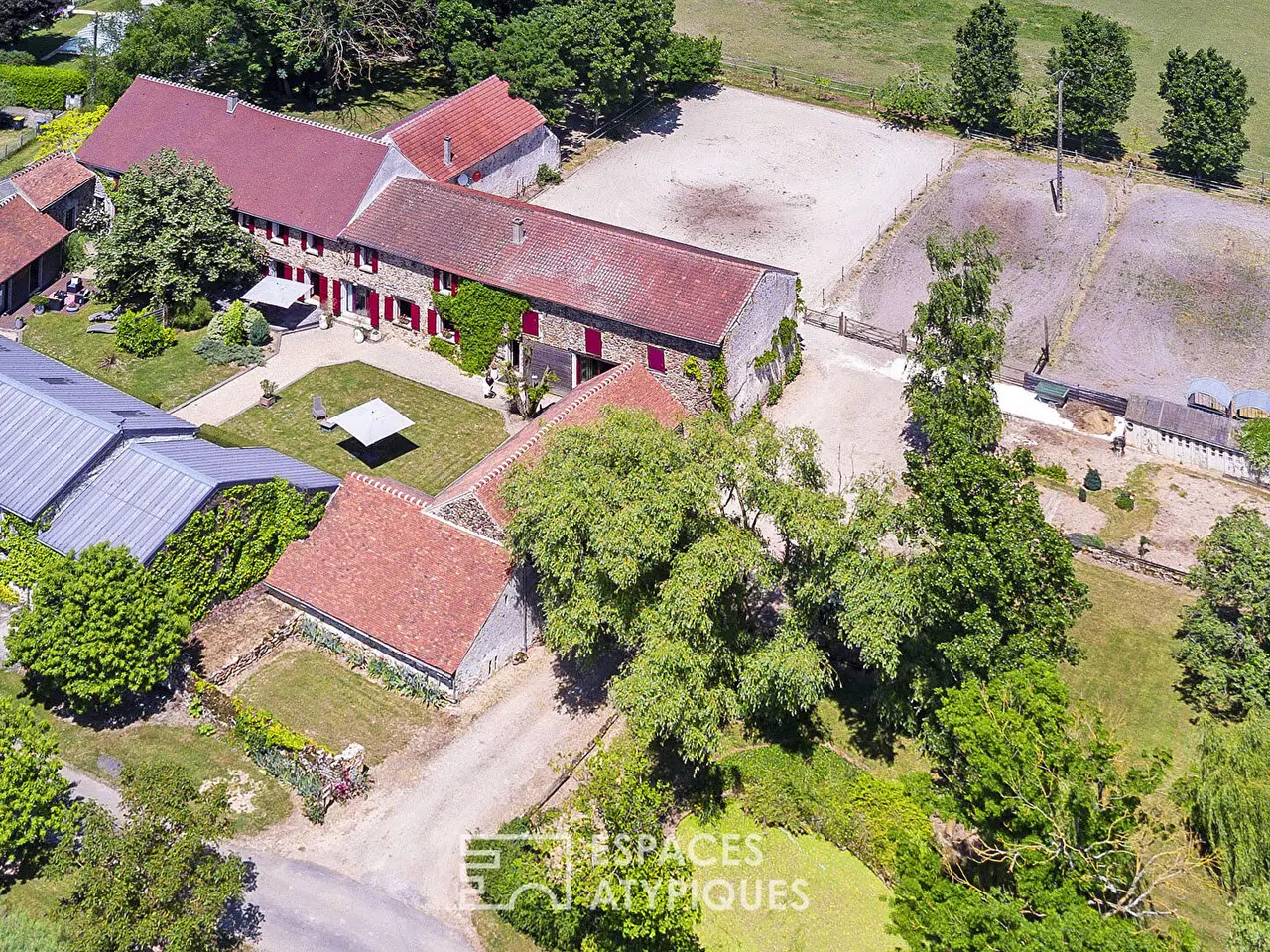 Located in a preserved and peaceful natural setting, an hour and a half from Paris, this magnificent Brie farmhouse, whose history dates back to 1425, offers over 500m2 of living space on a plot of over one hectare, offering a refined living environment combining tranquility and high-end amenities.Set around a typical square courtyard, the property consists of a renovated 50-meter-long farmhouse, housing several independent apartments, a complete wellness area, and quality equestrian facilities. The property stands out for its harmonious layout, its fine materials, and its ability to accommodate a turnkey family, tourist, or professional project.The main house, approximately 200m2, captivates with its generous space, character, and meticulous appointments. A large entrance leads to a cozy living room with a Canadian wood-burning stove, a high-end open kitchen extending onto a south-facing terrace, as well as four spacious bedrooms with walk-in closets and a bathroom upstairs.Two cottages complete this complex: the first, measuring 160m2, features a vast living room with a sitting area around the fireplace, a billiard table, a kitchenette, and four bedrooms and three bathrooms upstairs;the second, measuring 85m2, offers a luxury suite with a bedroom, a small living room, a kitchen, a bathroom, and a spa with a jacuzzi, sauna, and multi-sensory shower.A separate wellness area offers a swim spa with counter-current swimming and balneotherapy, a sauna, a steam room, a massage room, and a reception lounge.Outside, a building houses the equestrian facilities, which include a stable with 12 stalls, a tack room, and a grooming area. This complex can be converted into a reception and meeting room.A 120m2 house remains to be renovated to provide additional accommodation.Stabilized paddocks and a large meadow can be used as a parking area.A garage, a workshop, several outbuildings, and a parking lot complete the property's amenities.The landscaped garden offers a beautiful diversity of tree species and flowerbeds, a pond bordered by a majestic weeping willow, terraces, and unobstructed views that enhance the tranquility of the setting.Just 5 minutes from amenities and 15 minutes from the neighboring towns of La Ferte-sous-Jouarre and Montmirail, its proximity to a train station connecting Paris-Est and the A4 highway enhances its rental potential.The property requires no work and is sold furnished and equipped.Whether for professional use or a family reunion project, this estate is a rare opportunity that combines comfort, nature, and versatility.ENERGY CLASS: D / CLIMATE CLASS: BAnnual energy expenditure for standard usage based on indexed energy prices for 2021, 2022, and 2023 (including subscription) is between €4,299 and €5,817 per year.Contact: Elvire de la MARTINIERE - +33 6 03 05 05 96RSAC (Registered Service for Residential Buildings): 800 930 232 MEAUXEnvoyer des commentairesREF. SM1154Additional information* 20 rooms* 9 bedrooms* 1 bathroom* 4 shower rooms* Outdoor space : 13484 SQM* Property tax : 4 441 €Energy Performance CertificatePrimary energy consumptiond : 192 kWh/m2.yearHigh performance housing*A*B*C*192kWh/m2.year6*kg CO2/m2.yearD*E*F*GExtremely poor housing performance* Of which greenhouse gas emissionsb : 6 kg CO2/m2.yearLow CO2 emissions*A*6kg CO2/m2.yearB*C*D*E*F*GVery high CO2 emissionsEstimated average annual energy costs for standard use, inde