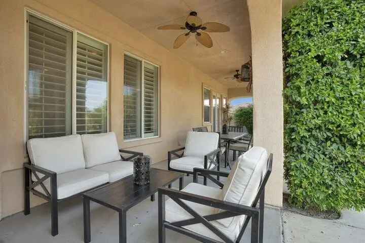 The Real Happiest Place on Earth - Right Here in La Quinta! 🌴 Think the happiest place is in Anaheim? Think again! This beautifully maintained home in La Quinta will have you smiling from ear to ear. With a spacious layout, GREAT for entertaining because you have an oversized great room and kitchen, a dedicated home office, and a charming laundry room full of personality, every inch of this home was designed with comfort and function in mind. Step into the spa-like primary bathroom featuring a soaking tub and separate shower, perfect for unwinding after a desert day. The walk-in closet was custom designed for a true shoe lover! And just wait until you see the incredible backyard - private, lush landscaping with palm trees that you will view from nearby neighbors. Enjoy sunset chats around the firepit, host BBQs under the covered patio with ceiling fans or set up corn hole to play with family and friends. Whether you're working from home or entertaining under the stars, this home has it all. Located in one of La Quinta's most desirable neighborhoods. The community has a park with other green belt areas that are great for walking your pets or exercising or riding bikes and there is Bocce Ball. This is your happy place...waiting for you to make it your home!