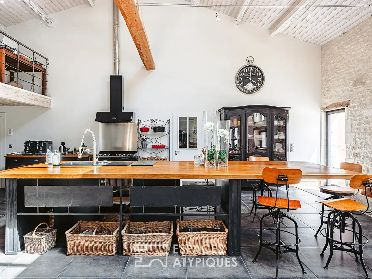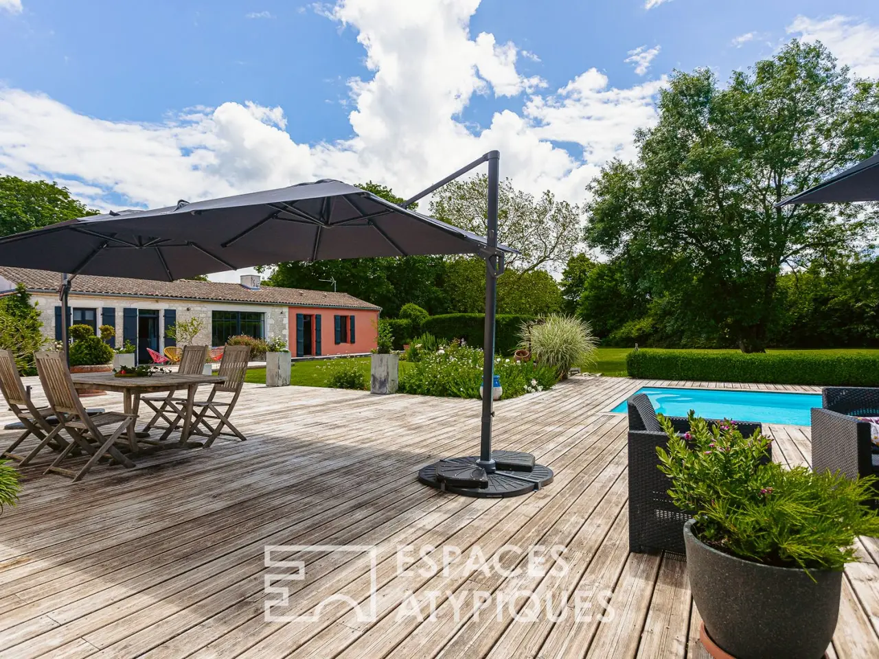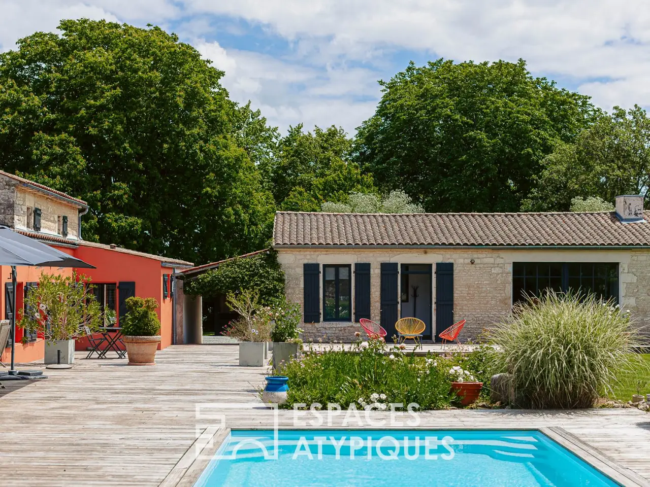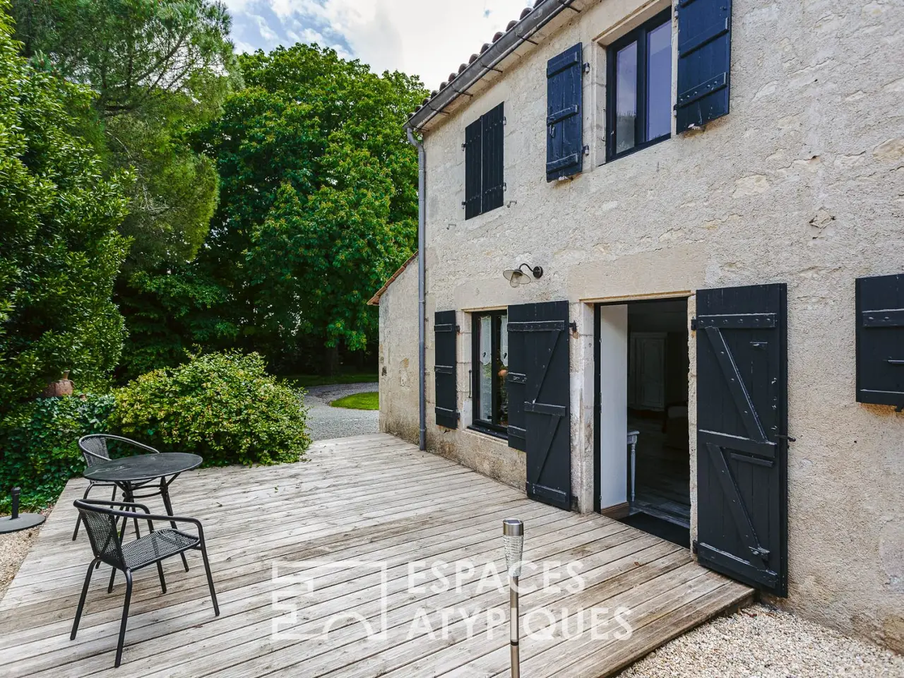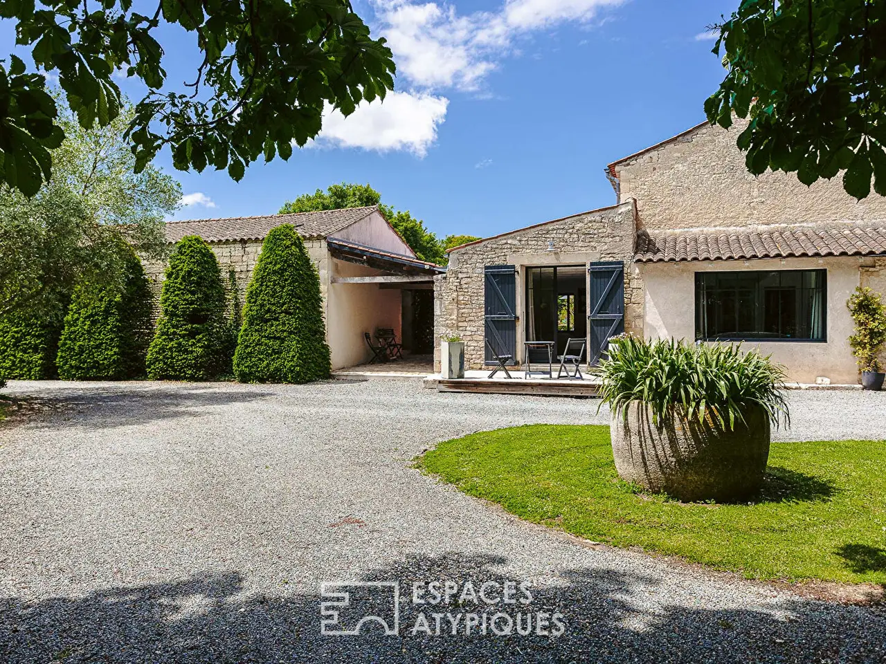EXCLUSIVE ATYPICAL SPACESLocated in the town of Aigrefeuille-d'Aunis on a magnificent wooded plot, this exceptional property benefits from a calm and green setting just 15 minutes from the beach, and 20-25 minutes from La Rochelle. Made up of an old barn of approximately 337 m2, and a former artist's studio of approximately 98 m2, this complex forms an intimate enclosure facing its wooded park, its terraces and its swimming pool.The first buildings dating from 1583, the whole was completely renovated 10 years ago to benefit from modern comfort while maintaining an authentic atmosphere. The property now offers three guest rooms and a high-quality gite.On the barn side, facing south, an extraordinary living room of approximately 180 m2 will delight lovers of large volumes and brightness. A first lounge area takes place in front of an imposing stone fireplace mantle, while the second is more discreet to enjoy the library or the musical instruments. The kitchen area, for its part, is organized around a large central wooden island.Preserved for charm, the old stone mangers complete the decoration. Taking advantage of the volume, an office is nestled in the heights of this living room:. From the kitchen, a hallway with numerous cupboards leads to a large private bedroom upstairs.This suite of approximately 34 m2 benefits from its bathroom and dressing room. A cellar and a scullery complete this private area. Accessible from exterior terraces, three magnificent independent suites complete the ground floor of the barn.Each of them benefits from impeccable finishes with walk-in shower, double sink, and view of the park. Note that these rooms could communicate again with the private part (old configuration of the premises).Facing west with its workshop bay facing the garden, the former artist's studio is today divided into two parts.The first is a gite of approximately 53 m2 with living room-kitchen, bedroom, extra bed and bathroom. Like the guest rooms, it also benefits from its private terrace. The second part is for private use with two bedrooms and a bathroom for an area of approximately 33 m2, making it possible to create a new gite or accommodate loved ones. In the park, a first reception area allows parking for numerous vehicles. In this space, a garden shed/workshop offers plenty of storage capacity.Once there, you just have to let yourself be carried away by your curiosity to discover this green setting with century-old trees:.Friendliness, charm, relaxation, are words that suit very well to this unique property just 15 minutes from the Surgeres TGV station. All amenities in the town of Aigrefeuille-d'Aunis are accessible on foot or by bike (schools, restaurants, supermarket, etc.)ENERGY CLASS: B / CLIMATE CLASS: A. Estimated average amount of annual energy expenditure for standard use, established based on energy prices for the year 2021: between EUR2,150 and EUR2,990REF. EALR1620Additional information* 9 rooms* 6 bedrooms* 6 shower rooms* Outdoor space : 6552 SQM* Parking : 15 parking spaces* Property tax : 3 636 €Energy Performance CertificatePrimary energy consumptionb : 92 kWh/m2.anHigh performance housing*A*92kWh/m2.an3*kg CO2/m2.anB*C*D*E*F*GExtremely poor housing performance* Of which greenhouse gas emissionsa : 3 kg CO2/m2.anLow CO2 emissions*3kg CO2/m2.anA*B*C*D*E*F*GVery high CO2 emissionsEstimated average amount of annual energy expenditure for standard use, established from energy prices for the year 2021 : betwee