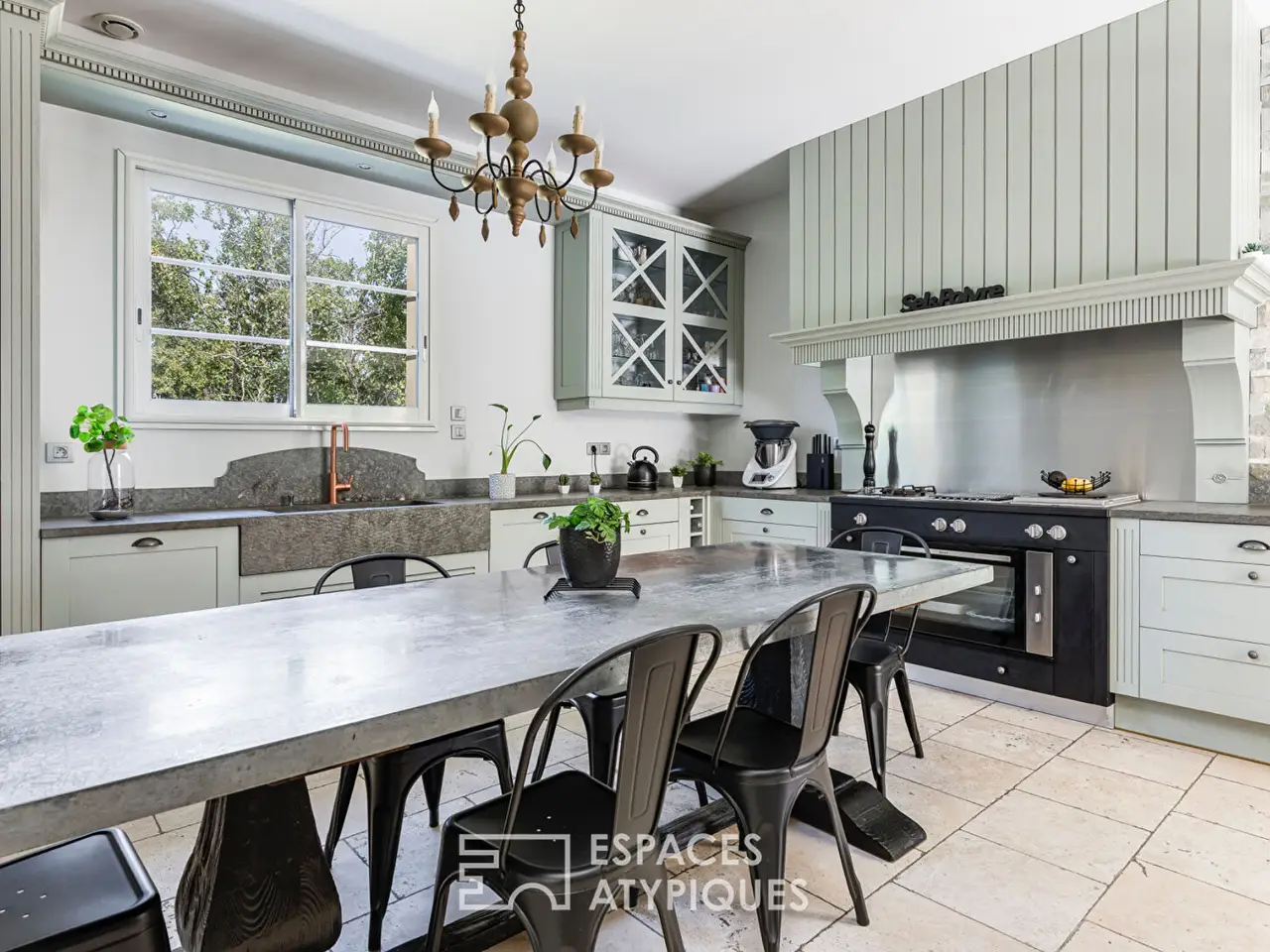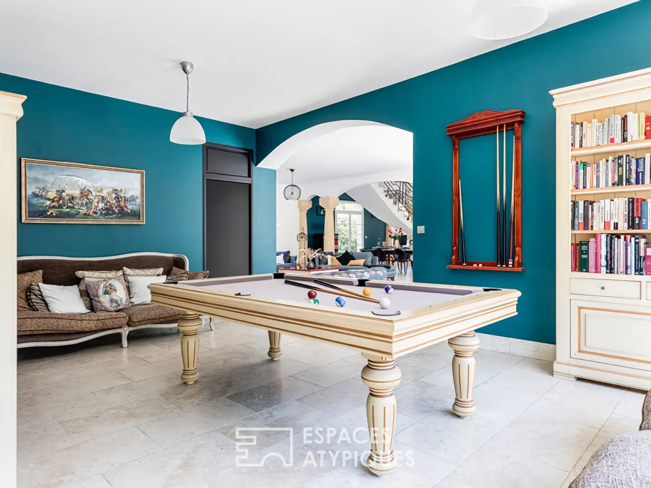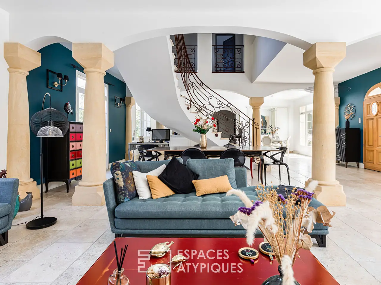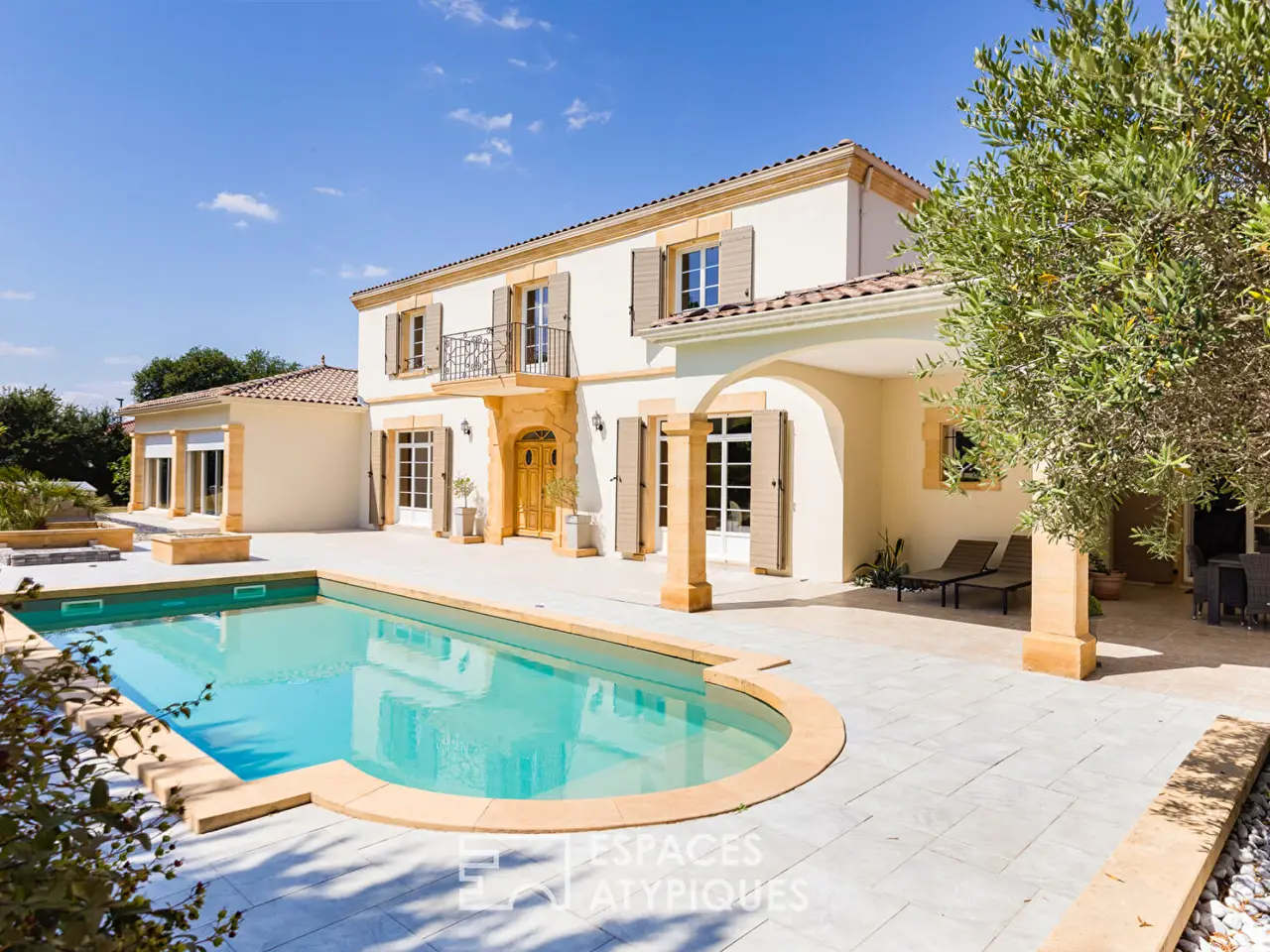Located in Labastide-Saint-Sernin, this architect-designed villa, built in 2008, offers 375 sqm of living space on a wooded plot of approximately 2600 sqm, with no overlooking views. This exceptional property, enhanced by a salt-water swimming pool and several terraces, is distinguished by its generous volumes and unique architecture, inviting you to truly fall in love with it. Upon entering, the villa reveals a spectacular living room of over 150 sqm, enhanced by a 3-meter ceiling height, Turkish travertine flooring, a Dordogne stone fireplace, and a central Jerusalem marble staircase. This living space is naturally organized into several atmospheres: living room, dining room, reading corner, and billiard area, allowing for easy projection into this elegant living environment. The fully equipped kitchen, with a surface area of over 25 sqm, extends into an adjoining pantry. The ground floor also houses an exceptional master suite of approximately 75 sqm, including a 40 sqm bedroom, a separate 10 sqm dressing room, and a 25 sqm bathroom with a 5-person spa and walk-in shower. A gym, a separate toilet, and plenty of storage space complete this level. The upper floor leads to four large bedrooms and a 14 sqm bathroom with a bathtub and shower. Upstairs, four bright bedrooms and a large bathroom allow for harmonious family life. The carefully landscaped garden offers a 9×4 flat-bottomed salt-water swimming pool, ideal for relaxation. The villa benefits from a vast covered terrace of over 50 sqm, extended by a second uncovered terrace, perfect for entertaining and enjoying the sunny days. Thermal comfort is ensured by underfloor heating via an air/water heat pump on the ground floor and reversible air conditioning upstairs. Its excellent energy rating confirms its optimization. A well, an automatic watering system, a motorized gate and an electric garage door enhance the outdoor amenities. This property is located in a peaceful residential environment, close to local amenities, offering a privileged living environment. This architect-designed villa, with its unique features and high-end services, represents a rare opportunity on the real estate market. Shops and schools 5 minutes, Blagnac Airport 25 minutes, Highway 12 minutes REF. 12083 Additional information * 11 rooms * 5 bedrooms * 3 bathrooms * Floor : 1 * 1 floor in the building * Outdoor space : 2700 SQM * Parking : 6 parking spaces * Property tax : 4 498 € Energy Performance Certificate Primary energy consumption b : 108 kWh/m2.year High performance housing