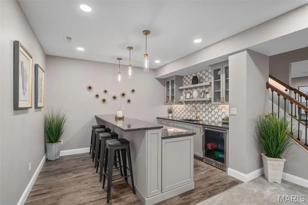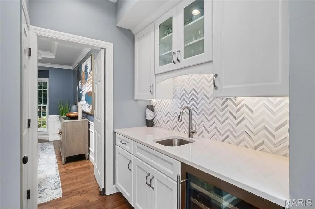 • Wet bar with herringbone backsplash