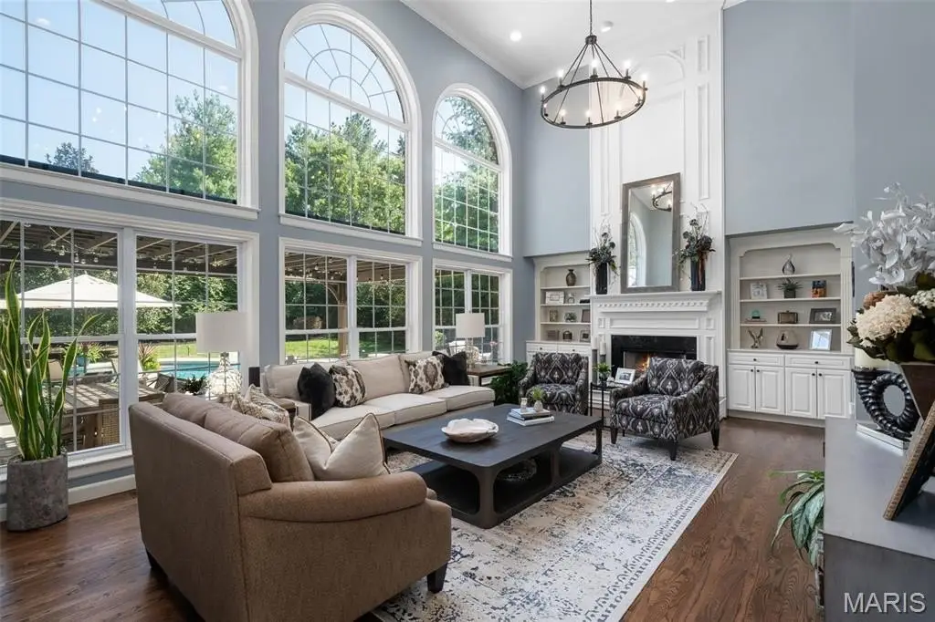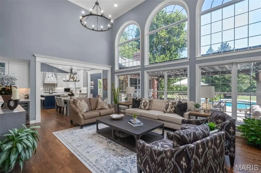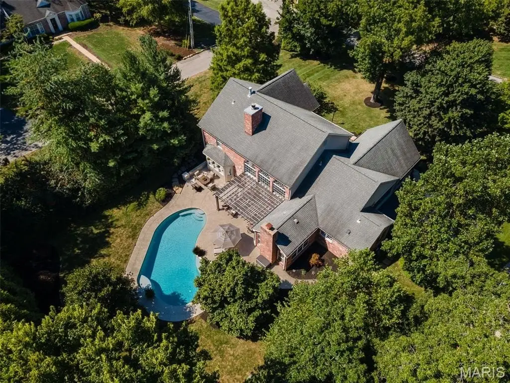Located in Ladue, Daniel Rd offers an exceptional blend of updated luxury and comfort throughout. The current owners have meticulously maintained this five bedroom, five and a half home as well as curating the following renovations: new custom kitchen with high end appliances, new wet bar in great rm with herringbone backsplash, updated powder rm, main floor laundry, refinished flooring, updated staircase with new railing and iron spindles, renovation of lower level, expanding the square footage to include an entertaining wet bar, updated full bath, gym and so much more. The private backyard offers renovated spaces to complement the beautiful pool including new and expanded pool decking, patio, firepit, pergola and landscape lighting. A true oasis. Main floor primary, cozy family rm with fireplace and so much room to spread out make this a true standout to our market. Updated HVAC, Ladue schools.