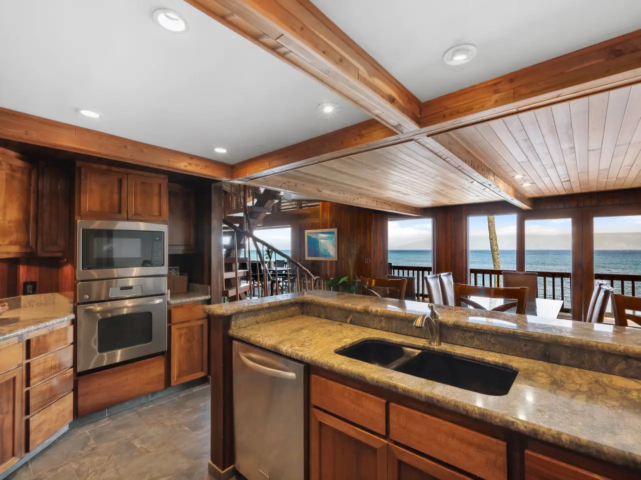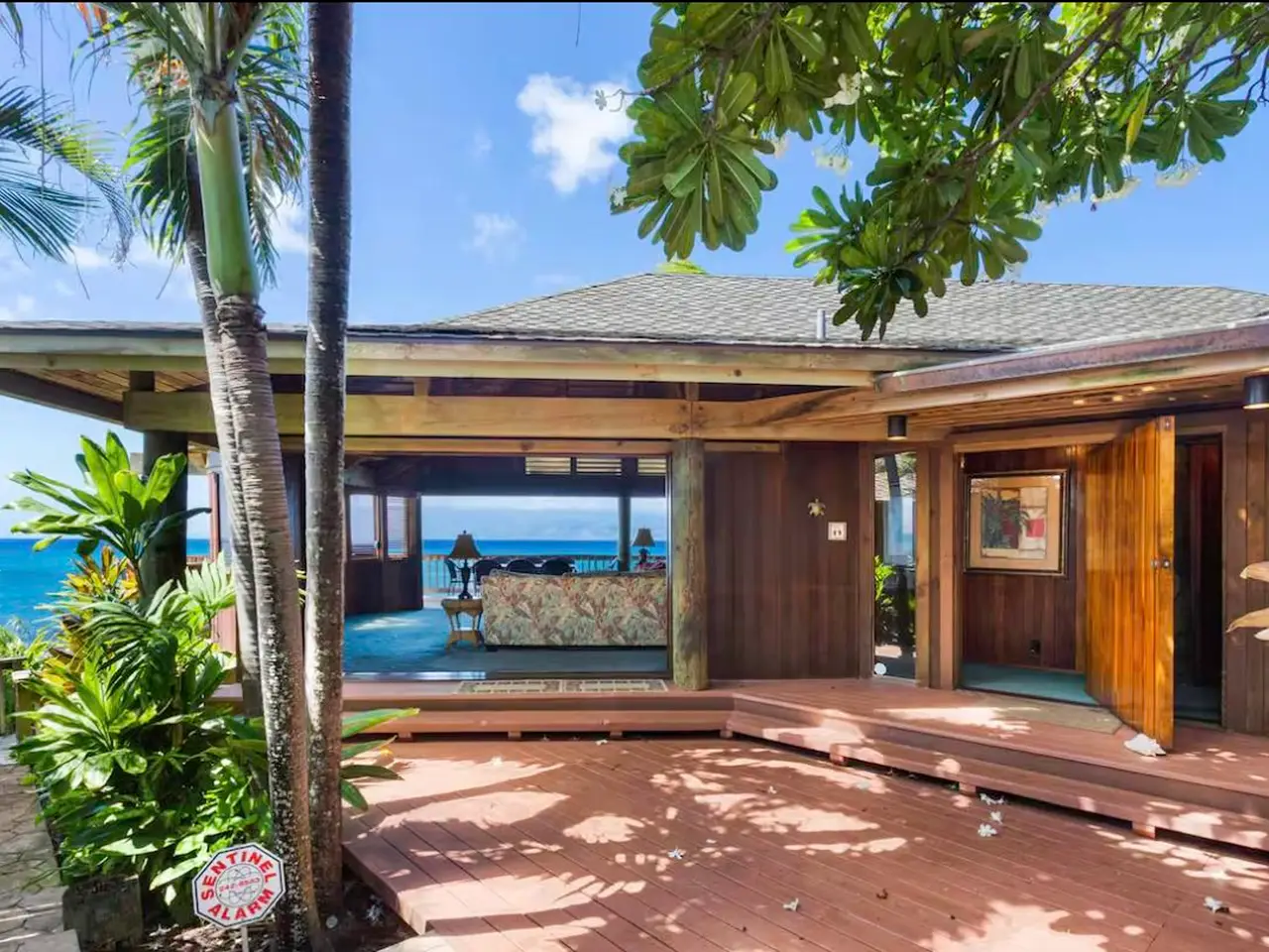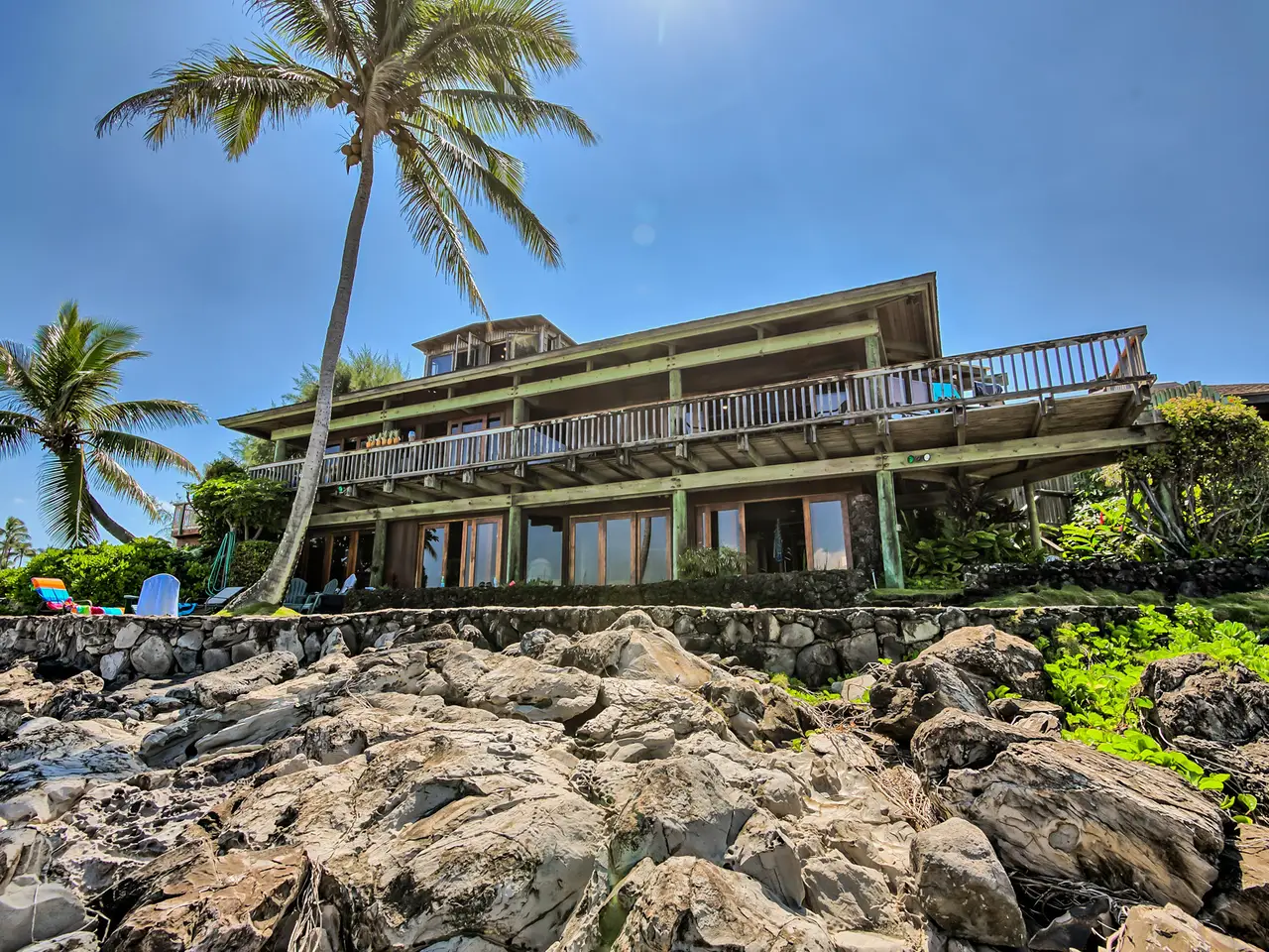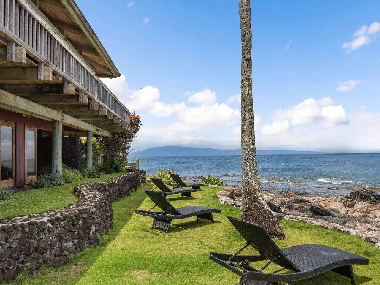 Are you ready to swim with turtles instead of mowing the lawn? The Pacific is your front yard in this artistic Polynesian pole house with ocean access and over 100 feet of dramatic ocean frontage in Napili, Maui. Located at the tip of the point in the private gated community on Papaua Place with only 10 homes and super low homeowner's fees of $500 annually. Enjoy year-round sunsets and sweeping 270 degree views from the islands of Lanai and Molokai up to Kapalua from the large wrap patio. Surfing, snorkeling with turtles, swimming and whale watching right out front, depending on the seasons. Wake up to surf views and sounds of the ocean from the primary and guest bedroom. Home designed by Frank Stiller and built in 1981 for Maui restauranteur Rob Thibaut (Duke's, Kimo's) using Hawaiian Koa wood and lava rock. This unique property includes a game room, sauna, jacuzzi and upstairs whale watching/yoga room/study. Close to world-class golf, spas, hotels, restaurants and Honolua Bay. Life doesn't get better than this! Artistic polynesian pole house!