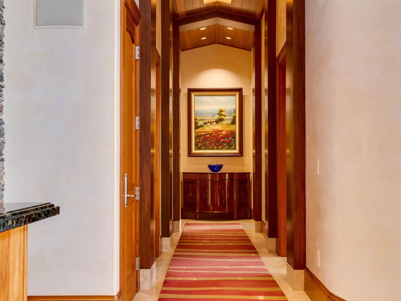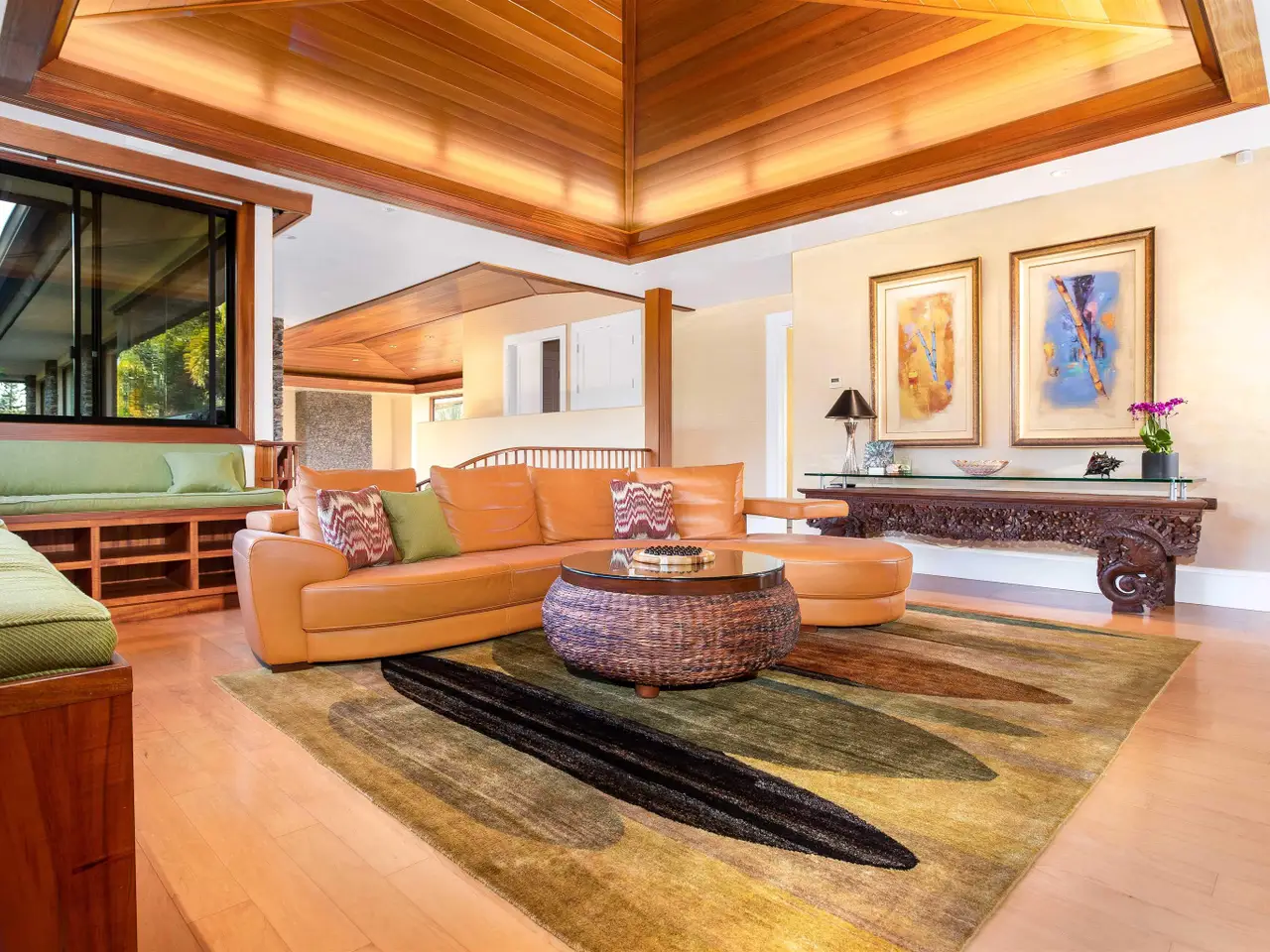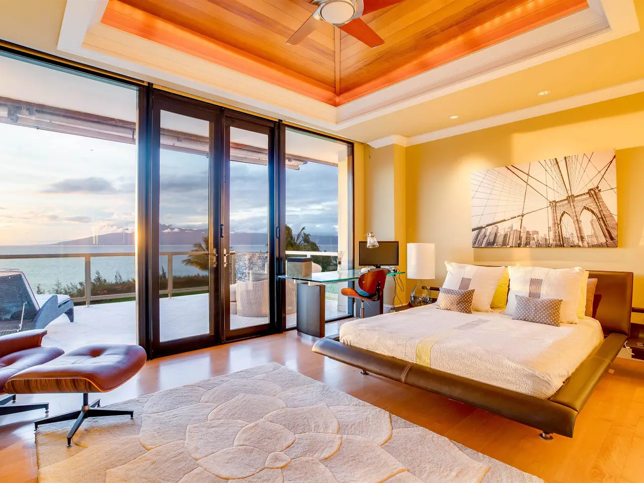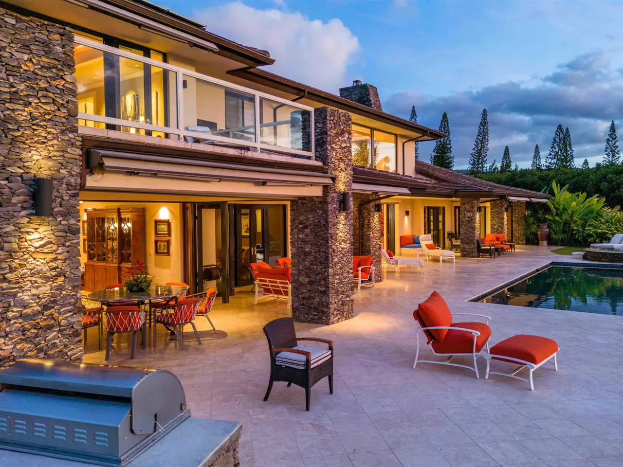 This stunning 8,252 square foot residence is situated on 2.65 beautifully landscaped acres with an additional 1.18-acre easement offering expansive ocean views. This home features 6 ensuite bedrooms with ocean vistas, including 2 on the main floor, and 1.5 well-appointed bathrooms. The interiors showcase high-quality Koa finishes, Venetian plaster walls, and custom wood and stone details, providing both elegance and comfort. Modern amenities include a Control4 automation system, Lutron lighting, a dedicated home gym, and a media room equipped with a 110" projector for an exceptional entertainment experience. Outdoor living spaces are enhanced by a saltwater pool, champagne-style hot tub, and nearly 100 yards of lush lawn, perfect for relaxation and gatherings. The property also includes a detached Ohana with 1,025 square feet of living space, featuring 2 bedrooms, 1 bathroom, a private lanai, and a three-car garage. Recent updates include refreshed interior and exterior finishes, improved landscaping, and enhanced ocean views from the dining areas. Located in Maui’s sought-after west side, this estate offers privacy, luxury, and a serene connection to the natural beauty of Kapalua.
