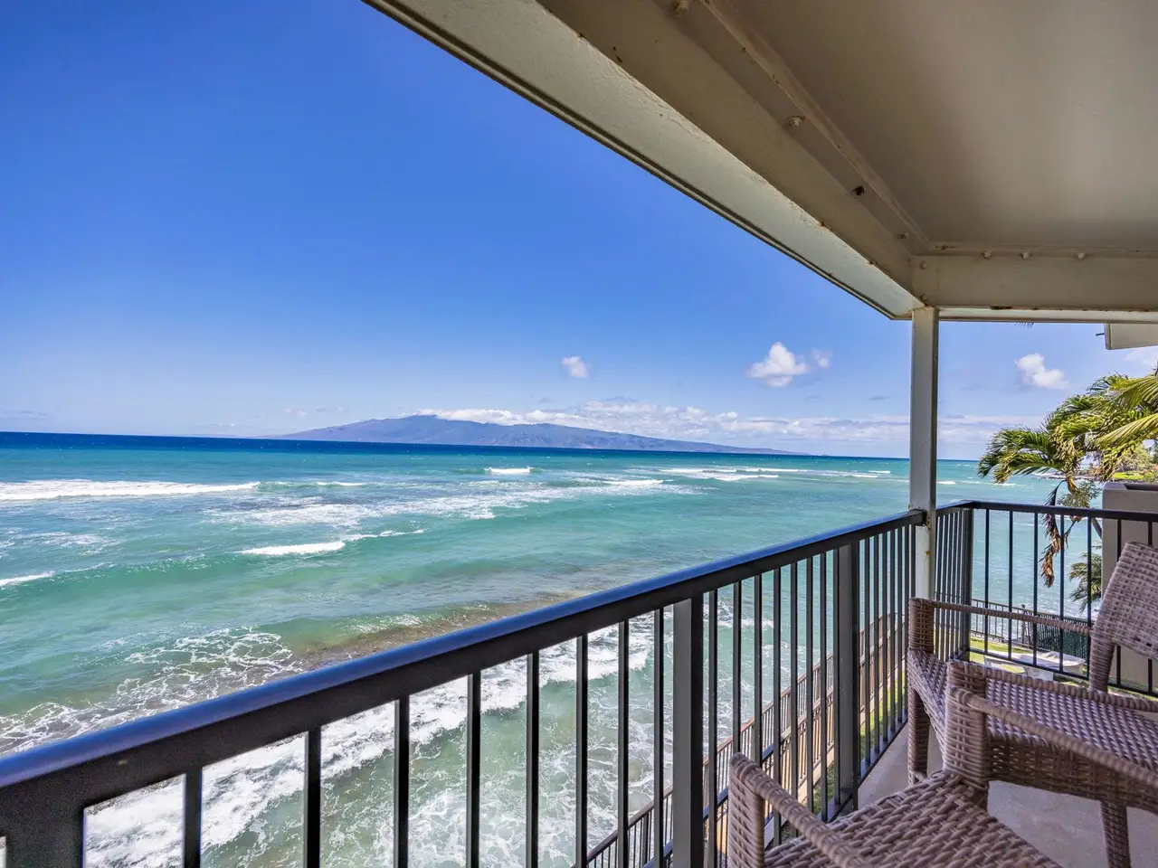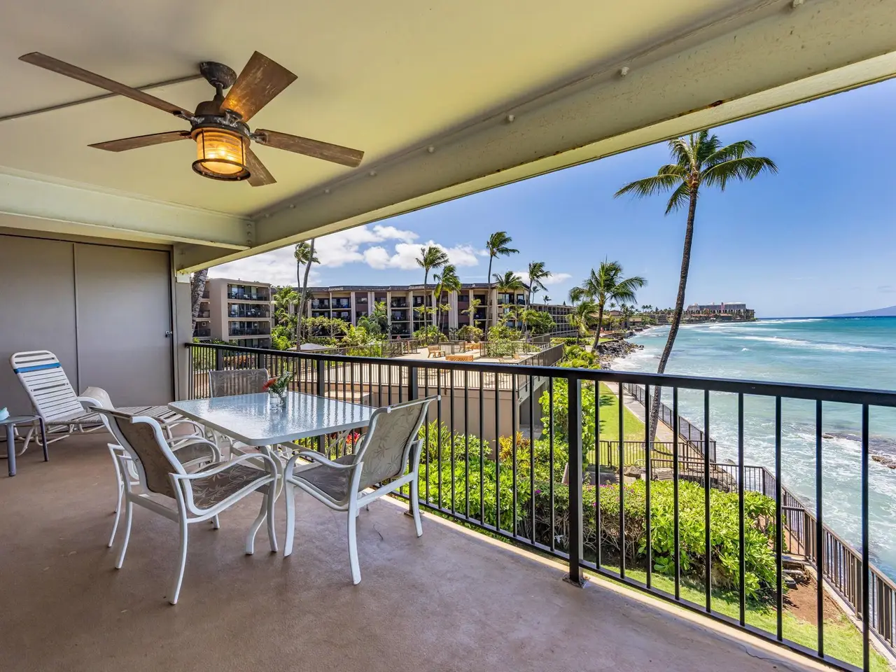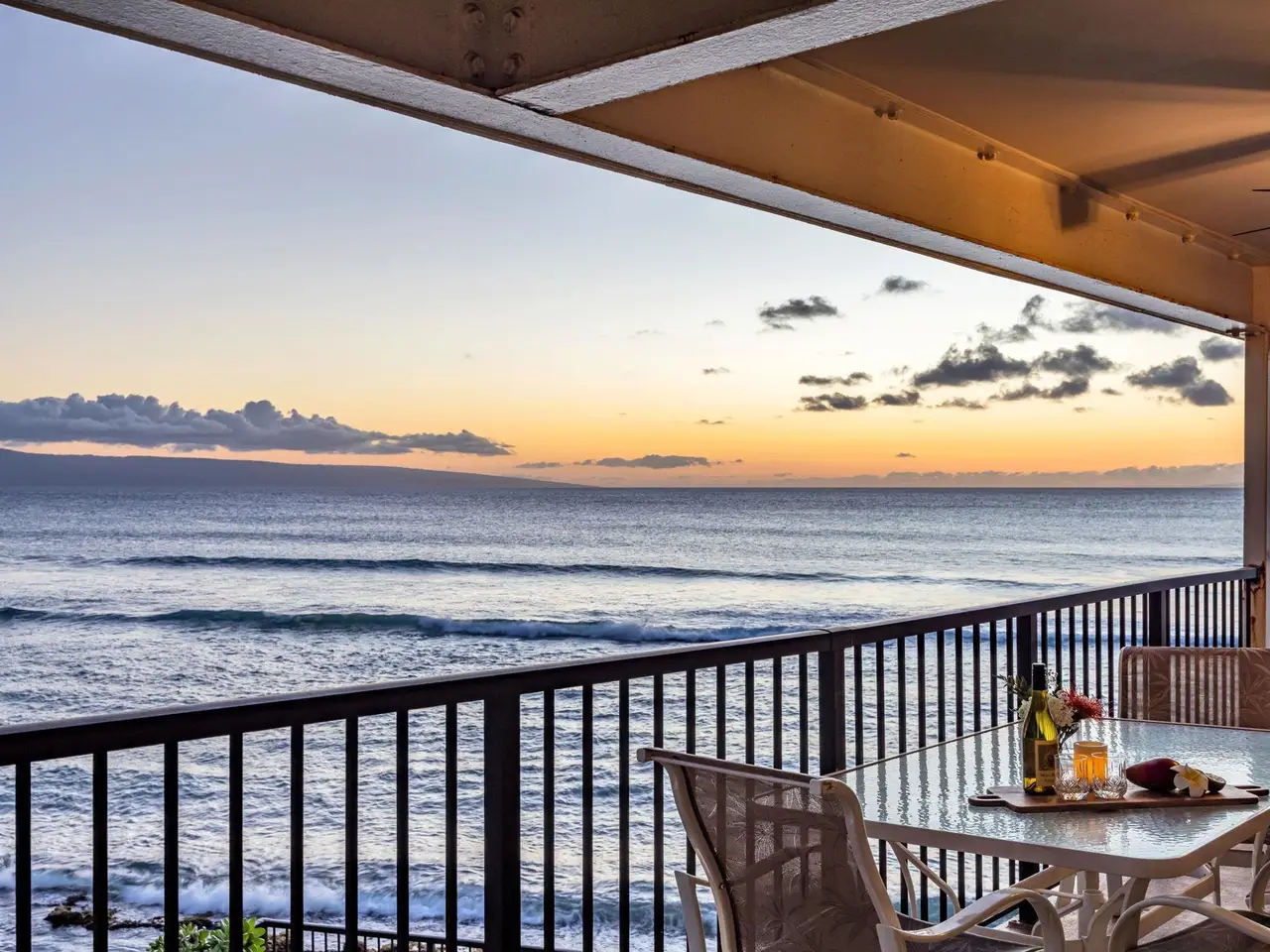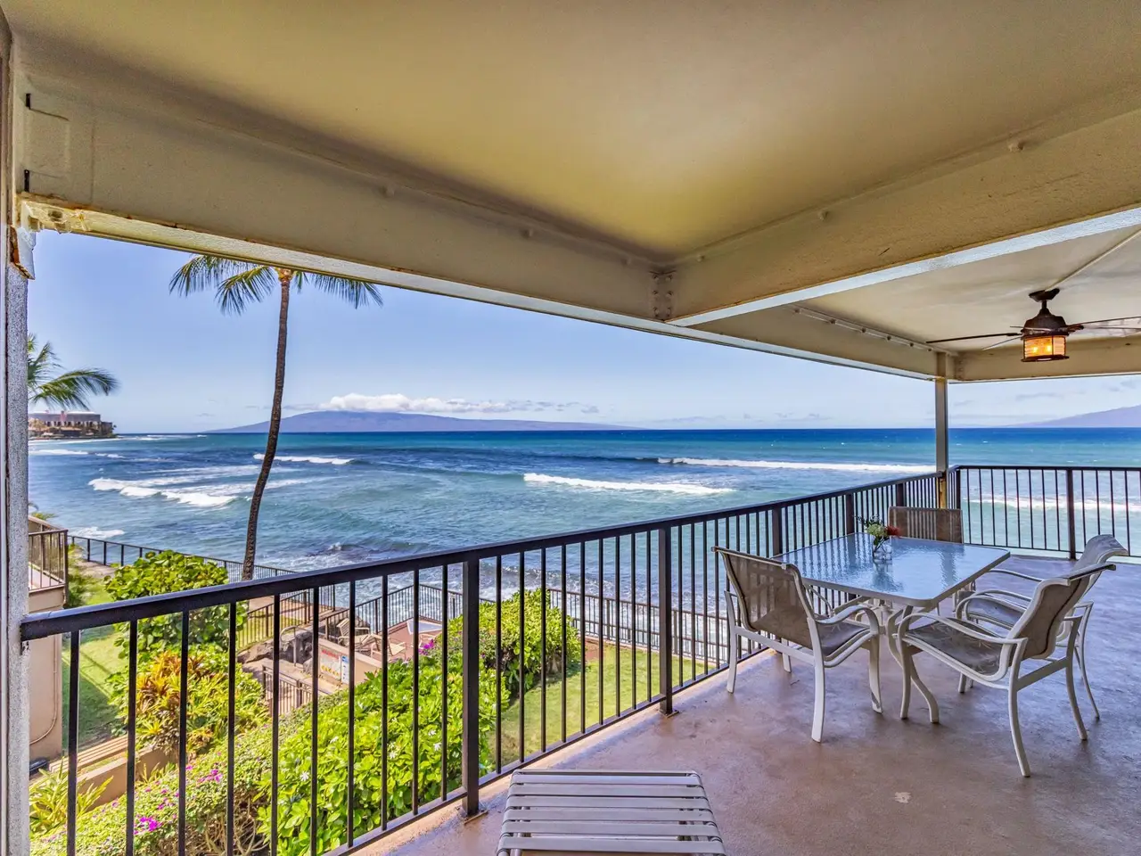 There's oceanfront, and then there's Oceanfront. This rarely available, two-bedroom two-bath oceanfront, end unit at Hale Ono Loa sits right above the beautiful blue Pacific. From your covered lanai (and almost anywhere in the unit) watch the Whales (seasonal), turtles, and dramatic Sunsets that just keep giving. Or jump in the ocean and take part, surf, SUP, snorkel or kayak, literally just steps away. Nestled in the heart of Honokowai, Hale One Loa is an oceanfront complex with all of the amenities. Lounge at the pool or on the sun deck, play shuffleboard or just enjoy the complex with a barbeque, oceanfront style. Live, rent, or lock and leave, this is a great opportunity not to be missed. Call your favorite Realtor today.