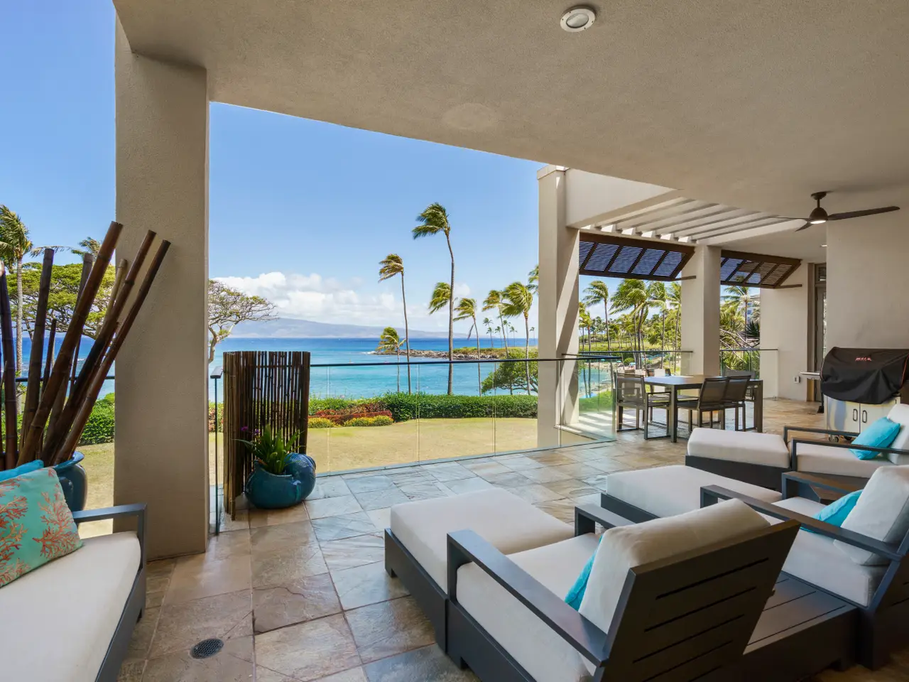 Welcome to Residence D14 at Coconut Grove Villas, a rare offering of unparalleled beachfront luxury in the heart of the world-renowned Kapalua Resort on Maui’s spectacular West Side. This 3-bedroom, 3.5-bathroom oceanfront villa spans 2,625 square feet of exquisitely designed interior living space and is located directly in front of the white sand beach of Kapalua Bay—one of Hawaii’s most celebrated beaches. Inside and out Coconut Grove D14 offers a bright and fresh, modern design aesthetic, thoughtfully curated with premium finishes, gourmet kitchen, custom cabinetry, rich wood accents, motorized window blinds, and sophisticated island-contemporary furnishings and art. The expansive open floor plan blends indoor and outdoor living seamlessly, with floor-to-ceiling sliding doors that open to your private covered lanai and lush tropical gardens—just steps from the sand. Perfectly positioned between Montage Kapalua Bay and Napili Bay. This private end-unit residence delivers intimate sensory views of the Pacific Ocean, the outer islands of Moloka‘i and West Maui’s legendary sunsets. With the gentle sounds of waves as your daily soundtrack, D14 offers an unmatched sense of tranquility, exclusivity, and luxury. Coconut Grove Villas is an exclusive gated enclave of just 36 residences on 11 meticulously landscaped acres, offering a private clubhouse, fitness center, oceanfront pool, and spa. As part of the prestigious Kapalua Resort, owners enjoy proximity to two championship golf courses, award-winning dining, hiking trails, tennis and pickleball courts, and the Kapalua Coastal Trail. Whether you’re seeking a world-class vacation home, or a permanent oceanfront residence, Coconut Grove D14 delivers the ultimate Maui lifestyle experience in one of the most coveted locations in all of Hawaii. This is beachfront living at its finest—schedule your private tour of Coconut Grove D14 today.