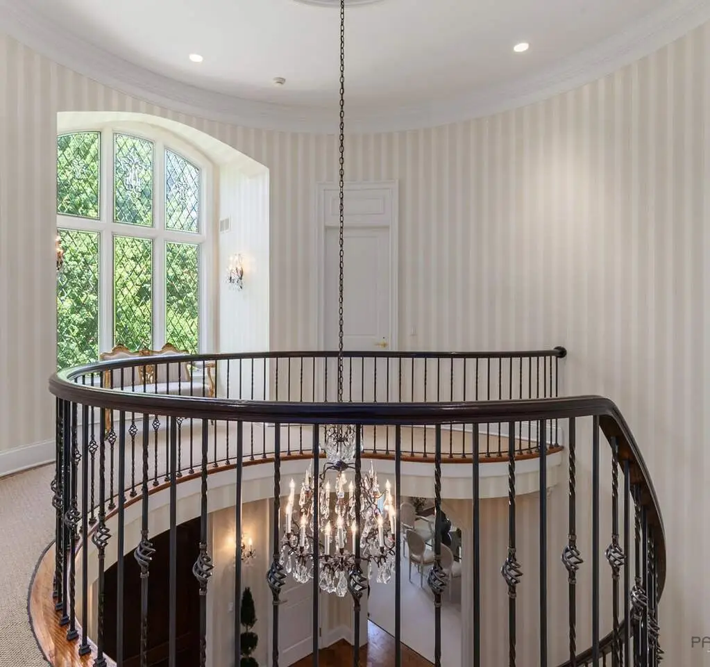 Tucked away on 1.4 pristine acres along a private lane just minutes from downtown Lake Forest, this stately French Normandy-style residence exudes timeless sophistication and exceptional craftsmanship. Custom-built in 1999 by Gene Martin, the home combines thoughtful design, solid construction, and luxurious finishes across more than 7,500 square feet of living space. The lime-washed brick facade welcomes you into a grand, two-story foyer with a sweeping staircase and herringbone oak hardwood floors. Flanking the entry, the formal living and dining rooms showcase exquisite millwork, floor-to-ceiling windows, Scalamandre window treatments, and twin gas fireplaces, creating an elegant symmetry ideal for entertaining. The de Giulio-designed kitchen is a chef's dream, featuring herringbone oak hardwood flooring, custom pine cabinetry, granite countertops, premium appliances (Viking, Sub-Zero, and Miele), a large island, and a sunlit breakfast area. Step down into the inviting family room, highlighted by a coffered ceiling, bay windows, and a stately, limestone fireplace. A handsome library with walnut built-in shelving w/ cabinets and access to a private patio provides an ideal home office. The main level also includes a spacious guest suite (or potential second primary bedroom) with a 14-foot tray ceiling, morning kitchen, and luxurious marble bath. A large, screened porch with a knotty pine, bead board ceiling and accessible via French doors from both the kitchen and family room, connects seamlessly to the bluestone patio, while the mudroom/laundry room leads to a heated 4-car garage. Upstairs, the 2nd floor landing features a wall of leaded glass panels that floods the space with light while facilitating views of the front of the property. The primary suite impresses with a 12-foot vaulted ceiling, a private balcony overlooking the grounds, a morning kitchen, an expansive walk-in closet with island, and a bonus room that can be used as a 2nd office or exercise space. The spa-like primary bath features dual vanities, a circular jetted tub, Sheryl Wagner faucetry, and a large walk-in shower. Three additional, sizable en suite bedrooms complete the second floor. The lower level offers 1,500 sq ft of finished living space and features a 2nd family room with fireplace, a game room, a full bathroom, and abundant storage. Outside, the professionally landscaped grounds feature mature trees, flowering gardens, a circular driveway, a slate roof, a sprinkler system, and multiple bluestone patios for outdoor entertaining. Perfectly located close to downtown Lake Forest, the Metra, shopping, dining, Lake Michigan, and major highways, this remarkable home blends timeless French elegance with modern comfort and convenience.