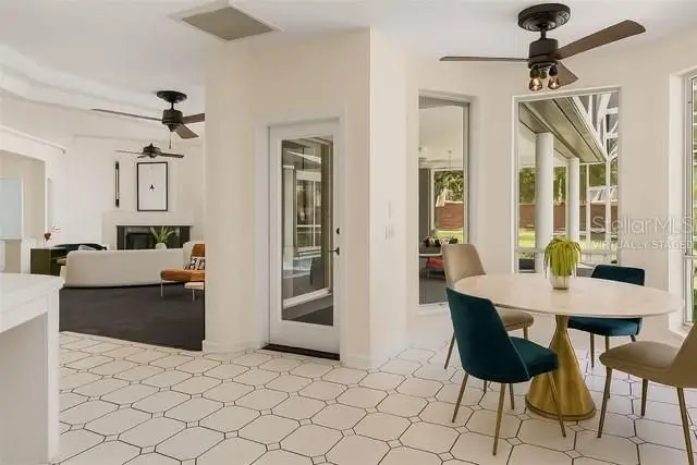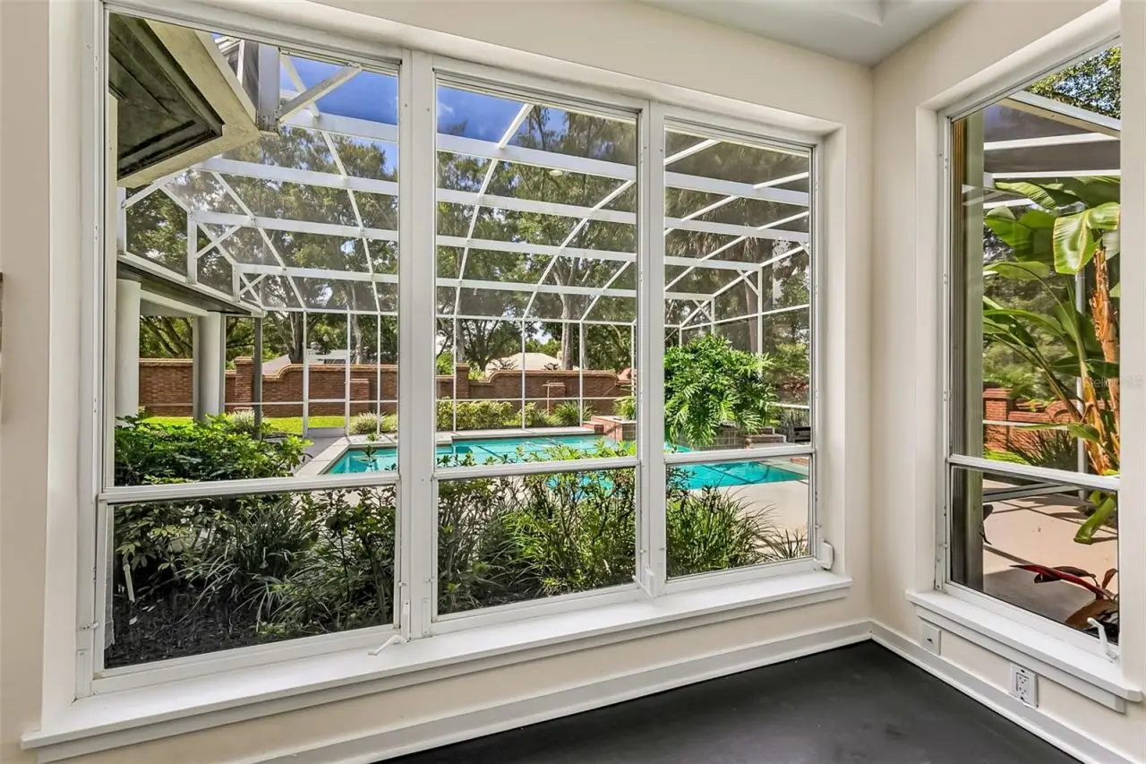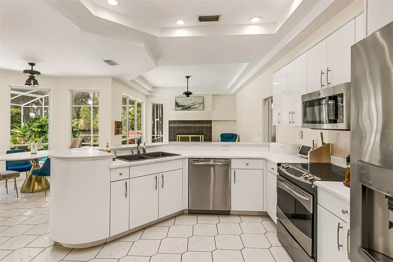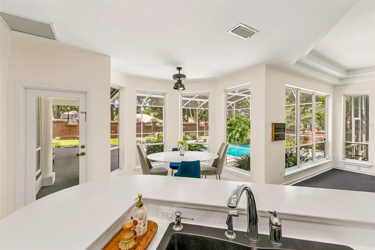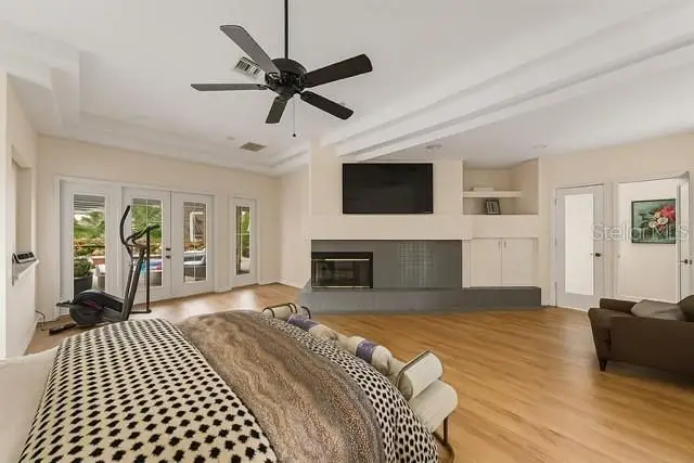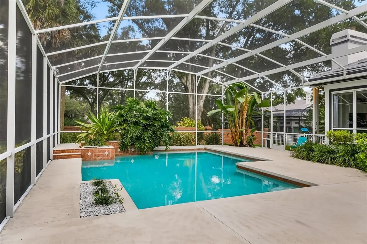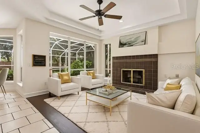 One or more photo(s) has been virtually staged. Experience refined living in Regency Green at Heathrow, one of Central Florida's most prestigious gated golf communities. This distinguished 3-bedroom, 2.5-bath residence with an upstairs bonus room showcases soaring ceilings, rich hardwood floors, and a thoughtfully designed split floor plan. The elegant primary suite offers a cozy fireplace, private lanai access, and a spa-inspired bath with dual vanities, soaking tub, walk-in shower, and expansive closet. A chef's kitchen with crisp white cabinetry flows seamlessly into the inviting family room with fireplace, while a sophisticated bar area off the foyer enhances the home's entertaining appeal. Recently painted inside and out and featuring a brand-new tile roof, this home is move-in ready with timeless style. Outdoors, the screened lanai frames a sparkling pool and a beautifully fenced yard with brick and wrought iron details, creating both charm and privacy. With three fireplaces and an enviable location just minutes from Heathrow Country Club, fine dining, and upscale shopping, this residence offers a rare opportunity to own in one of the area's most coveted enclaves.