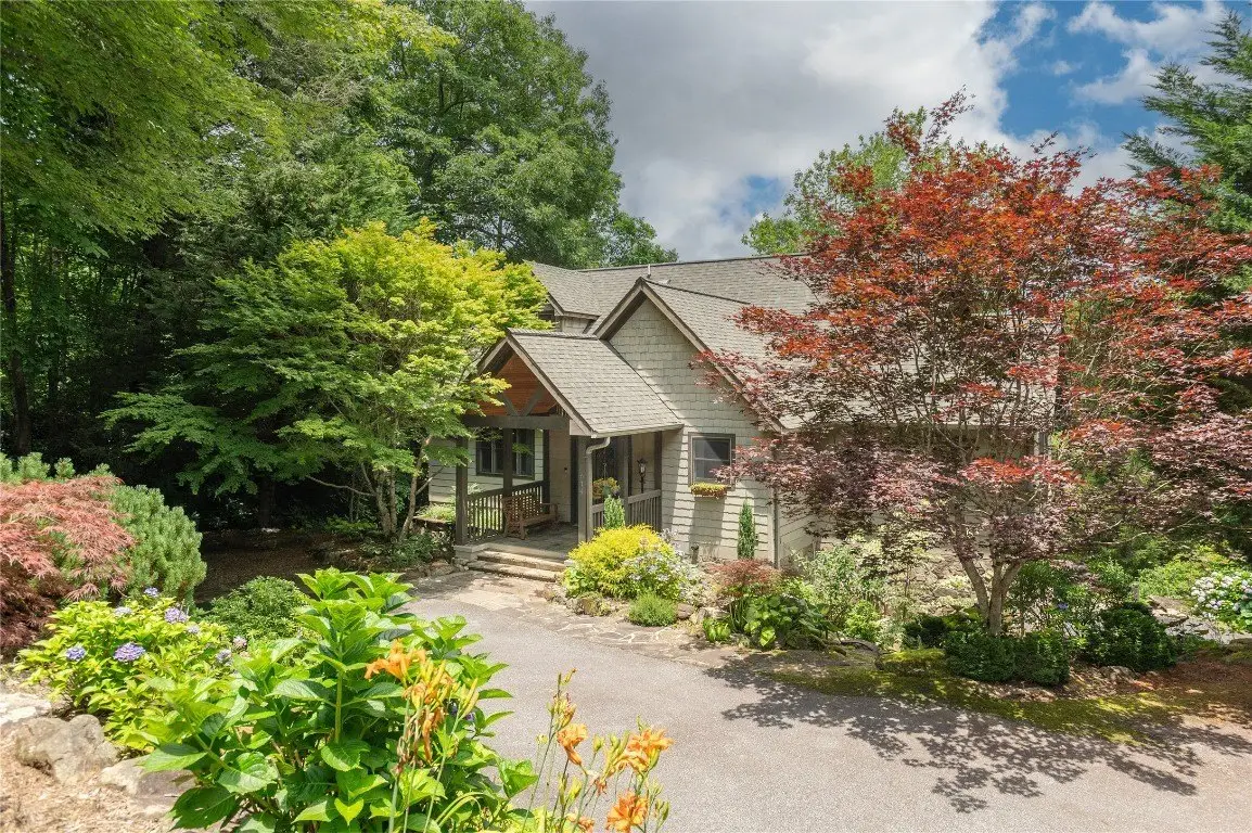 This one-of-a-kind, beautifully maintained four-bedroom, four-bathroom Arts and Crafts mountain retreat combines timeless craftsmanship with refined comfort, offering expansive golf course and mountain views from a prized location along the fifth green of the Lake Toxaway Golf Course. A private winding golf cart path leads from the home across a gentle stream and charming bridge directly onto the fairway, inviting peaceful excursions right from the backyard. The lushly landscaped entry, complete with a tranquil water feature, sets the stage for the serenity that defines this exceptional escape. Inside, custom details and quality finishes abound - a striking locust column and crown moulding as well as slate, oak, and ceramic tile flooring and a heated marble bathroom floor in the primary suite, which blends beauty and comfort. The main level features a vaulted ceiling entryway, a welcoming living room featuring a stone fireplace, an updated chef's kitchen with high-end stainless steel appliances, pot filler, ample counter space, a spacious laundry/mudroom, a comfortable guest suite, and a generous primary suite that opens to a covered Carolina porch with skylights and its own outdoor fireplace - perfect for cool evenings. Upstairs includes a private guest suite, additional living area, and a versatile bonus room. The lower level offers a cozy family room with a kitchenette and free-standing fireplace, a wine cellar, a light-filled flex room, a large guest suite, and a workshop. Outdoor spaces include open decks on both levels, a hot tub under the stars, and ample parking with a double garage - ideal for hosting family and friends. Located less than an hour from Asheville Regional Airport and close to the charming towns of Cashiers, Highlands, Sapphire, and Brevard, this home offers easy access to national forests, hiking trails, waterfalls, and endless adventure. An optional membership at Lake Toxaway Country Club provides golf, tennis, dining, fitness, pool, and private lake access. This exceptional retreat is more than a home - it's a lifestyle.