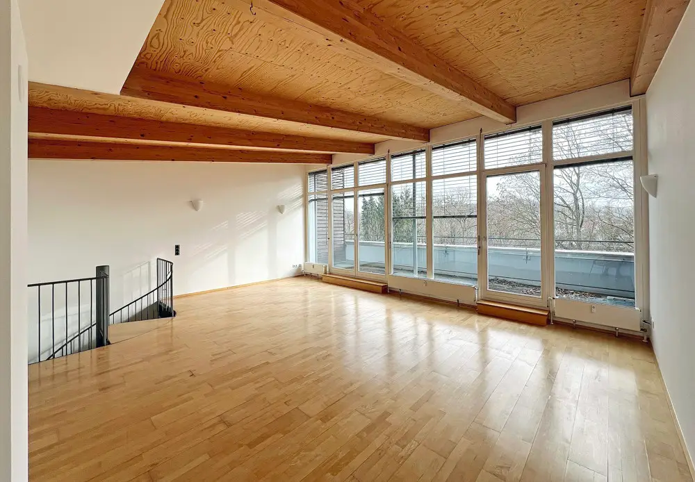 High standards? Rightly so! Central, exclusive maisonette apartment with a great view of the countryside. This two-level property for lovers is located on the second floor of a four-story low-energy building in a central location and delights its residents with its individuality. The view of the flood basin from the wonderful roof terrace and the two balconies screams for relaxation. You have to see this apartment with approx. 176 m² of living space to appreciate the unique ambience. You can reach the spacious four-room apartment via the quiet elevator or the bright staircase. We particularly like the extensive window elements, which are equipped with electric shutters and allow more or less light to flow through the spacious rooms as required. The entire apartment has attractive parquet floors and comfortable underfloor heating. The chic fitted kitchen and the excellent bathroom with an open shower, which are not lacking in luxury, also make a significant contribution to this. There is a separate toilet for your guests. The gallery invites you to be creative. Whether it's a hobby room or a home office - a lot can be done here. The building has a controlled ventilation system with heat recovery and solar air preheating via an earth duct and a glazed atrium. An efficient gas heater serves as the heating source. The house fee amounts to €542.00 per month. This special purchase opportunity includes an underground parking space and two cellar rooms. The tenants are currently moving, so the apartment will remain open until May 31st. is rented and is then ready for you to move in. If you are looking for something special and want to live in a central residential area in Landshut, you should arrange a non-binding viewing. We look forward to seeing you.