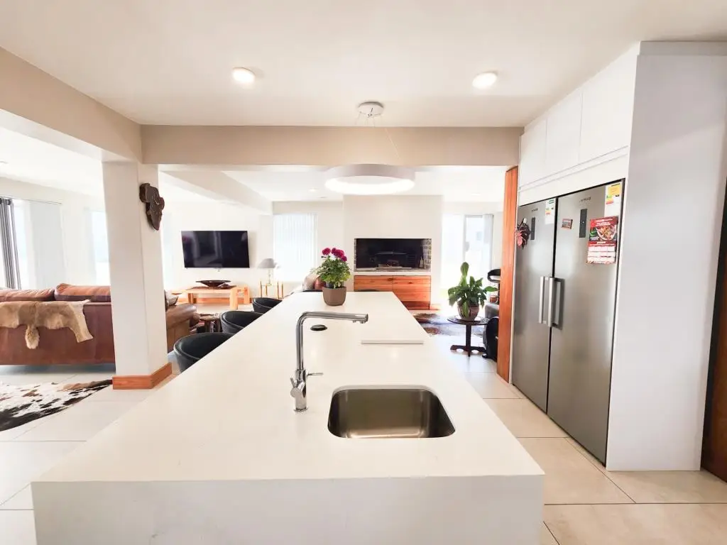 Triple-Storey Luxury Home in the Exclusive Paradise Beach Estate Shared Mandate Step into elegance and modern sophistication with this exceptional triple-storey residence, perfectly positioned in the prestigious Paradise Beach Estate. Designed for discerning buyers who appreciate fine finishes, expansive living spaces, and breathtaking ocean views, this home offers refined coastal living at its best. The home is nearly new, showcasing modern interiors, quality craftsmanship, and seamless flow throughout. A private lift and a striking staircase made from 20mm solid Saligna wood highlight the attention to detail carried through in all woodwork and skirtings. Main Living Level: The open-plan living and dining area features stacker doors that lead to a spacious patio overlooking the beachGÇöideal for entertaining. The kitchen includes a central island, ample cabinetry, a filtered tap, and a wash-up basin. It is equipped with a gas oven and hob, an electric oven, and flows into a separate scullery, pantry, and laundry wall. Two generously sized bedrooms, each with its own en-suite bathroom, are also on this level. One of the en-suites includes a gas geyser. A guest WC and wash hand basin add further convenience. Top Floor: The upper level offers two additional bedrooms and a kitchenette fitted with a small gas hob and built-in oven/microwave. Stacker doors open to a second patio with a built-in braai and panoramic views. A second built-in braai on the lower patio provides even more entertainment space. Features Throughout: All bedrooms include remote-controlled ceiling fans, TV points, and lighting Double tandem garage with workspace, toilet, WHB, storeroom, and worktop Ample visitor parking Intercom system installed Future-ready for a swimming pool and solar system (DB board and conduits in place) Flatlet: A fully self-contained one-bedroom flatlet includes its own private courtyard and a fully equipped kitchen with electric stove and hobGÇöperfect for guests or rental income. Extras: Some select furniture items are available as optional extras. This is a rare opportunity to own a beautifully appointed coastal home in one of the West CoastGÇÖs most exclusive estates, just steps from the beach. Call me for a private viewing!
