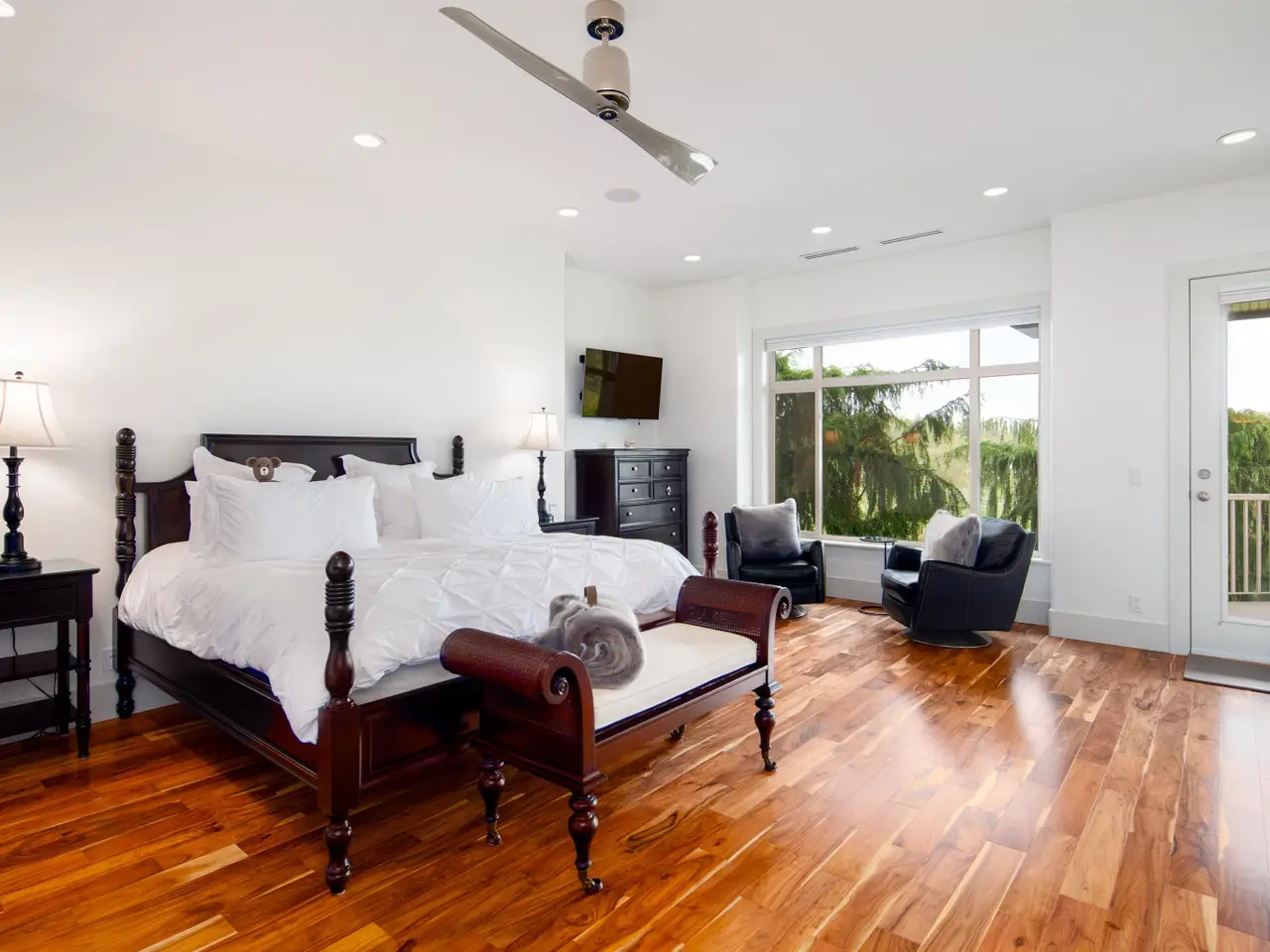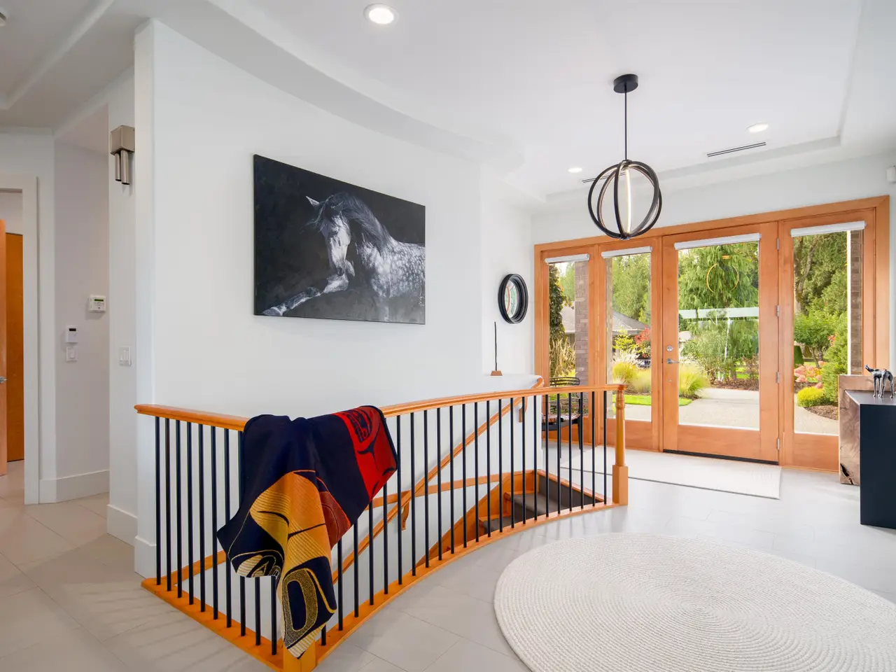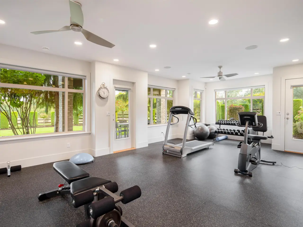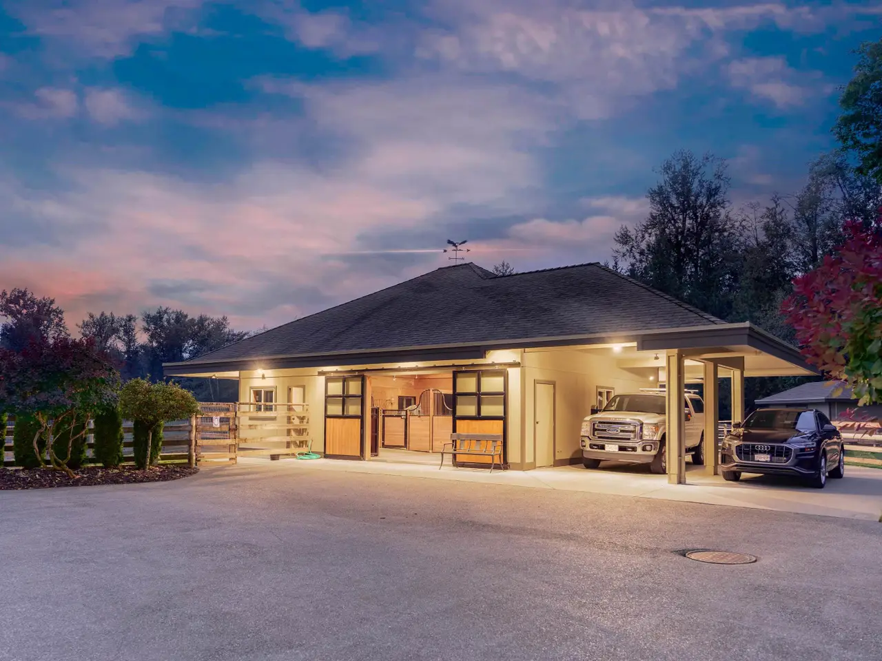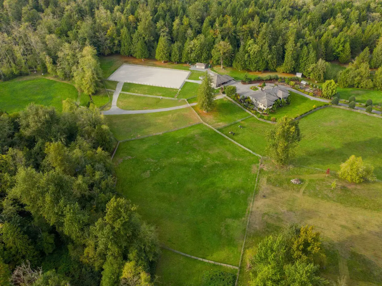 Outstanding 28.39-acre Equestrian Estate, 1000’ tree-lined commercial grade driveway with dual automated gates. Highlights include a boutique 3-stall barn, Olympic-sized outdoor arena, rolling grass pastures, and 4 km of private riding trails. The fully renovated 6412 SF, 6-bed, 6-bath home offers 10’ ceilings, two luxury kitchens, spa-inspired baths, gym, and stunning Mount Baker views. Property includes irrigated lawns, fenced paddocks, hay fields, fruit trees, and organic gardens. A rare opportunity for turnkey country living, with first class equestrian facilities.