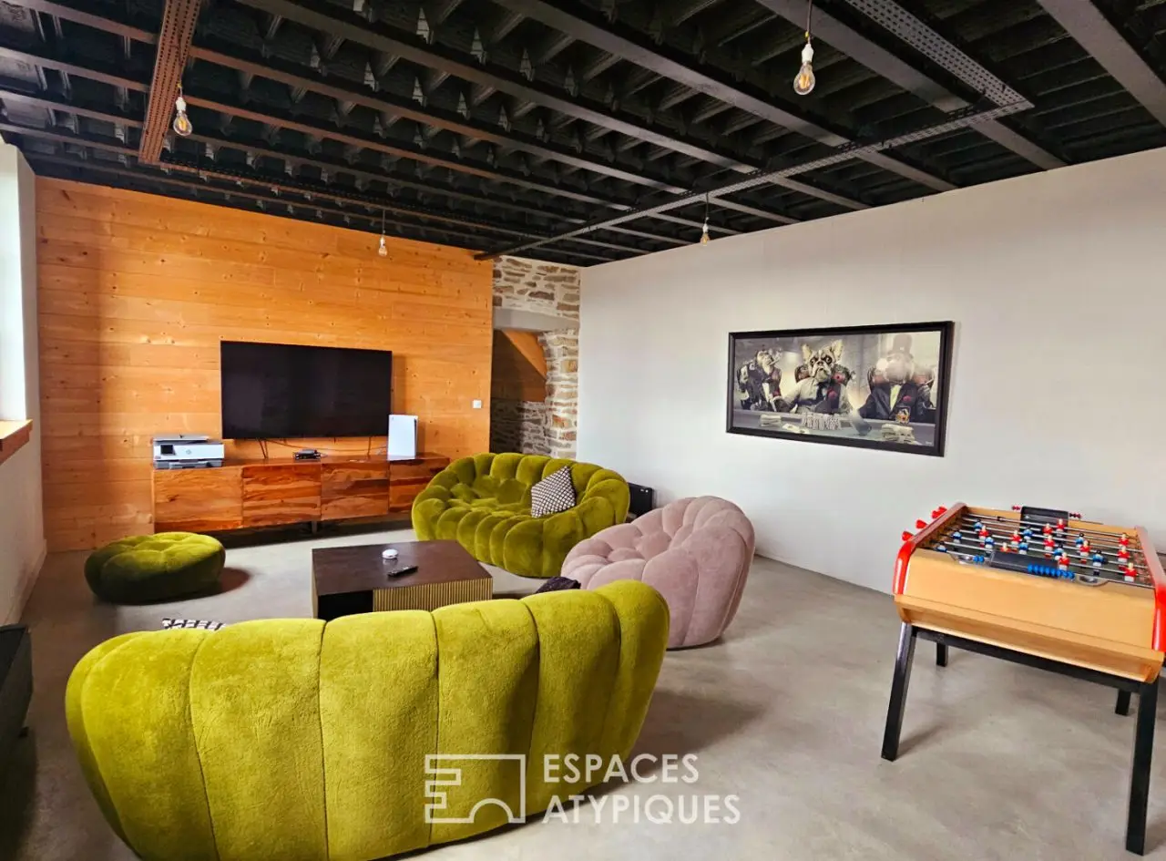 In the heart of Lannion, a few steps from shops and schools, this former stud farm dating from 1907 was completely renovated in 2019 to offer an extraordinary living environment.Behind its characterful stone facades, this 388 sqm habitable property combines authenticity and modernity, enhanced by a contemporary extension bathed in light. Built on a plot of 1,080 sqm, it seduces with its generous volumes, its noble materials and its high-end services, including a heated swimming spa and a vast terrace.The entrance opens onto a spectacular living space, where the marriage of raw materials and contemporary lines creates a unique atmosphere. The large living room of 70 sqm, extended by a cozy living room of 35 sqm, benefits from a ceiling height of 3.40 m and a huge bay window of 16 linear meters, offering a breathtaking view of the outside. A skylight accentuates the brightness and highlights the exposed stone walls and the polished concrete slabs.The open kitchen, equipped and functional, blends harmoniously into this friendly space. A gym, a spa room, a laundry room and WC complete this level providing comfort and modernity.On the first floor, a 40 sqm office, a video room, two large bedrooms with dressing room, 2 shower rooms, 2 WCsOn the second floor, two large bedrooms with dressing room and WC accommodate the night area, designed to combine privacy and elegance. Outside, the landscaped garden is a true haven of serenity. with its terrace that invites you to relaxAn outbuilding and a carport that can accommodate two vehicles bring a practical touch to this exceptional place. Located in the heart of Lannion, the property benefits from a privileged environment with all amenities accessible on foot.A rare property, combining character and modernity, ideal for a family life in search of space and comfort.ENERGY CLASS: C / CLIMATE CLASS: C Estimated average amount of annual energy expenditure for standard use, established from energy prices for the years 2021, 2022 and 2023: between EUR4,780/year and EUR6,520/year.REF. 845EACAAdditional information* 10 rooms* 4 bedrooms* 2 shower rooms* Floor : 2* 2 floors in the building* Outdoor space : 1068 SQM* Property tax : 4 489 €Energy Performance CertificatePrimary energy consumptionc : 173 kWh/m2.yearHigh performance housing*A*B*173kWh/m2.yearC*D*E*F*GExtremely poor housing performanceEstimated average annual energy costs for standard use, indexed to specific years 2021, 2022, 2023 : between 4780 € and 6520 € Subscription IncludedAgency feesThe fees include VAT and are payable by the vendorMediatorMediation Franchise-Consommateurswww.mediation-franchise.com29 Boulevard de Courcelles 75008 ParisInformation on the risks to which this property is exposed is available on the Geohazards website : www.georisques.gouv.fr
