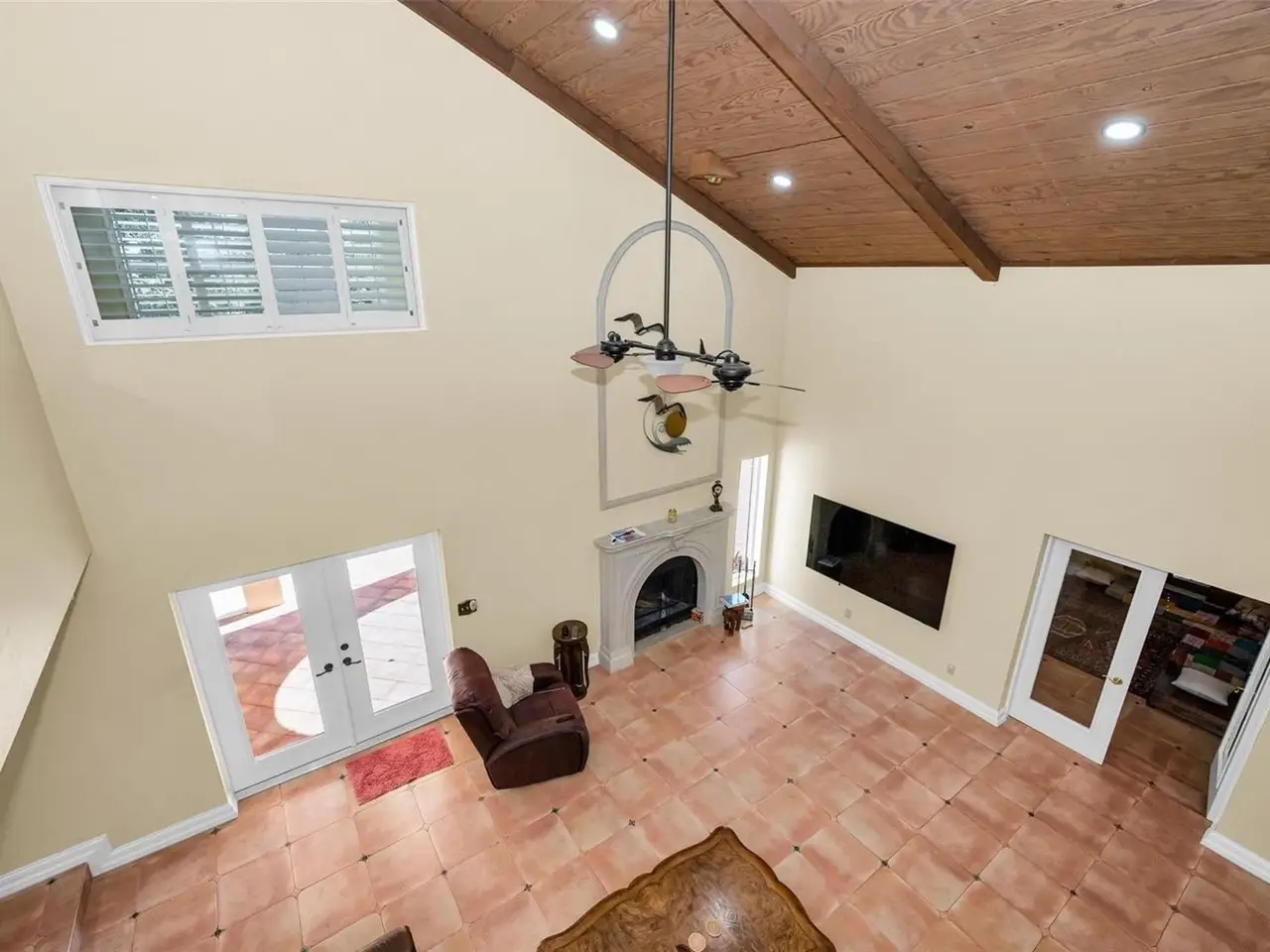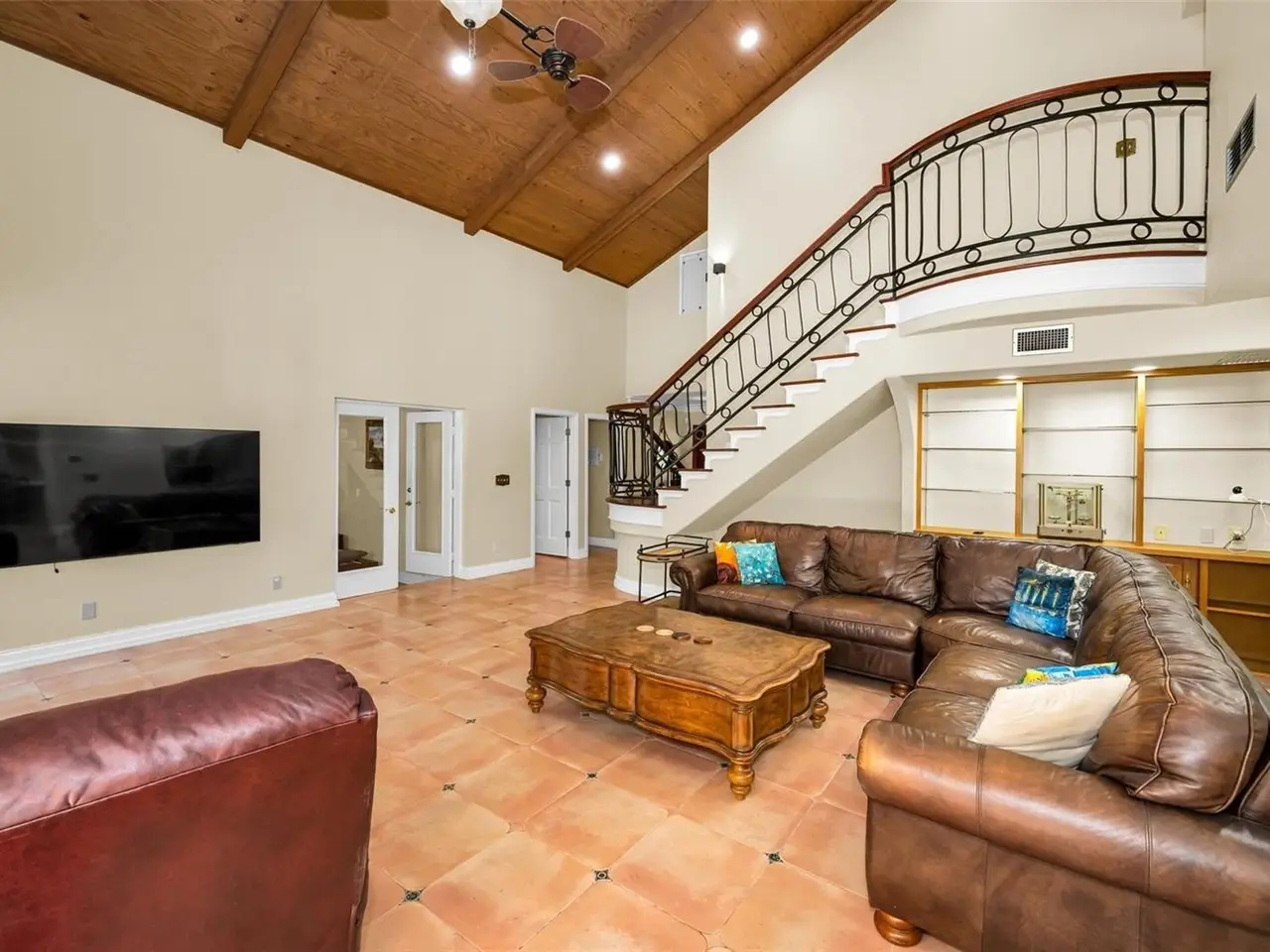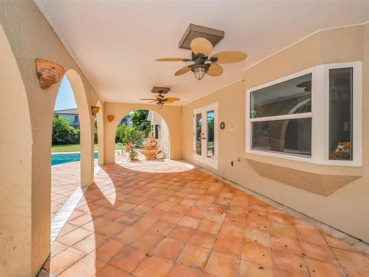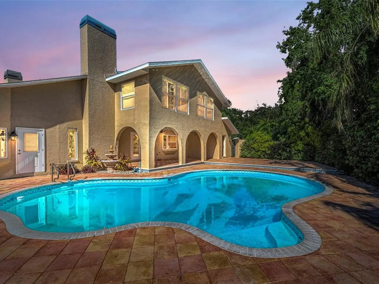 Timeless Mediterranean Revival Estate with Resort-Style Pool Oasis on Over Half an Acre in Prestigious Carlton Estates. Step into a world of enduring elegance with this captivating two-story Mediterranean style pool home, where architectural splendor meets elevated leisure and family-friendly luxury. Nestled on more than half an acre in one of Pinellas County’s most sought-after enclaves, this exceptional residence offers over 3,800 square feet of exquisitely designed living space. Inside, authentic character abounds, from rich Saltillo tile floors and arched doorways to bay windows, wrought iron railings, and soaring beamed ceilings that crown the interiors with timeless charm. A brand-new roof and updated windows and doors throughout ensure peace of mind and modern comfort. From the moment you enter, bold Tuscan-style tile flooring sets a tone of European permanence. The main level unfolds with expansive, interconnected living spaces, including a formal living and dining room that exudes warmth and sophistication—perfect for elegant entertaining or intimate evenings. At the heart of the home lies a grand, light-filled family room, where two-story vaulted ceilings and exposed wood beams evoke the rustic romance of a Spanish mission. Anchoring the space is a striking wood-burning fireplace, casting a cozy glow across gatherings large or small. The adjacent chef’s kitchen is a seamless extension of the living space, featuring a central island and open sightlines that keep the cook connected to the conversation. A sunlit breakfast nook with a bay window offers the ideal setting for casual meals and morning coffee with a view. Thoughtfully designed for flexibility, the main floor also includes a secluded office retreat with a beamed ceiling and a generously sized bedroom with an adjacent full bath—perfect for guests, multigenerational living, or a private sanctuary. A sweeping staircase of wood and wrought iron leads to the upper level, where three generously sized bedrooms and a sunlit, multi-purpose bonus room span the second floor. The expansive primary suite is a true retreat, complete with a dramatic stone fireplace and a private veranda for quiet moments under the stars. Outdoors, the Mediterranean lifestyle comes to life. A sprawling covered lanai with paver flooring and elegant arched breezeways opens to a park-like backyard, where mature landscaping surrounds a large, sparkling inground pool. Whether hosting alfresco soirées or enjoying tranquil afternoons in the sun, this outdoor oasis is designed for seamless indoor-outdoor living. This is more than a home, it’s a statement of style, serenity, and sophistication. With four bedrooms, 4 baths, a resort-style backyard & pool, and over half an acre in one of Pinellas County’s finest neighborhoods, this home checks every box. Don’t miss your chance to experience the elegance and ease of Carlton Estates living! Experience the European charm and refined design for yourself.