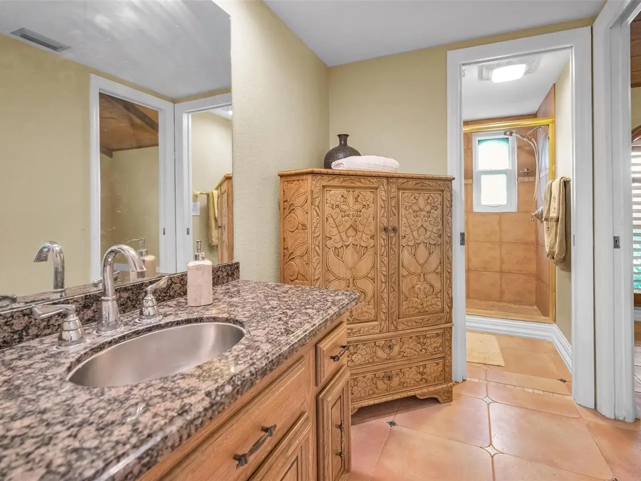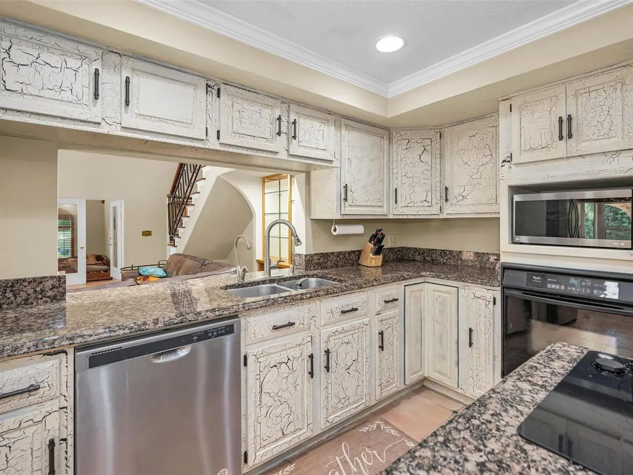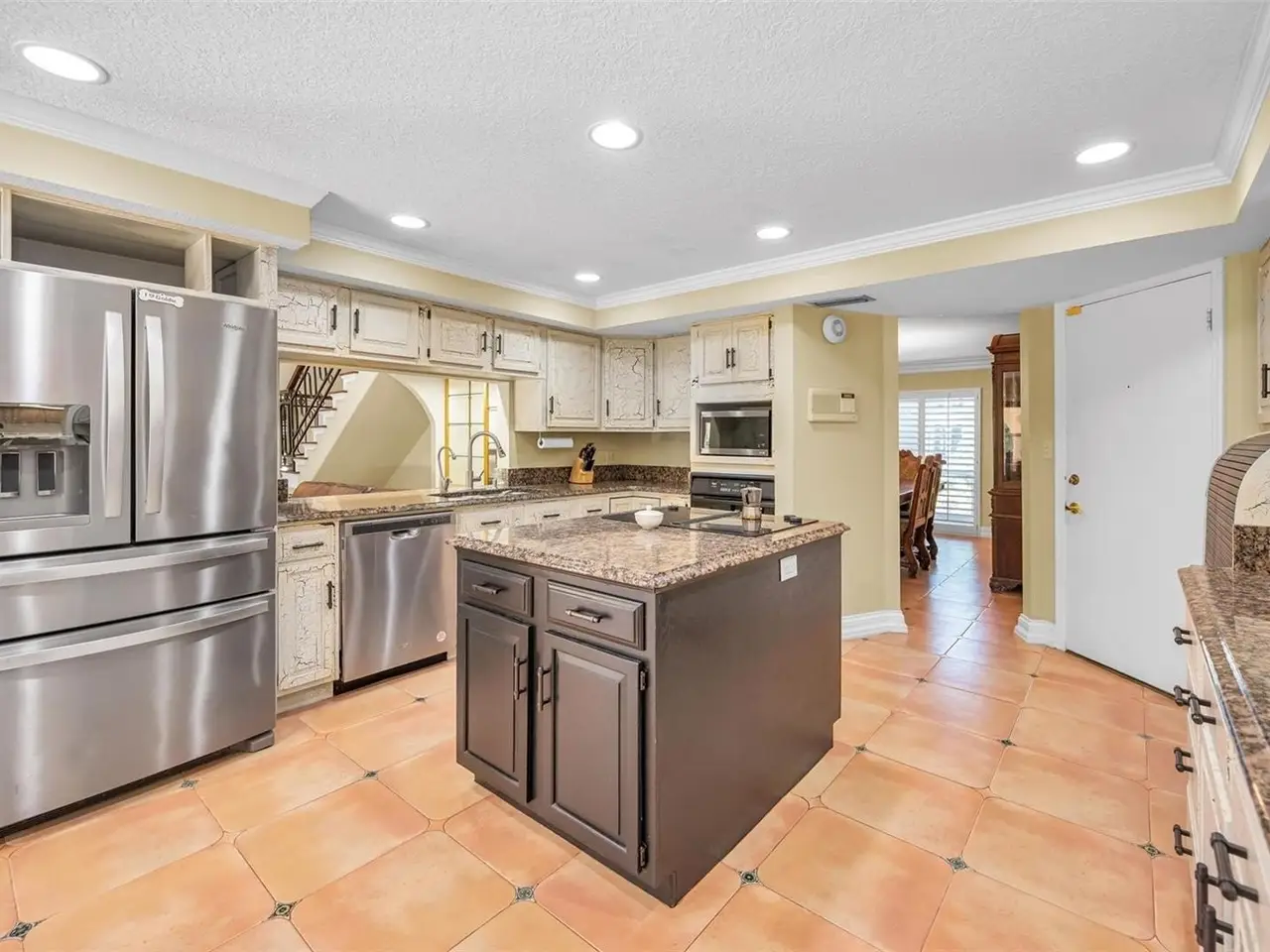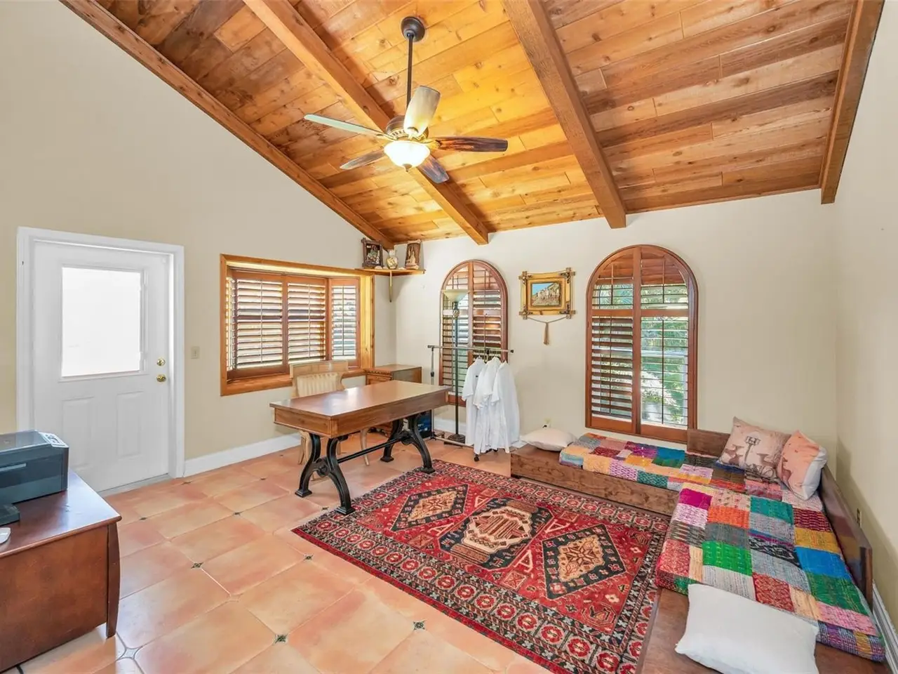 Timeless Mediterranean Revival Estate with Resort-Style Pool Oasis on Over Half an Acre in Prestigious Carlton Estates. Step into a world of enduring elegance with this captivating two-story Mediterranean style pool home, where architectural splendor meets elevated leisure and family-friendly luxury. Nestled on more than half an acre in one of Pinellas County’s most sought-after enclaves, this exceptional residence offers over 3,800 square feet of exquisitely designed living space. Inside, authentic character abounds, from rich Saltillo tile floors and arched doorways to bay windows, wrought iron railings, and soaring beamed ceilings that crown the interiors with timeless charm. A brand-new roof and updated windows and doors throughout ensure peace of mind and modern comfort. From the moment you enter, bold Tuscan-style tile flooring sets a tone of European permanence. The main level unfolds with expansive, interconnected living spaces, including a formal living and dining room that exudes warmth and sophistication—perfect for elegant entertaining or intimate evenings. At the heart of the home lies a grand, light-filled family room, where two-story vaulted ceilings and exposed wood beams evoke the rustic romance of a Spanish mission. Anchoring the space is a striking wood-burning fireplace, casting a cozy glow across gatherings large or small. The adjacent chef’s kitchen is a seamless extension of the living space, featuring a central island and open sightlines that keep the cook connected to the conversation. A sunlit breakfast nook with a bay window offers the ideal setting for casual meals and morning coffee with a view. Thoughtfully designed for flexibility, the main floor also includes a secluded office retreat with a beamed ceiling and a generously sized bedroom with an adjacent full bath—perfect for guests, multigenerational living, or a private sanctuary. A sweeping staircase of wood and wrought iron leads to the upper level, where three generously sized bedrooms and a sunlit, multi-purpose bonus room span the second floor. The expansive primary suite is a true retreat, complete with a dramatic stone fireplace and a private veranda for quiet moments under the stars. Outdoors, the Mediterranean lifestyle comes to life. A sprawling covered lanai with paver flooring and elegant arched breezeways opens to a park-like backyard, where mature landscaping surrounds a large, sparkling inground pool. Whether hosting alfresco soirées or enjoying tranquil afternoons in the sun, this outdoor oasis is designed for seamless indoor-outdoor living. This is more than a home, it’s a statement of style, serenity, and sophistication. With four bedrooms, 4 baths, a resort-style backyard & pool, and over half an acre in one of Pinellas County’s finest neighborhoods, this home checks every box. Don’t miss your chance to experience the elegance and ease of Carlton Estates living! Experience the European charm and refined design for yourself.