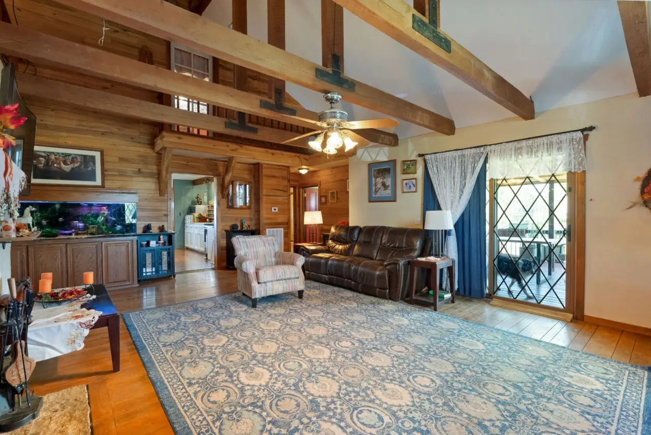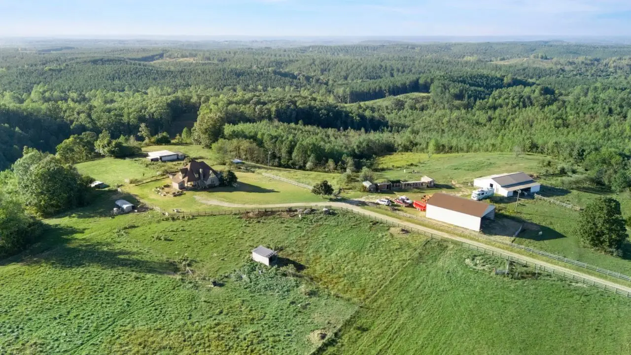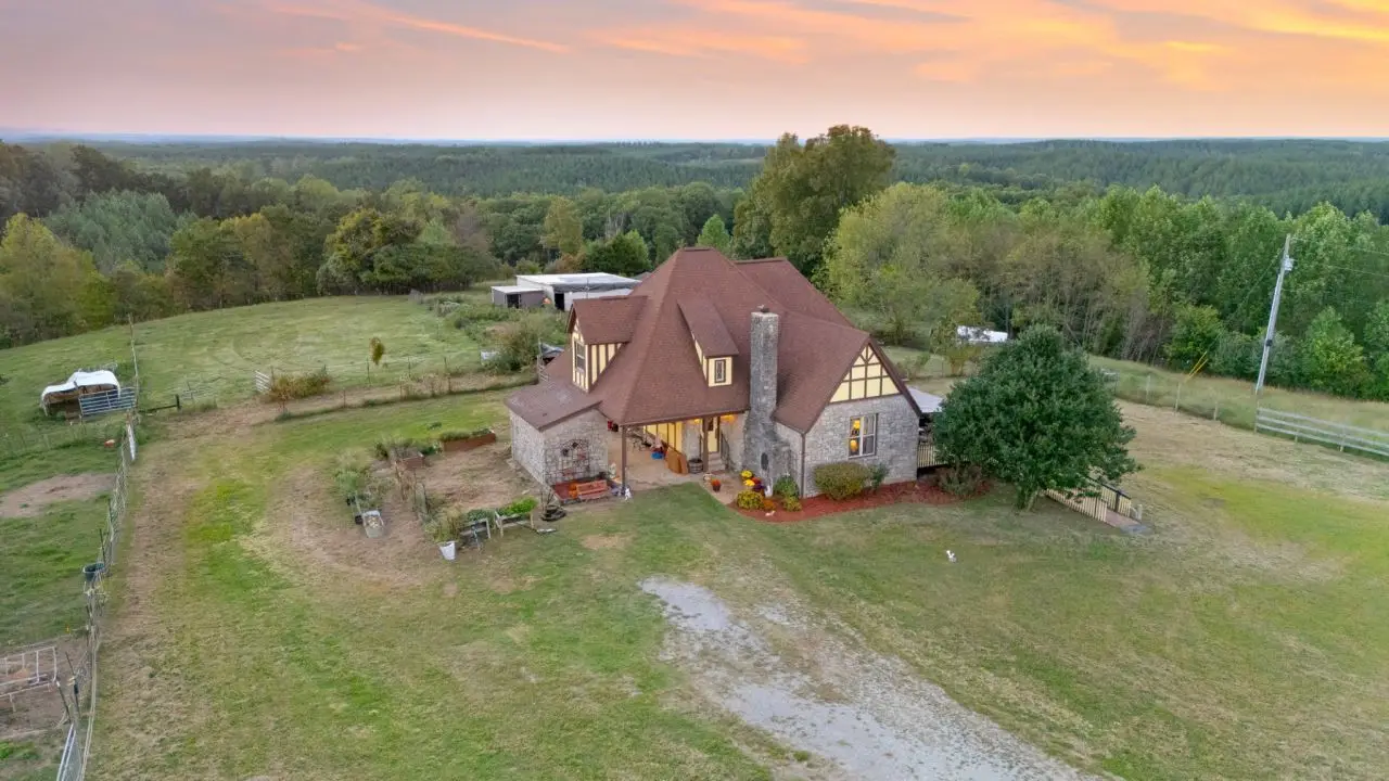 First time on market since 2005! Expansive 60-acre English Tudor country estate in Wayne County's prime agricultural corridor. The property adjoins 5,000 acres of leased hunting ground with horseback trails available in the off season, ensuring unmatched outdoor recreation and privacy. Only 4.5 miles off Route 64, this farm sits in the heart of Tennessee's thriving livestock region-ranked 5th statewide for beef and 6th for corn-offering authentic rural living with modern conveniences. The electric gated entrance leads to a Tudor-style home featuring an updated kitchen with granite counters, built-in cabinets, fresh windows, newer furnaces, and a 2023 water heater. Renovated upstairs bath and Hardy board/Trex exterior accents complete the improvements. Agricultural infrastructure includes a 30x60 horse barn with 8 stalls, fly spray system, washing stall with raised tub for horses or dogs, and concrete floors, plus an impressive 40x60 hay barn with added height for rolled storage. A lambing shed, multiple chicken coops (covered and open-air), and an air-conditioned workshop add farming versatility. Two wells ensure reliable supply, with a spring-fed pond that has NEVER run dry-crucial for livestock. Established herb, strawberry, and vegetable gardens offer fresh produce. Land features a mix of open pasture, woods, and cultivated ground, plus repaired fencing throughout. Located on scenic Buttermilk Ridge Road near the Natchez Trace Parkway, this property blends rural tranquility with easy access to amenities. Ideal for horses, cattle, hobby farming, or anyone seeking authentic country living-move-in ready, and priced to reflect its working farm condition rather than pristine suburban standards.