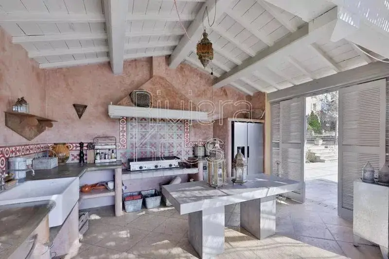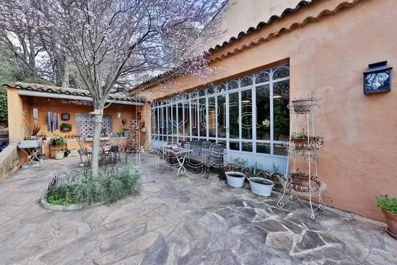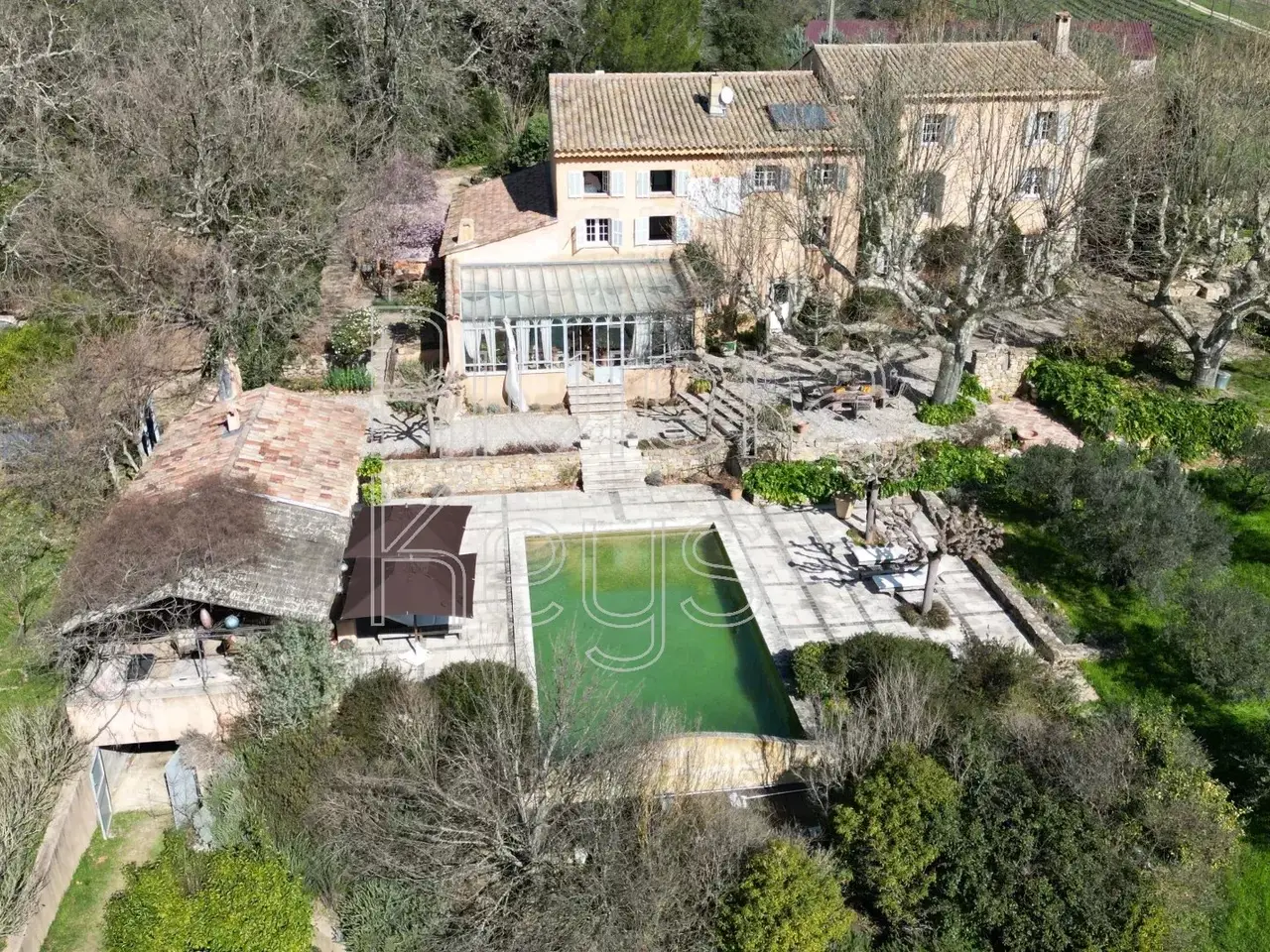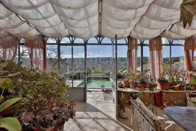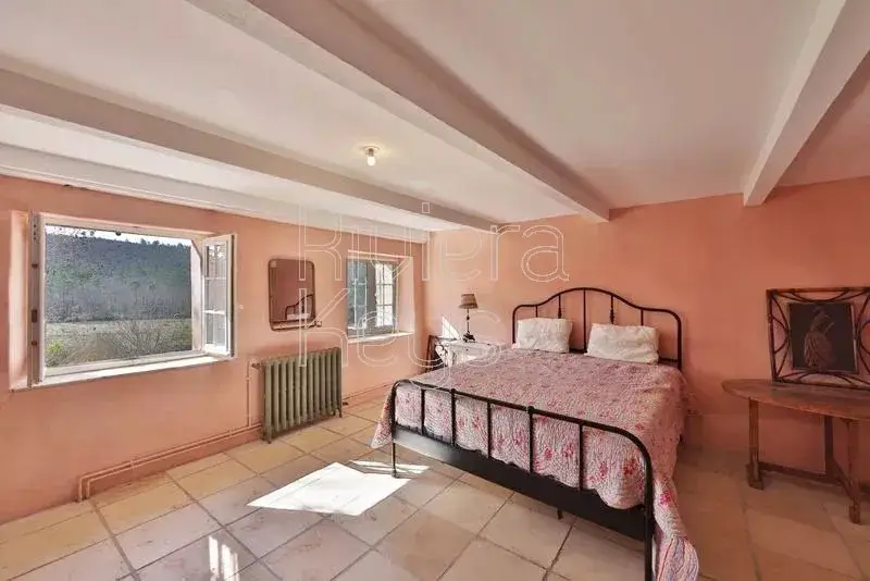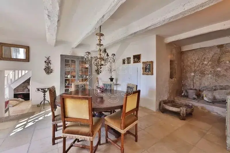 This characterful stone bastide, dating back to the early 18th century, is nestled in a peaceful setting, surrounded by vineyards and forests in the heart of Green Provence. It is located near the medieval village of Le Val, known for its historic sites, and just 45 minutes from the beautiful city of Aix-en-Provence. The property has been lovingly restored with high-quality materials to preserve its authenticity and charm, offering 500 m² of living space. The bright and spacious entrance hall leads to an elegant dining room with a large wine cellar, a beautifully decorated living room with a stone fireplace, and a generous kitchen featuring a fireplace, a stone sink, an Aga range cooker, and custom-made cabinetry. The kitchen opens onto a stunning winter garden, perfect for cooler days. A large utility room and a workshop with a wood-burning stove complete the ground floor. Upstairs, in the east wing, you’ll find a vast master suite with a luxurious ensuite bathroom featuring a free-standing bathtub and a dressing room. On the second floor, there is a guest bedroom with a shower and WC, as well as a library/TV lounge and an office with magnificent custom-made bookcases. The west wing includes a spacious double bedroom with a shower and WC, along with a separate apartment tucked under the eaves, comprising an open-plan kitchen, a living room, a bedroom, and a shower room with WC. The apartment has its own private entrance. The estate spans over a hectare of lush land bordered by a river, featuring a beautiful stone swimming pool surrounded by inviting terraces and a large Moroccan-style summer kitchen. There is also an aromatic garden with a pond, a vegetable garden, several olive and fruit trees, as well as centuries-old plane and oak trees. A true haven of peace and tranquillity in Provence.