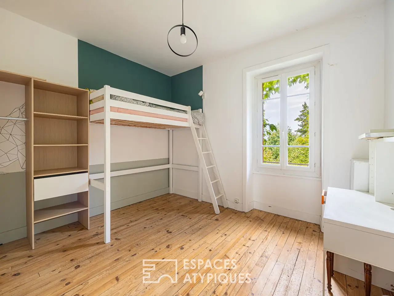 Just a 15-minute walk from the charming village of Lentilly and a two-minute drive from the train station (serving Lyon), this 273sqm family home captivates with its authenticity and generous volumes. Upon entering, a vast hall leads to the living spaces. In the living room, a period fireplace and a breathtaking view of the garden pond provide a setting worthy of a tableau vivant. In the kitchen, a large dining area invites convivial meals with family or friends. The upper floor houses five bedrooms, including a master suite, two bathrooms, two toilets, and a separate room with multiple uses: games room, teleworking space, or even a gym. Carefully renovated, the house combines old-world charm with contemporary comfort. Its remarkably spacious rooms, bathed in light, exude a warm and welcoming atmosphere. Located on a landscaped plot of 2400sqm, it allows you to enjoy several atmospheres according to your desires. There is also a garage, a laundry room, and storage space. A rare property where practicality, elegance, and conviviality blend perfectly, in the heart of a dynamic village in the west of Lyon, with shops, schools, and restaurants. Contact - Nina: 06 63 64 85 63REF. 12503Additional information* 8 rooms* 5 bedrooms* 2 bathrooms* 1 bathroom* Outdoor space : 2450 SQM* Property tax : 1 394 €Energy Performance CertificateEPC : 184 kWhEP/m2.year* A 450GHG : 40 kgeqCO2/m2.year* A 80Agency fees The fees include VAT and are payable by the vendorMediatorMediation Franchise-Consommateurswww.mediation-franchise.com29 Boulevard de Courcelles 75008 ParisInformation on the risks to which this property is exposed is available on the Geohazards website : www.georisques.gouv.fr