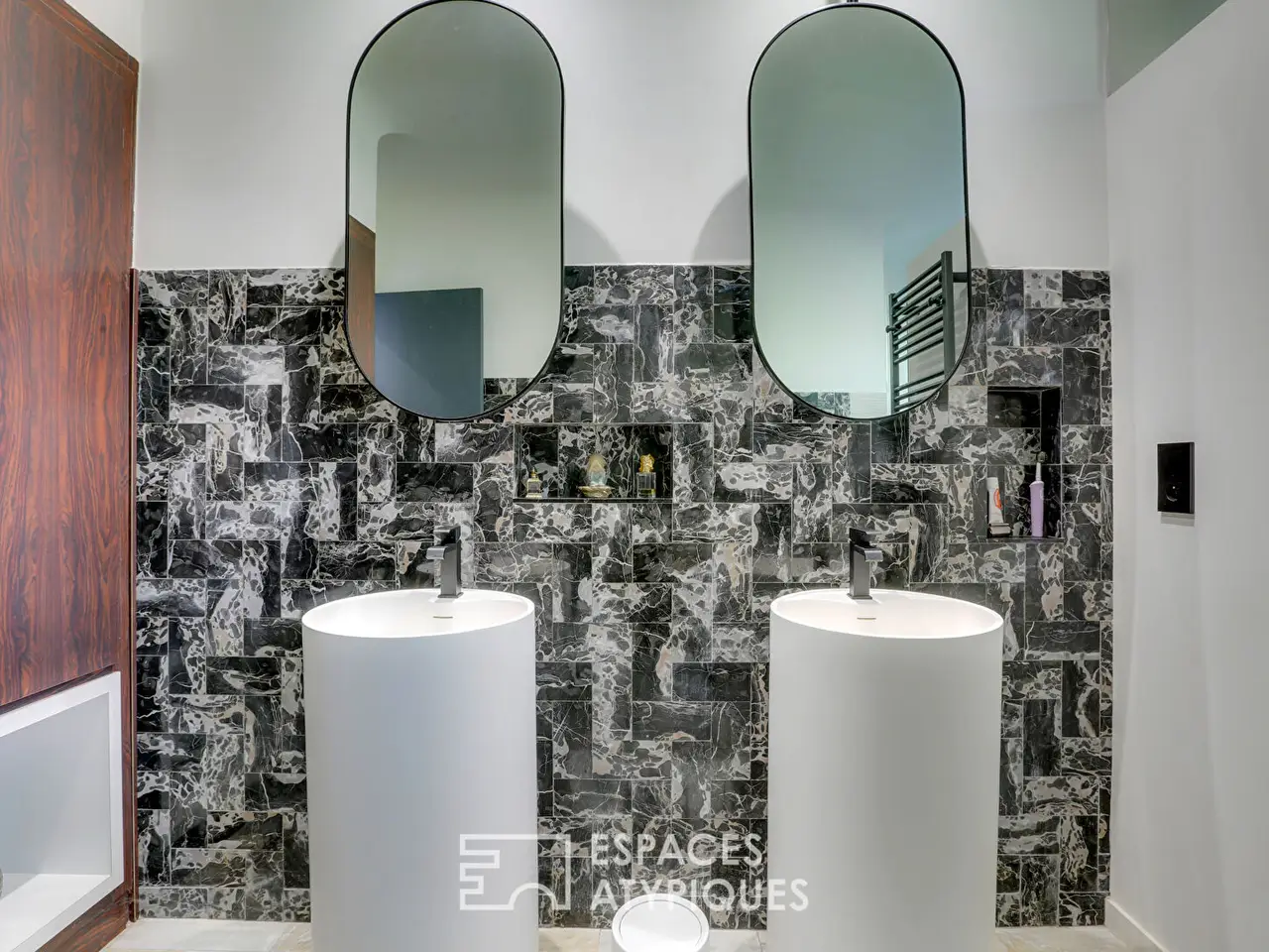 In a peaceful setting, close to Lake Leon, this 1960s house underwent a complete renovation in 2023, orchestrated by an architect. Built on one level on a landscaped plot of over 2,300 sqm, it benefits from a preserved environment thanks to the presence of adjoining natural areas. The facade with its retro-chic charm and its ornate front door announce the unique character of the place, combining contemporary elegance and living comfort. The entrance leads to a vast living room bathed in light, organized around a welcoming lounge with a stone fireplace, and a generous dining area. The clean lines and the choice of soft colors create a refined atmosphere. The custom-made kitchen, with its resolutely modern design, is thought out down to the smallest detail to combine elegance and functionality. It is distinguished by its textured matte fronts, its marble-effect worktop, and its integrated equipment. The layout optimizes the fluidity of movement: four independent and welcoming bedrooms each have their own bathroom. Outside, the wooded garden surrounds the house and hosts a swimming pool perfectly integrated into its environment. Several relaxation areas allow you to fully enjoy the Landes climate. A double garage optimizes the practicality of the place. The land is landscaped to guarantee privacy and calm. The complex is located in a sought-after residential area, just a few minutes from Leon's shops, schools and access to the beaches of the Atlantic coast. This house with undeniable charm stands out for its architecture, its natural light and its volumes which make it a place full of character. ENERGY CLASS: C / CLIMATE CLASS: A Estimated average amount of annual energy expenditure for standard use, established from 2021, 2022 and 2023 energy prices: between 2040 euros and 2810 euros. Contact: Magali MALBEC at 06 77 52 99 54 RSAC: 490 450 723- DAX REF. 10753EALD Additional information * 6 rooms * 4 bedrooms * 4 shower rooms * Outdoor space : 2314 SQM * Parking : 3 parking spaces * Property tax : 1 960 € Energy Performance Certificate Primary energy consumption c : 133 kWh/m2.year High performance housing