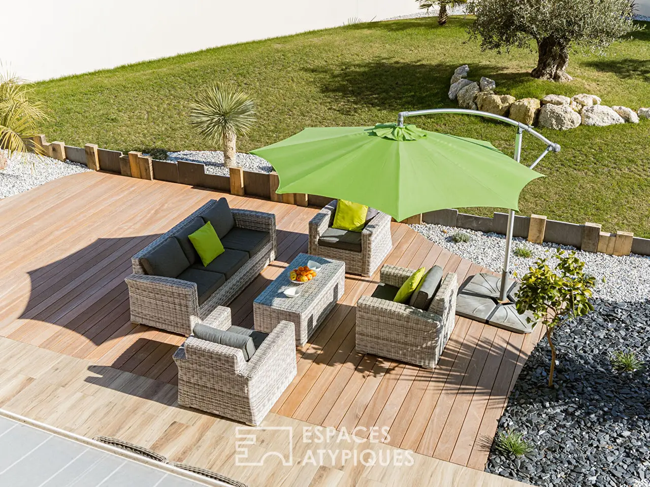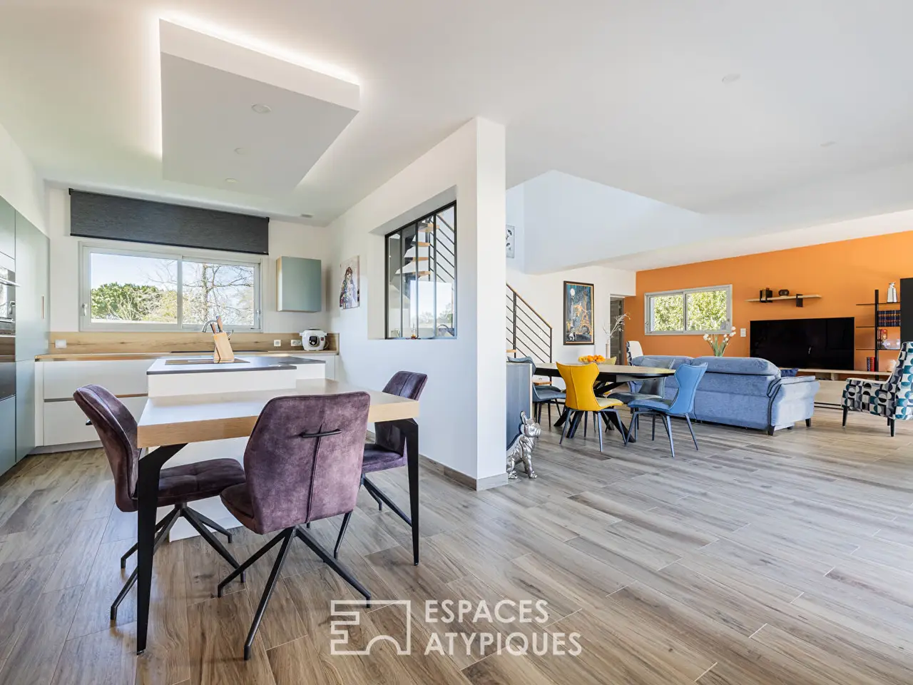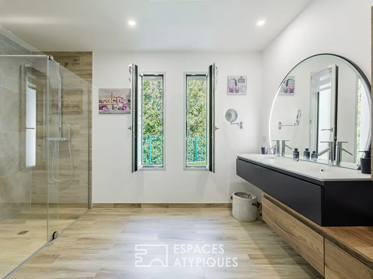 EXCLUSIVE ATYPICAL SPACESLocated in a privileged environment in Les Mathes-La Palmyre, this contemporary villa of approximately 192m2, completed at the end of 2023, is spread over a plot of more than 1000m2 within a luxury private residence comprising only seven properties. It benefits from a seaside resort open to the Atlantic, renowned for its fine sandy beaches lined with maritime pines and the 8000 hectares of the La Coubre forest, a permanent invitation to relax, swim, and escape into nature.Upon entering, a reception dressing room and guest toilet set the tone. The custom-made kitchen, designed by MOBALPA, seduces with its central island, the true heart of the home where lively conversations and culinary moments mingle. A utility room-pantry and a separate laundry room with direct access to the garage complete this functional space. The living room, with an area of approximately 64 m2, facing south-east, bathed in light thanks to its large bay windows, offers a pleasant atmosphere.Its dining area extends the indoor-outdoor atmosphere from the first rays of the sun. The master suite, facing the terrace, offers a real cocoon with its large dressing room and spacious private bathroom, complete with integrated toilet. Finally, an office, easily transformed into a bedroom, opens onto a terrace, revealing interesting development prospects. The staircase rises lightly to reveal, upstairs, a living space with a view overlooking the garden and its terrace below, converted into a lounge-library area. This sleeping area includes two comfortable bedrooms, one of which is a suite.The first has a closet-dressing room, while the second offers a real relaxation area with a living room equipped with a convertible sofa, completed by a bedroom with a dressing room.An elegantly designed shared bathroom serves these two bedrooms and is accompanied by a separate toilet for added comfort. Ideally located in the heart of a carefully landscaped setting, where plants, borders and creations skillfully blend wood and slate, it extends towards an elegant terrace ready to accommodate a jacuzzi, a spa (arrivals pending) or even a swimming pool, the plot being buildable. In fine weather, a summer lounge and a dining area are installed under the awning, offering a friendly and refined setting. Equipped with the latest technologies and a home automation system including heated floors, it offers absolute comfort.An elegant and soothing place, sheltered from the hustle and bustle, located just 1 km from La Palmyre beach and 1.5 km from the market and shops.Whether as a primary or secondary residence, this villa reveals a privileged living environment, where serenity and the sweetness of life take on their full meaning.ENERGY CLASS: A / CLIMATE CLASS: A. Estimated average amount of annual energy expenditure for standard use, established from 2021 energy prices: between EUR520 and EUR750.REF. EALR2169Additional information* 6 rooms* 4 bedrooms* 1 bathroom* 1 bathroom* 1 floor in the building* Outdoor space : 1000 SQM* Parking : 1 parking space* Property tax : 1 318 €Energy Performance CertificatePrimary energy consumptiona : 42 kWh/m2.yearHigh performance housing*42kWh/m2.year1*kg CO2/m2.yearA*B*C*D*E*F*GExtremely poor housing performance* Of which greenhouse gas emissionsa : 1 kg CO2/m2.yearLow CO2 emissions*1kg CO2/m2.yearA*B*C*D*E*F*GVery high CO2 emissionsEstimated average amount of annual energy expenditure for standard use, established from energy prices for
