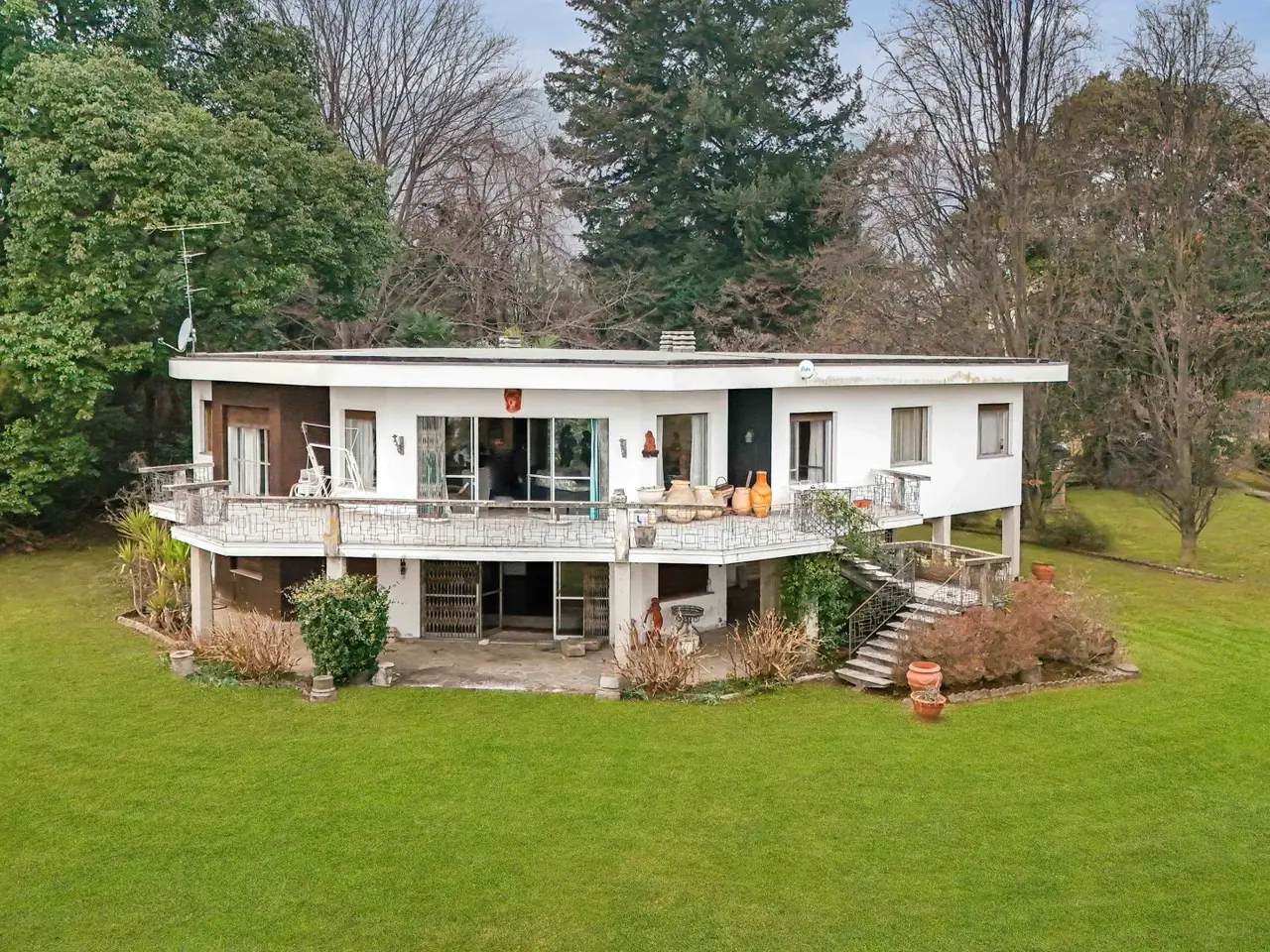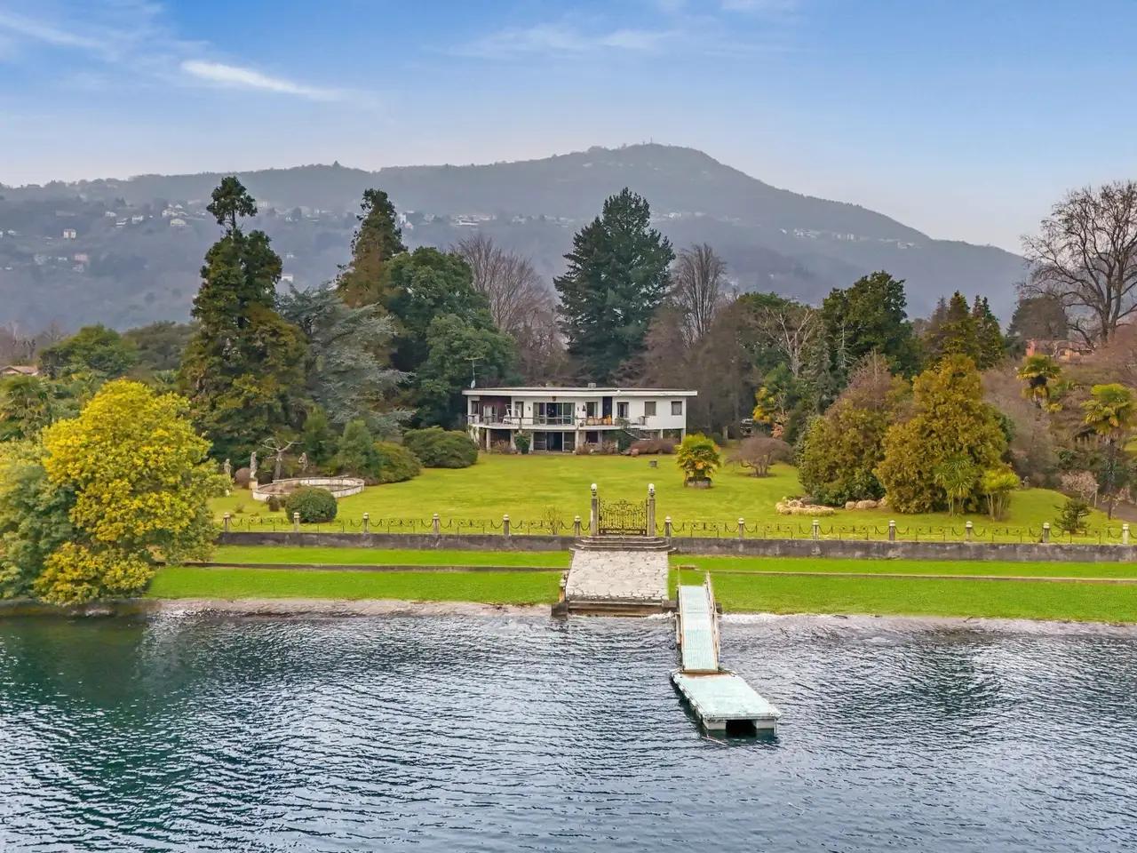 A dream reflected in the crystal clear waters of Lake Maggiore: this extraordinary luxury pieds dans l'eau villa is located on the Piedmont shore, in a simply unique location. Here, the beauty of nature blends with the elegance of architecture, creating an exclusive oasis of peace and refinement. Directly overlooking the lake, the prestigious property offers private access on the water thanks to its private beach and jetty, perfect for those who love to experience the lake in all its nuances. Flat parkland of 8,460 square meters surrounds the former greenhouses and the three residences that make up the property: Main villa of about 350 sqm Two detached cottages of 104 sqm and 64 sqm - ideal for guests or a luxury rental business Main villa The main villa is on two levels and welcomes its guests with a large hexagonal entrance hall that leads to the bright living room, overlooking a panoramic terrace. From here, the gaze is lost in the ripples of the lake, providing ever new and breathtaking scenery. The dining room and dinette, connected to the kitchen, offer a warm and convivial environment, perfect for moments of sharing. The sleeping area, located on the same floor, houses four bedrooms, three of which have spectacular lake views, and two bathrooms. Fine details, such as parquet floors and Calacatta marble in the entrance hall and living room, further embellish this home of timeless charm. Relaxation and Comfort Area Descending to the basement level, one discovers an area dedicated to relaxation and pleasure: A large living room with a fireplace that opens directly onto the garden A wine cellar perfect for wine lovers A service room A bathroom Outside, a large porch wraps around part of the villa, creating an area perfect for enjoying the gentle lake breeze. A convenient garage completes the property. Independent Villas The two independent cottages, surrounded by greenery, represent an added value for those who wish to welcome guests in a private setting or develop a luxury rental business. Surfaces: the main villa, approx. 300 sq. m., plus 150 of basement floor space Villa 2, sq m 104 Villa 3, surface area about 64 sq. m. Total gross usable area sq m 468 approx. expandable by 20% of the volume, which corresponds to sq m 93.
