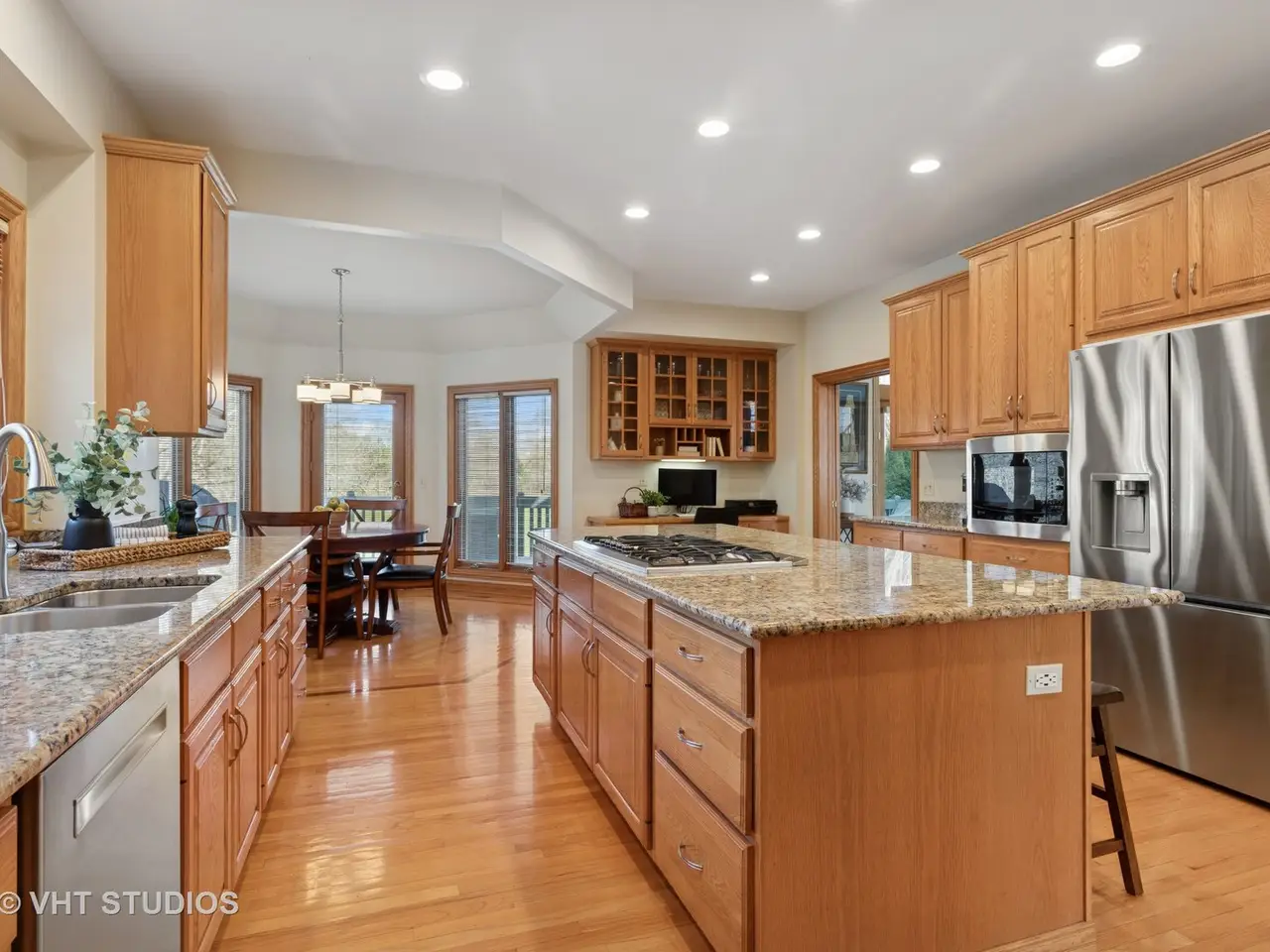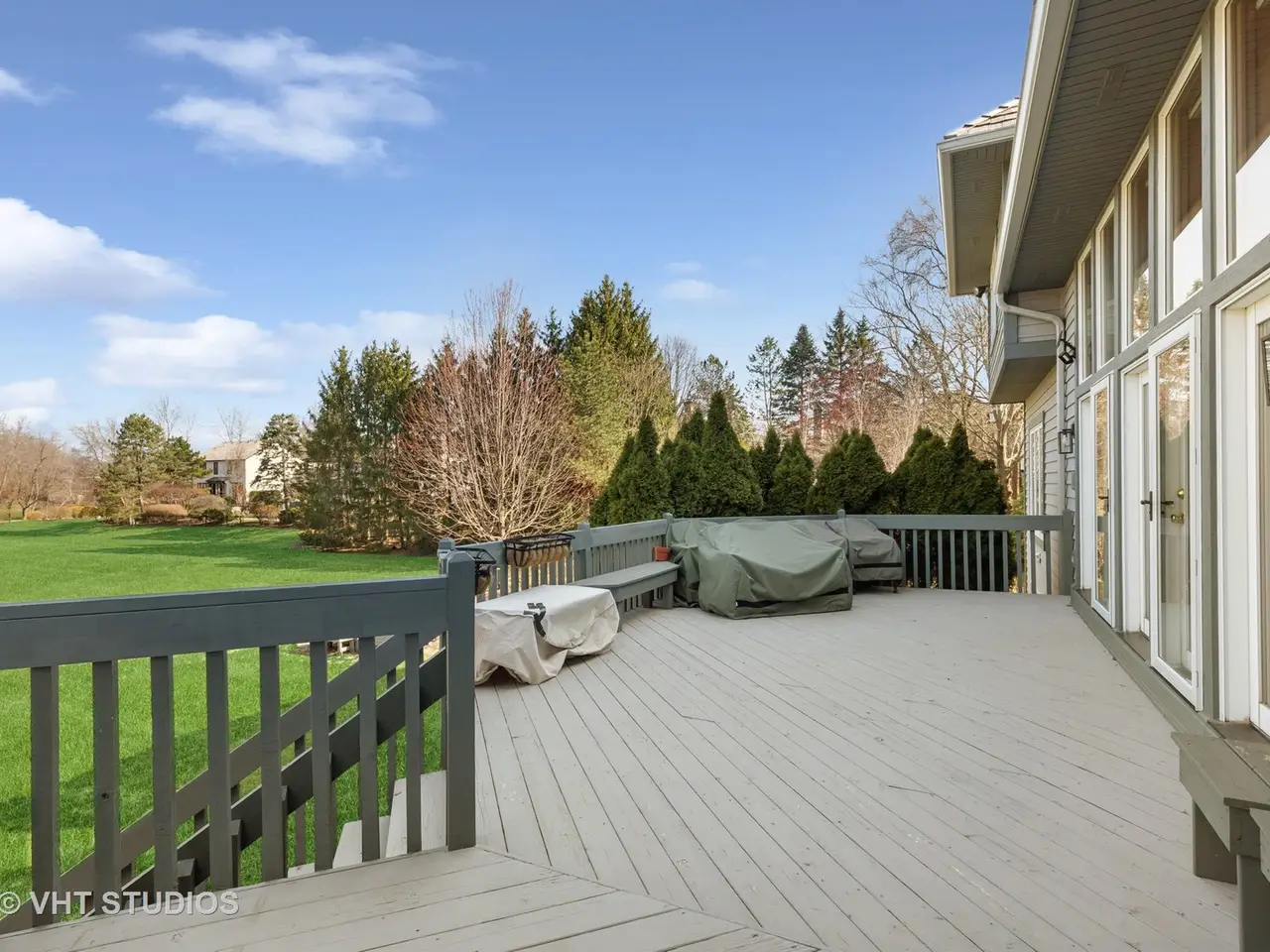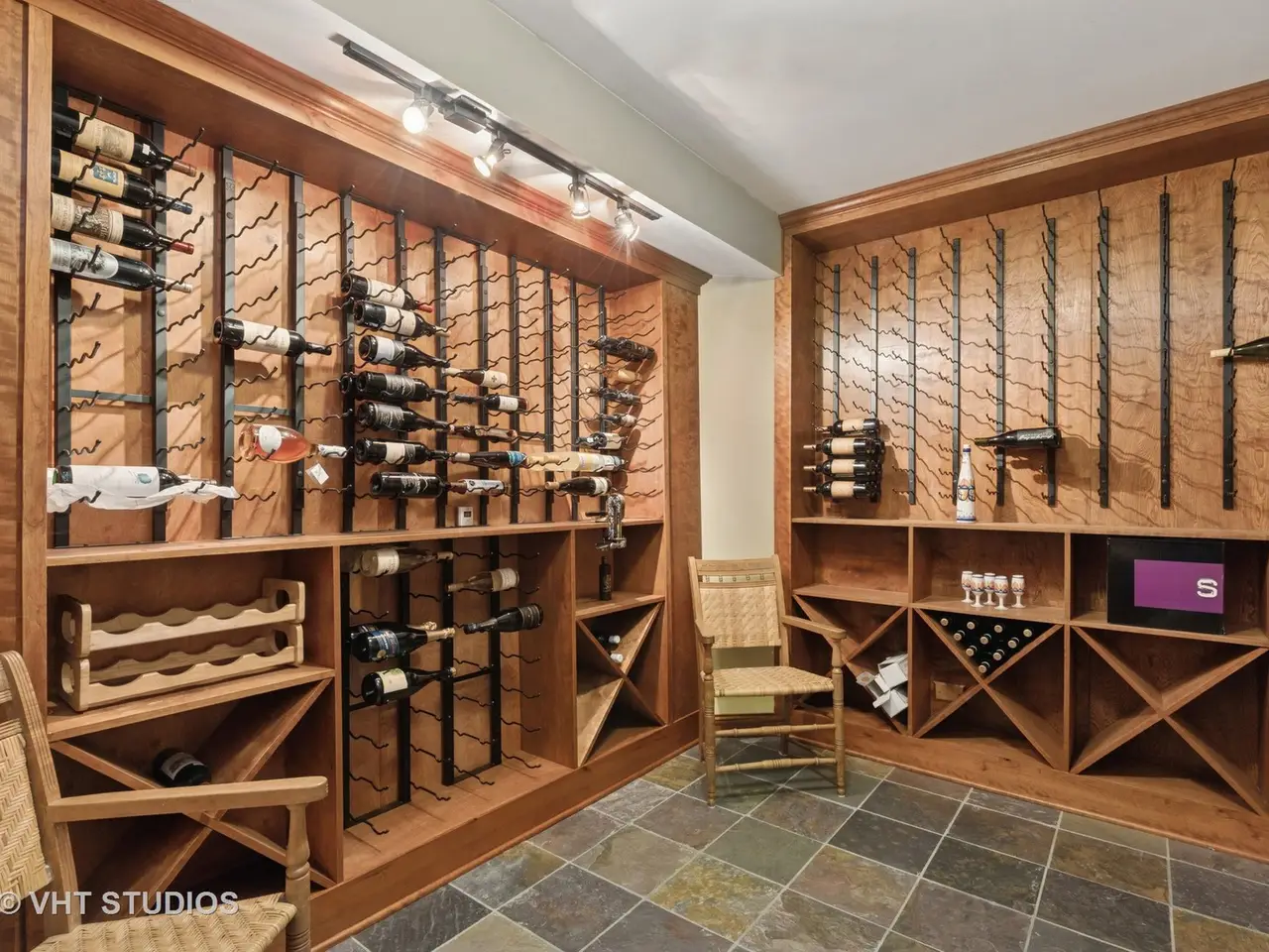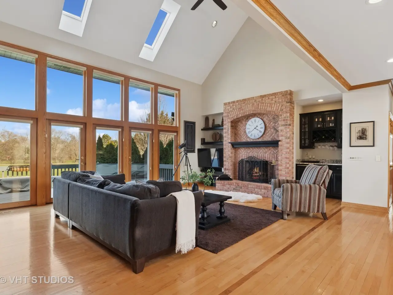 Tucked away on a quiet street in Libertyville's sought-after Wineberry neighborhood, this architecturally stunning 5-bedroom, 4-bathroom home offers the perfect mix of space, style, and privacy. Backing to open land, the backyard is incredibly serene-ideal for relaxing evenings or hosting friends and family. As you walk through the front door, you're welcomed into a dramatic great room with a soaring wall of windows that fills the space with natural light. The custom wet bar and beautiful fireplace make it a perfect spot for both entertaining and everyday living. The gourmet kitchen is not only spacious but thoughtfully designed, featuring granite countertops, high-end stainless appliances, and a unique octagon-shaped breakfast nook that makes every meal feel just a little more special. This home is made for today's lifestyle, with a first-floor office and a main-level bedroom with an adjacent, recently remodeled full bath-ideal for guests, extended family, or multigenerational living. There's also a formal dining room with plenty of space for hosting during the holidays or special occasions. Upstairs, the primary suite is a true retreat, complete with a cozy sitting area and a gorgeous, fully updated spa-inspired bathroom with a soaking tub, oversized walk-in shower, and dual vanities. Two more generously sized bedrooms share a large, well-appointed bath. The finished English basement offers so much extra space-whether you envision a media room, home gym, or a game room, there's room for it all. And tucked away downstairs, you'll find a hidden wine cellar that holds up to 3,000 bottles-a dream for any wine lover. With a new roof, fresh updates, and an unbeatable location near Libertyville's vibrant downtown, award-winning schools, METRA, and I-94, this home truly has it all. It's an incredible opportunity to enjoy luxury, comfort, and community-all in one amazing place.
