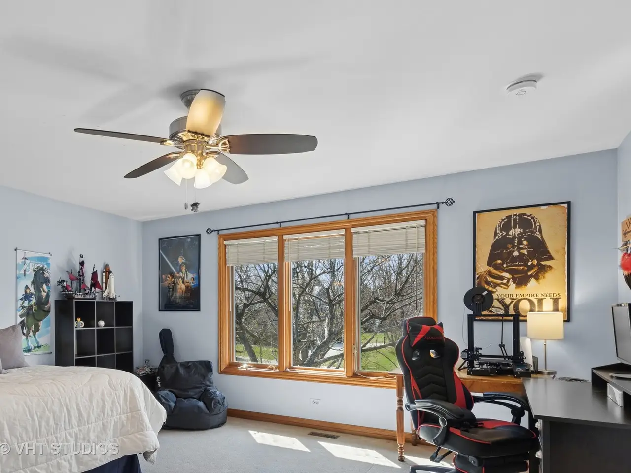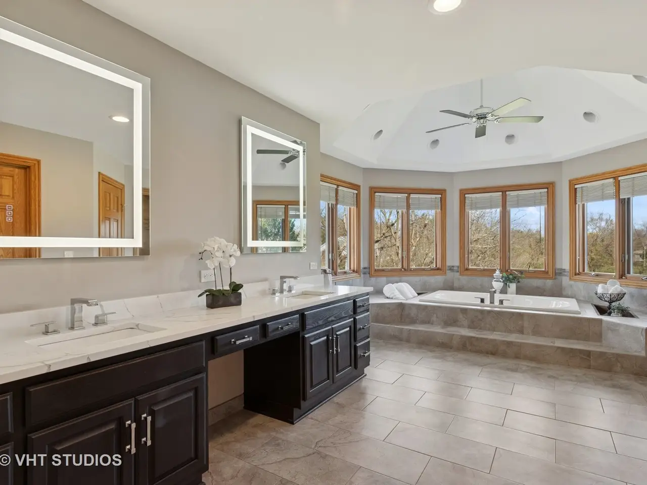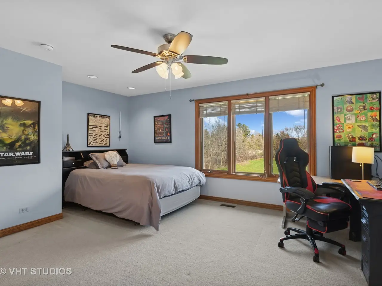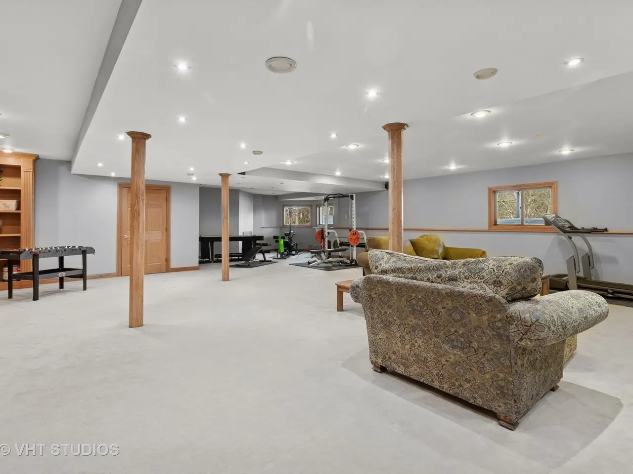 Tucked away on a quiet street in Libertyville's sought-after Wineberry neighborhood, this architecturally stunning 5-bedroom, 4-bathroom home offers the perfect mix of space, style, and privacy. Backing to open land, the backyard is incredibly serene-ideal for relaxing evenings or hosting friends and family. As you walk through the front door, you're welcomed into a dramatic great room with a soaring wall of windows that fills the space with natural light. The custom wet bar and beautiful fireplace make it a perfect spot for both entertaining and everyday living. The gourmet kitchen is not only spacious but thoughtfully designed, featuring granite countertops, high-end stainless appliances, and a unique octagon-shaped breakfast nook that makes every meal feel just a little more special. This home is made for today's lifestyle, with a first-floor office and a main-level bedroom with an adjacent, recently remodeled full bath-ideal for guests, extended family, or multigenerational living. There's also a formal dining room with plenty of space for hosting during the holidays or special occasions. Upstairs, the primary suite is a true retreat, complete with a cozy sitting area and a gorgeous, fully updated spa-inspired bathroom with a soaking tub, oversized walk-in shower, and dual vanities. Two more generously sized bedrooms share a large, well-appointed bath. The finished English basement offers so much extra space-whether you envision a media room, home gym, or a game room, there's room for it all. And tucked away downstairs, you'll find a hidden wine cellar that holds up to 3,000 bottles-a dream for any wine lover. With a new roof, fresh updates, and an unbeatable location near Libertyville's vibrant downtown, award-winning schools, METRA, and I-94, this home truly has it all. It's an incredible opportunity to enjoy luxury, comfort, and community-all in one amazing place.