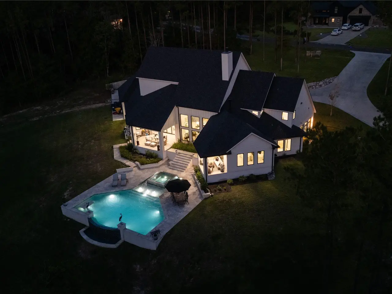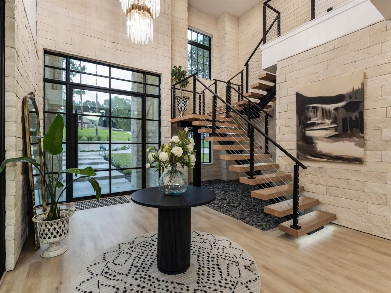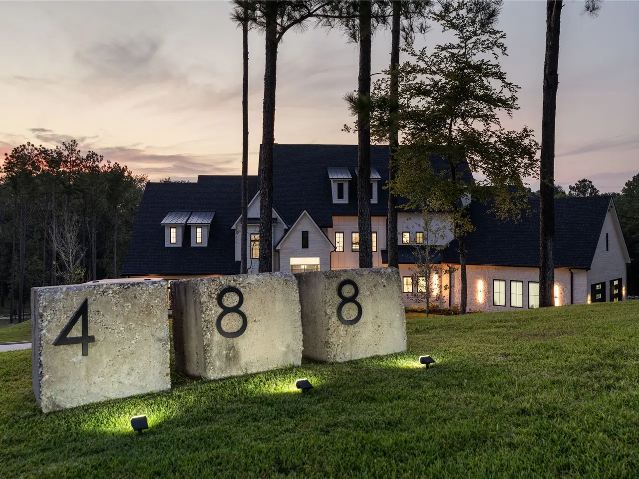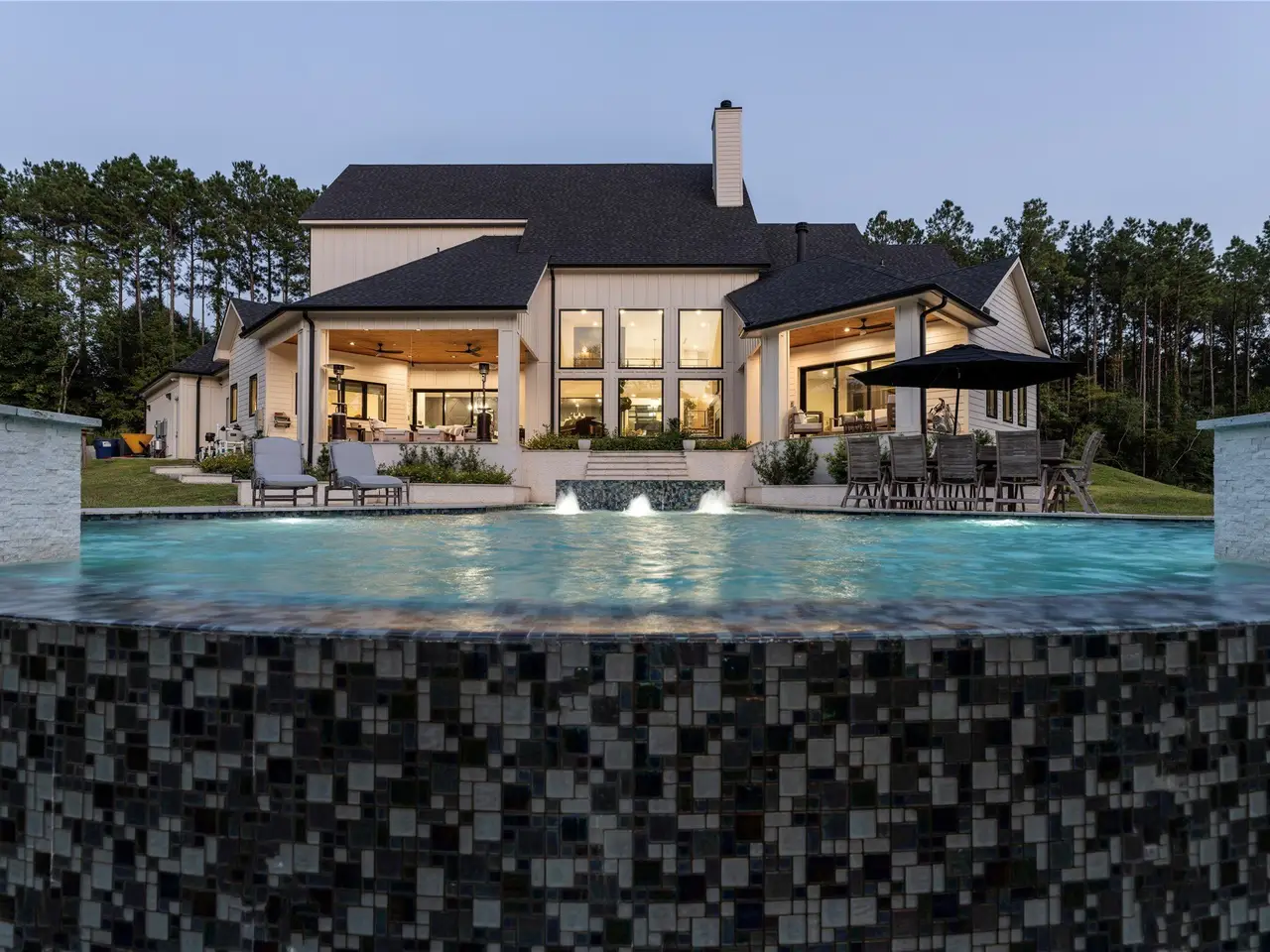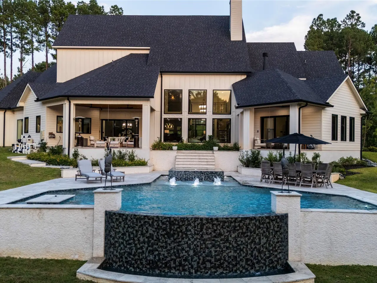 Step into a world of refined luxury, natural beauty, and architectural brilliance on 6.2 private, wooded acres. This custom estate welcomes you with an 11-ft glass pivot door, a dramatic chandelier, and soaring 26-ft ceilings. Floor-to-ceiling windows blur the line between indoors and out, offering breathtaking treetop views. The chef’s kitchen is a masterpiece—quartz countertops, Café commercial appliances, and a full butler’s pantry with ice maker and beverage fridge. The primary suite is your personal sanctuary, featuring a fireplace, a private wellness center, and disappearing glass doors that open to an infinity-edge pool. A sleek glass-partitioned office balances modern design with serenity. Enjoy a stocked pond, media room, two utility rooms, smart home technology, and a lighted custom staircase. Gas appliances, two private wells, and a whole-home water filtration system complete this extraordinary retreat. Every detail speaks luxury. Every moment feels like escape.