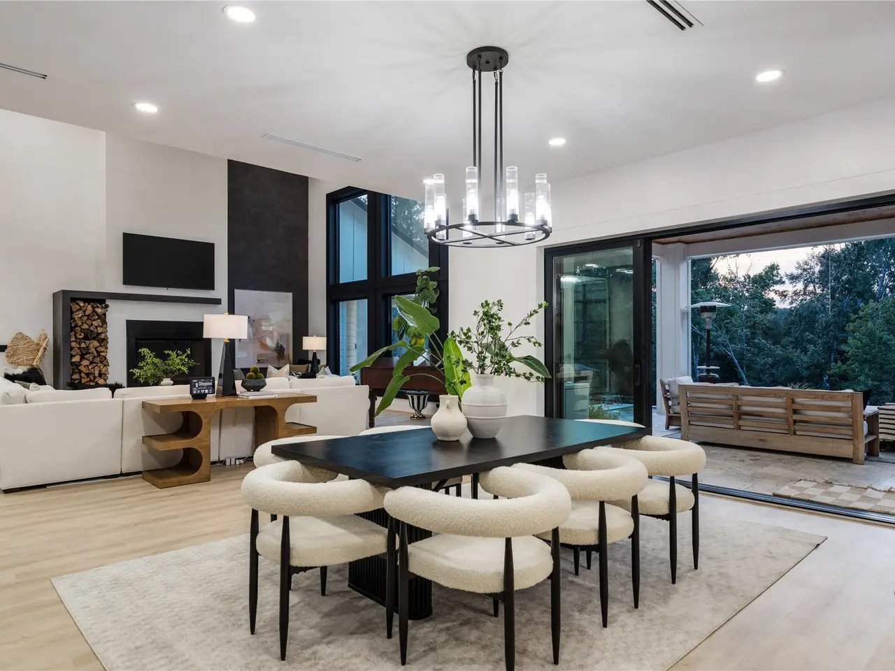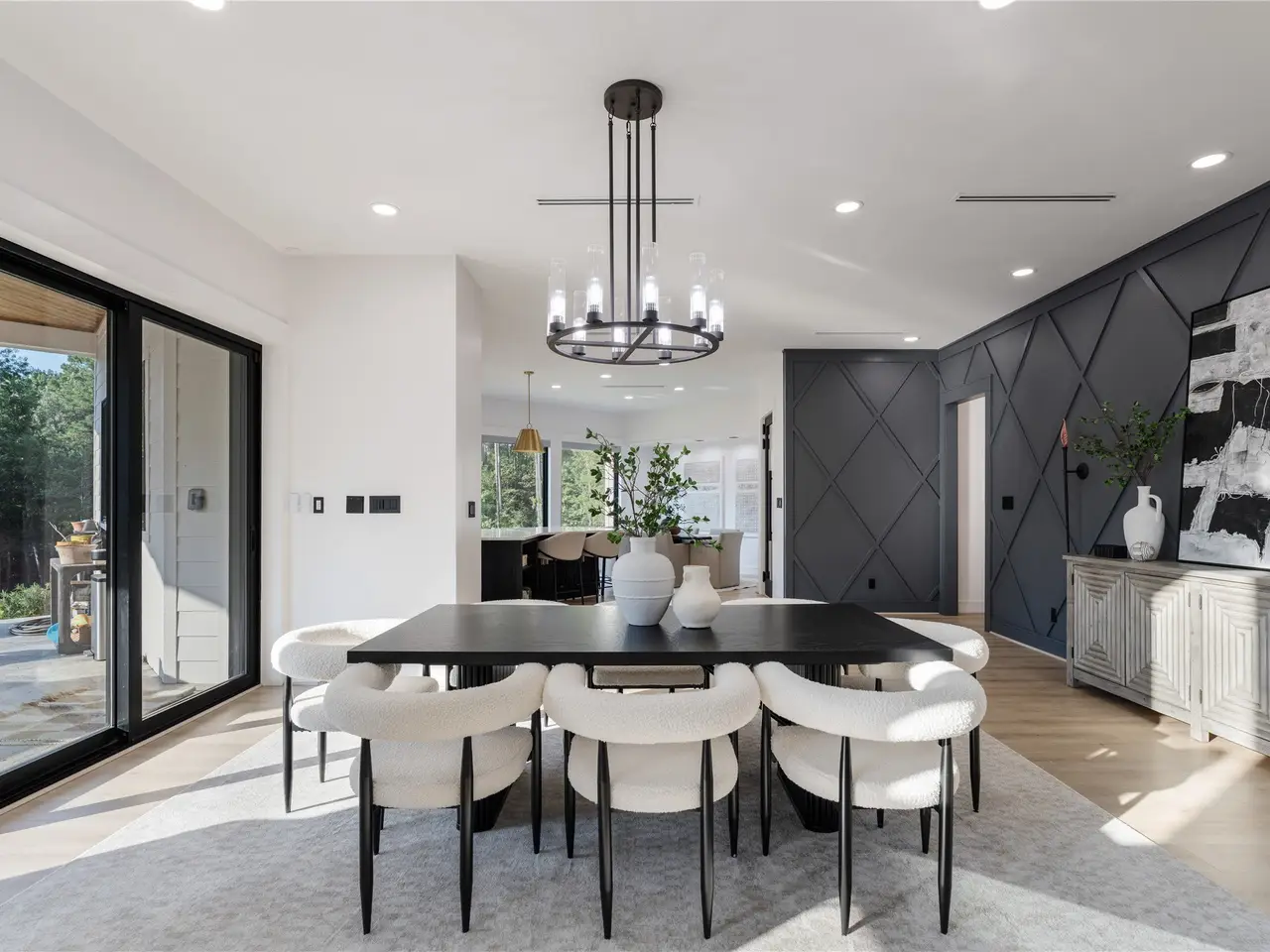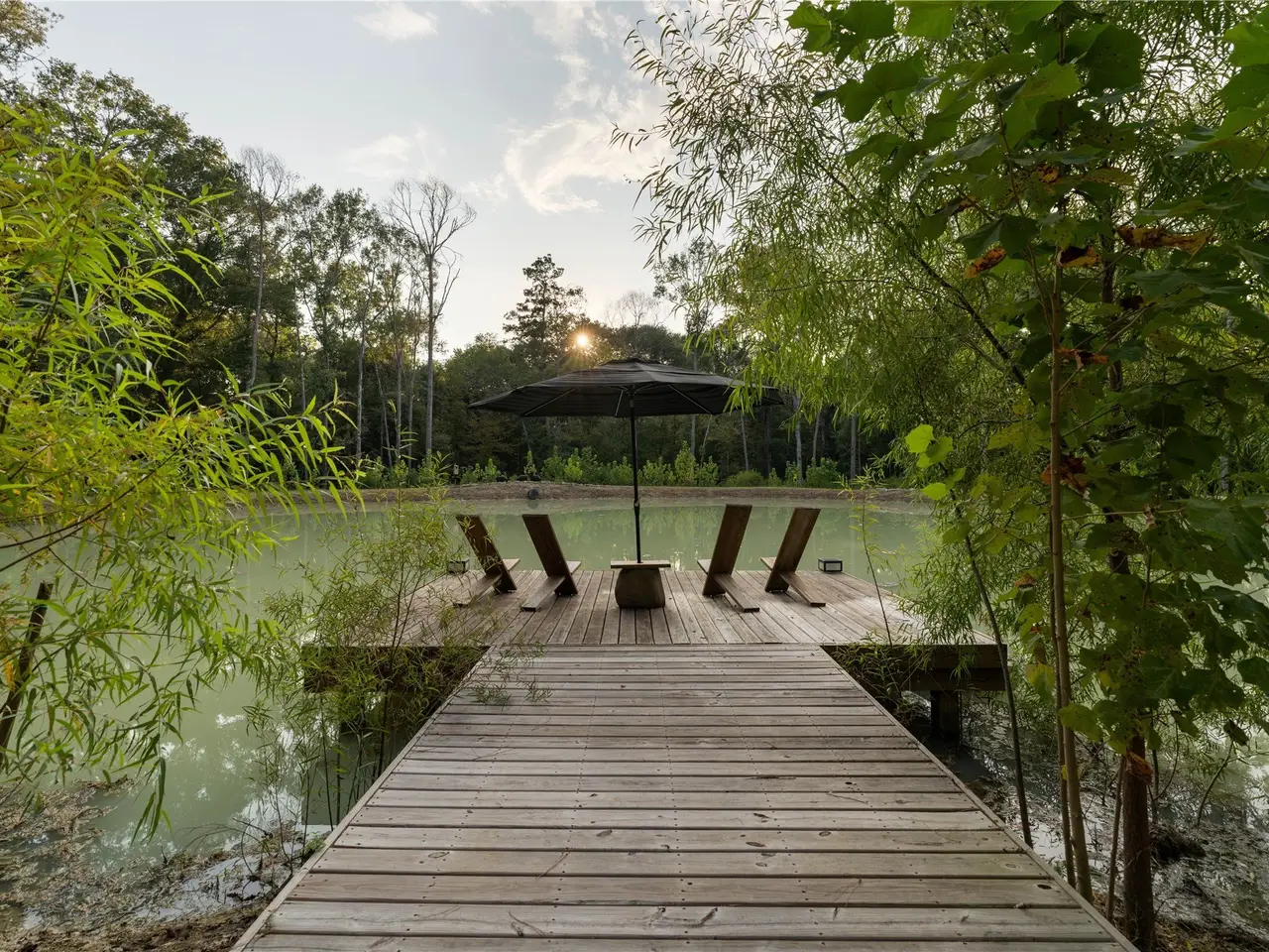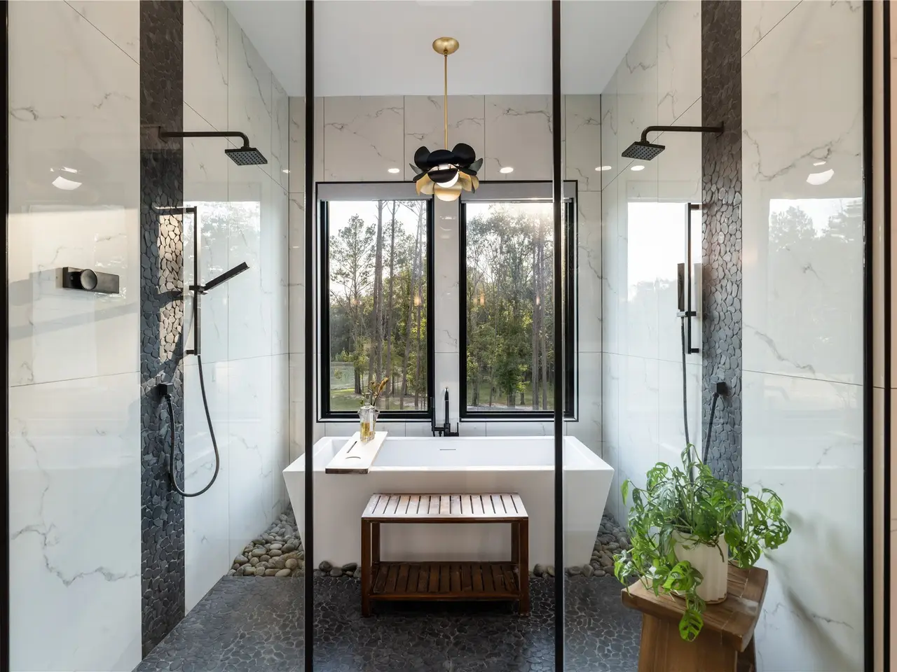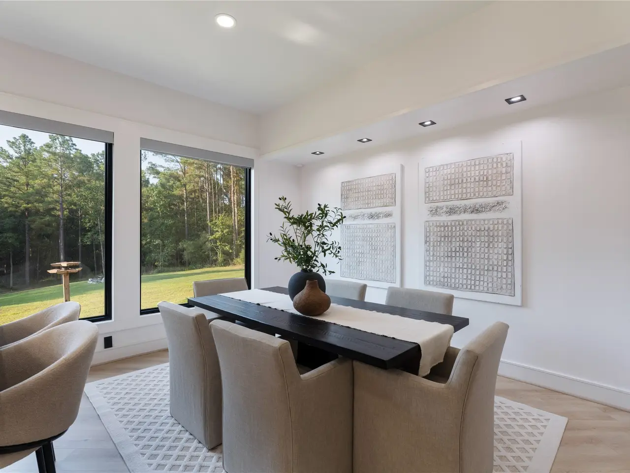 Step into a world of refined luxury, natural beauty, and architectural brilliance on 6.2 private, wooded acres. This custom estate welcomes you with an 11-ft glass pivot door, a dramatic chandelier, and soaring 26-ft ceilings. Floor-to-ceiling windows blur the line between indoors and out, offering breathtaking treetop views. The chef’s kitchen is a masterpiece—quartz countertops, Café commercial appliances, and a full butler’s pantry with ice maker and beverage fridge. The primary suite is your personal sanctuary, featuring a fireplace, a private wellness center, and disappearing glass doors that open to an infinity-edge pool. A sleek glass-partitioned office balances modern design with serenity. Enjoy a stocked pond, media room, two utility rooms, smart home technology, and a lighted custom staircase. Gas appliances, two private wells, and a whole-home water filtration system complete this extraordinary retreat. Every detail speaks luxury. Every moment feels like escape.