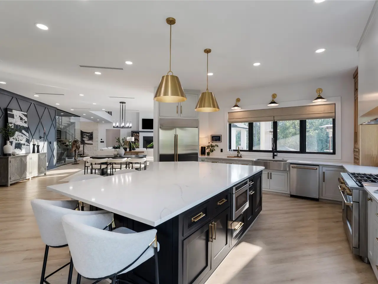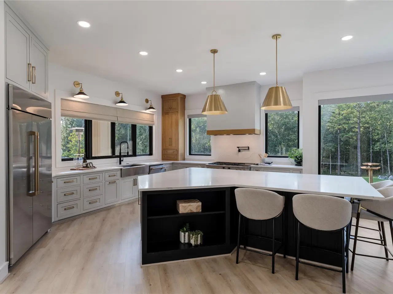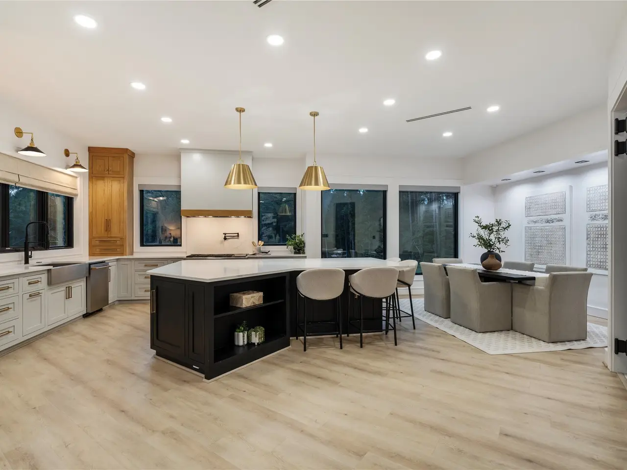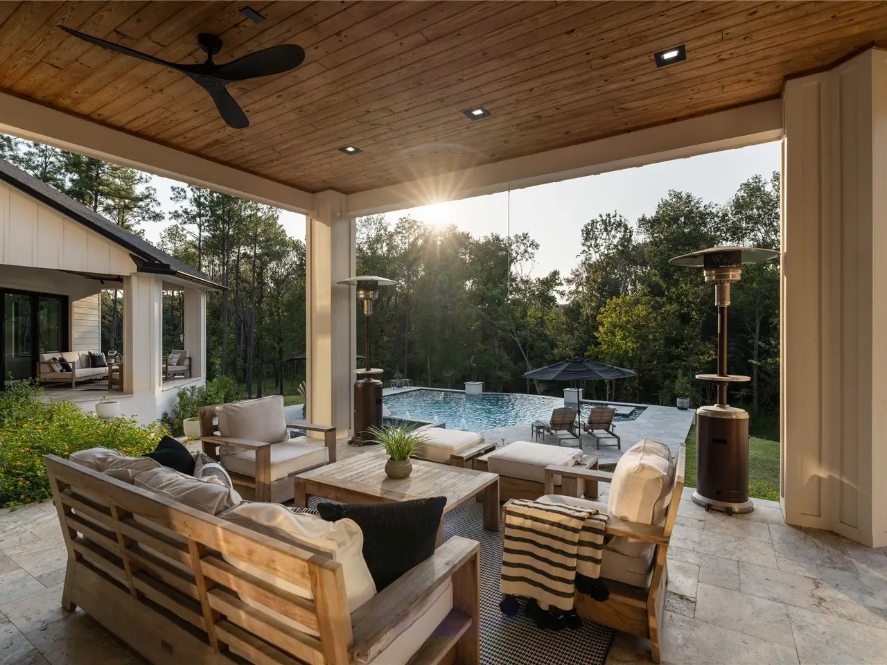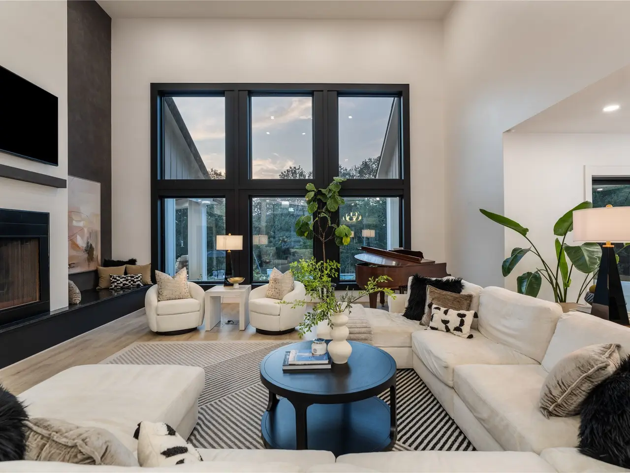 Step into a world of refined luxury, natural beauty, and architectural brilliance on 6.2 private, wooded acres. This custom estate welcomes you with an 11-ft glass pivot door, a dramatic chandelier, and soaring 26-ft ceilings. Floor-to-ceiling windows blur the line between indoors and out, offering breathtaking treetop views. The chef’s kitchen is a masterpiece—quartz countertops, Café commercial appliances, and a full butler’s pantry with ice maker and beverage fridge. The primary suite is your personal sanctuary, featuring a fireplace, a private wellness center, and disappearing glass doors that open to an infinity-edge pool. A sleek glass-partitioned office balances modern design with serenity. Enjoy a stocked pond, media room, two utility rooms, smart home technology, and a lighted custom staircase. Gas appliances, two private wells, and a whole-home water filtration system complete this extraordinary retreat. Every detail speaks luxury. Every moment feels like escape.